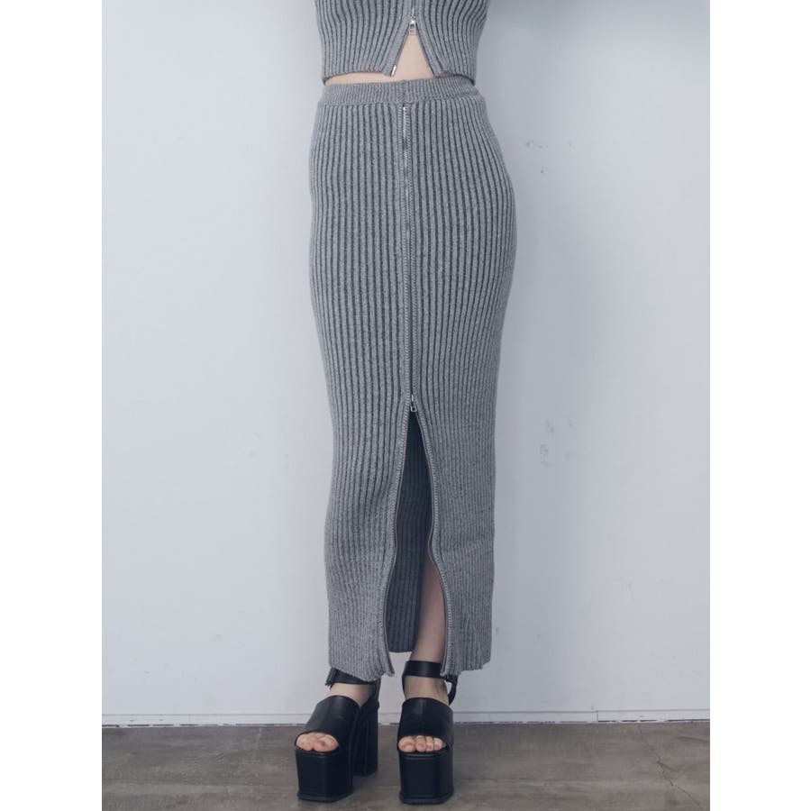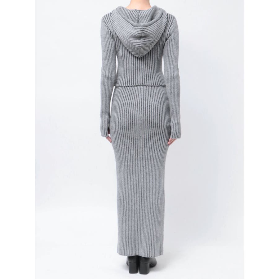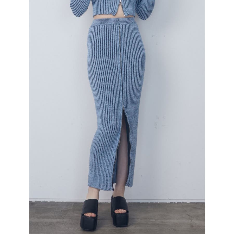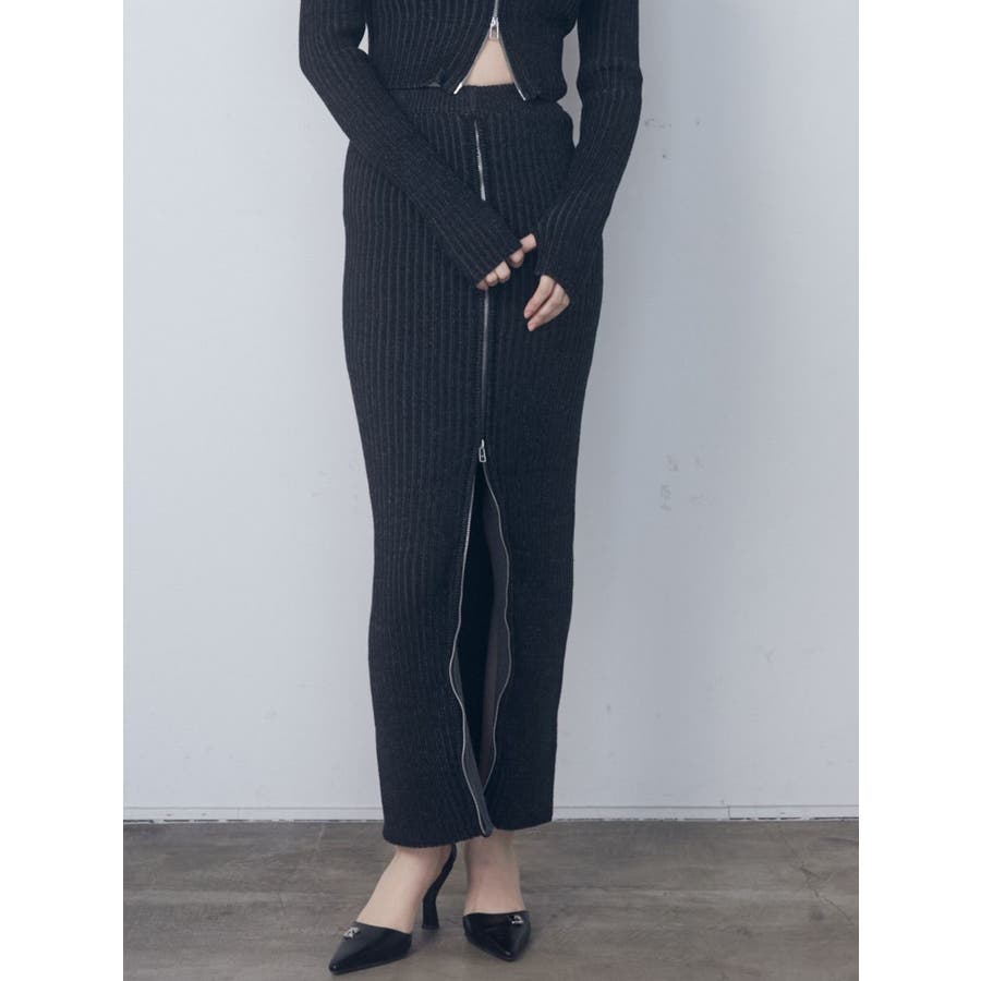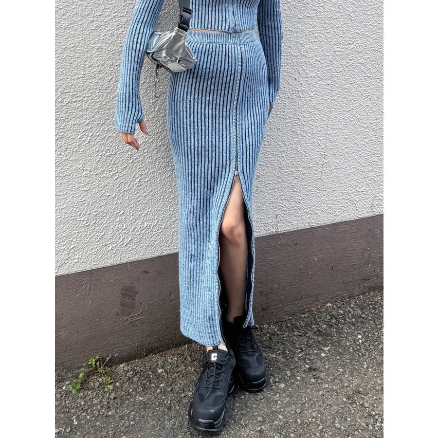 全体的にタイトなシルエットですがリブ編みのニット生地なので