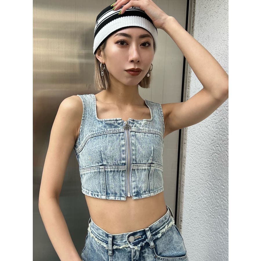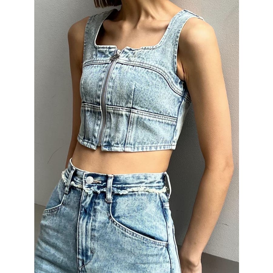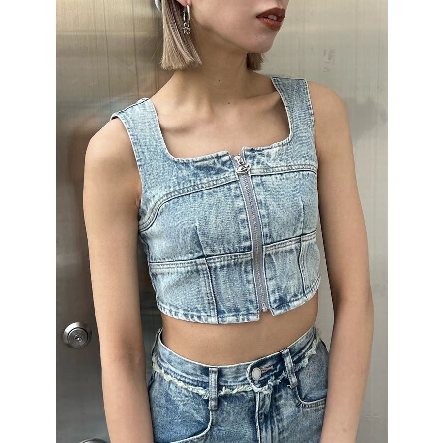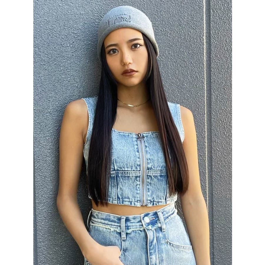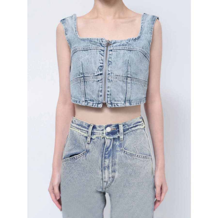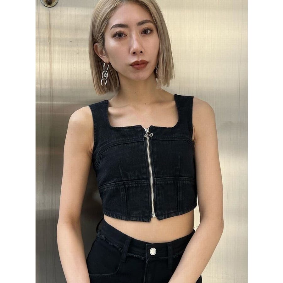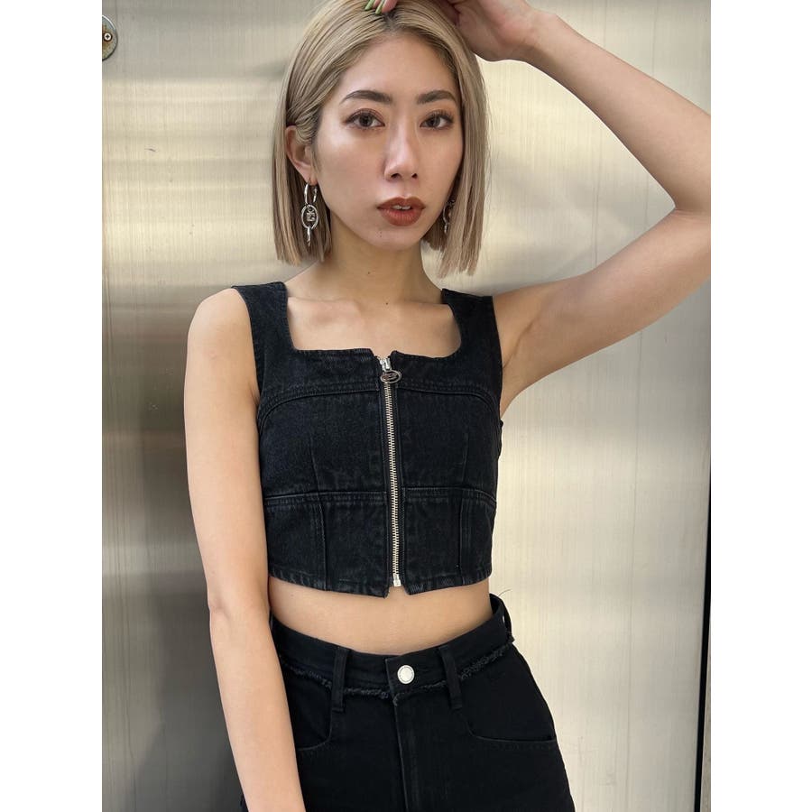 フロントジップデニムビスチェ