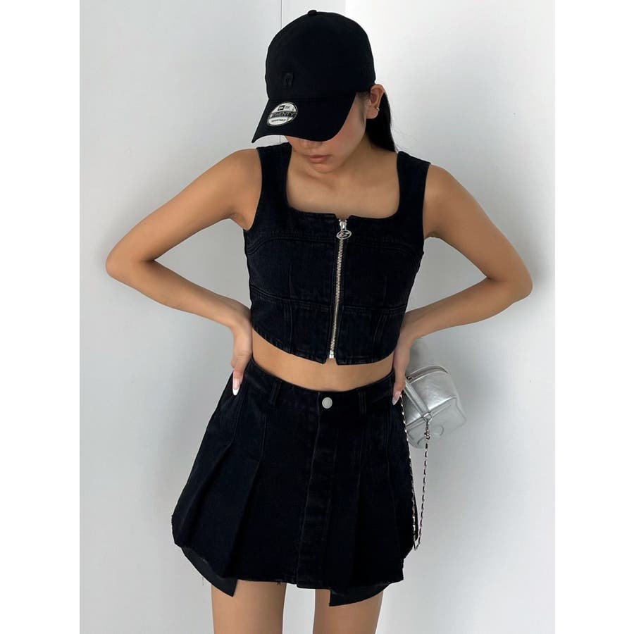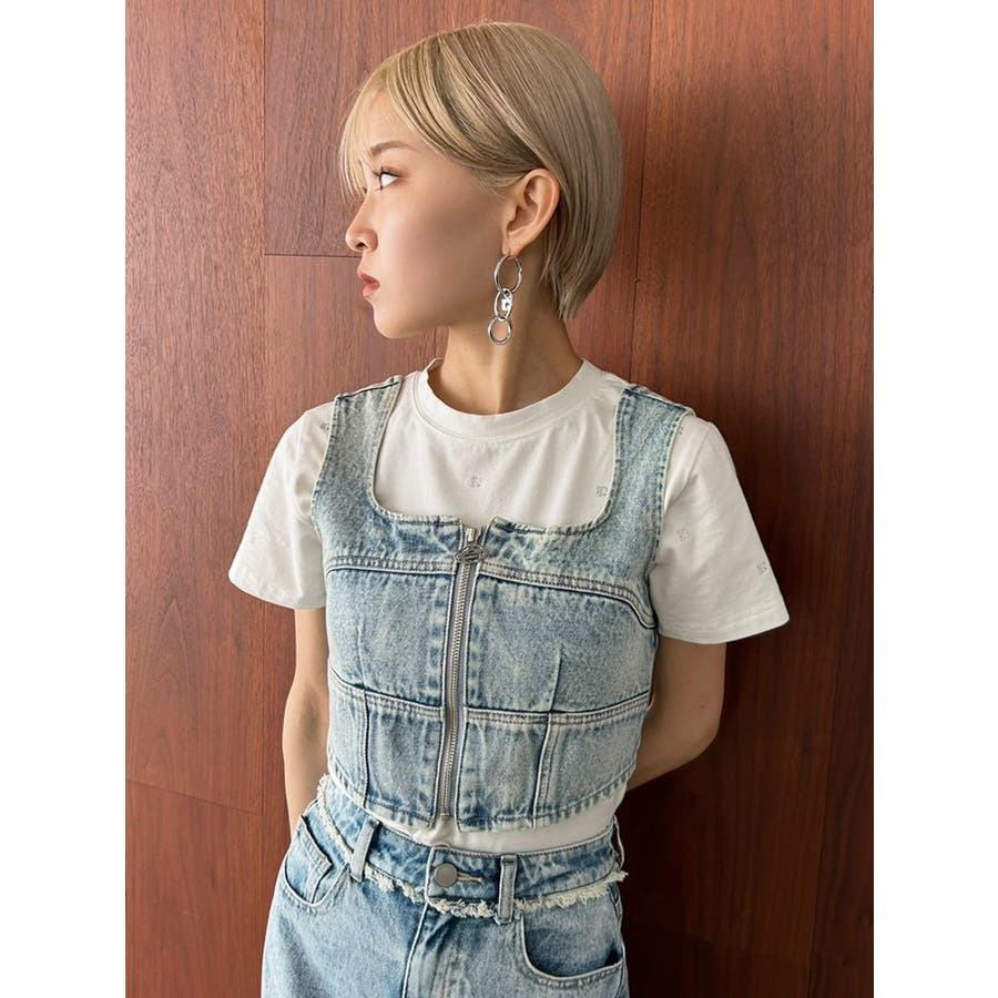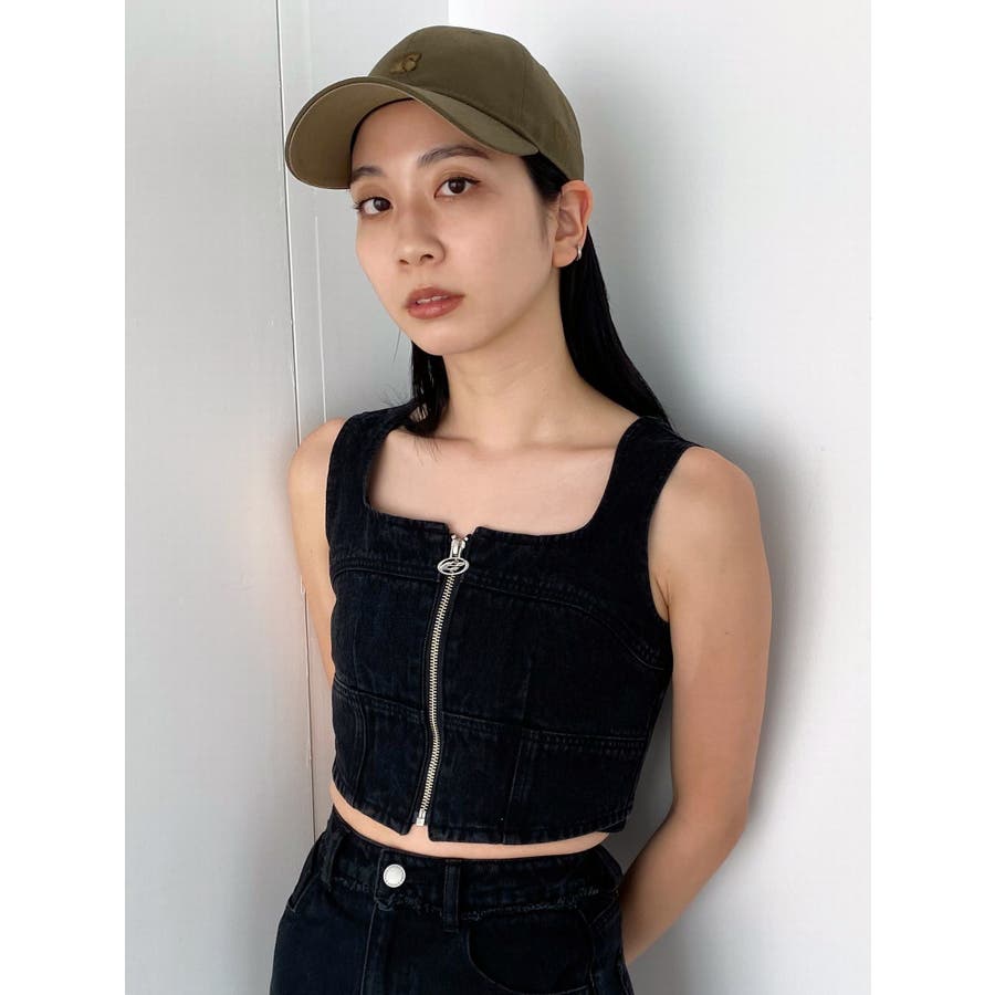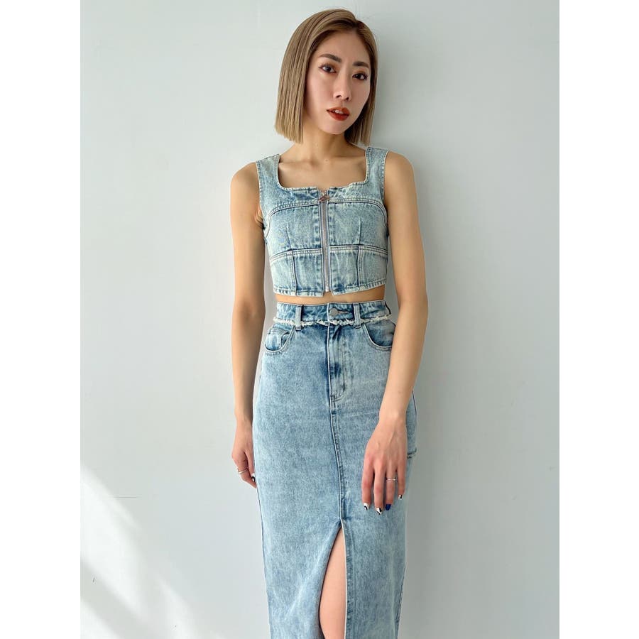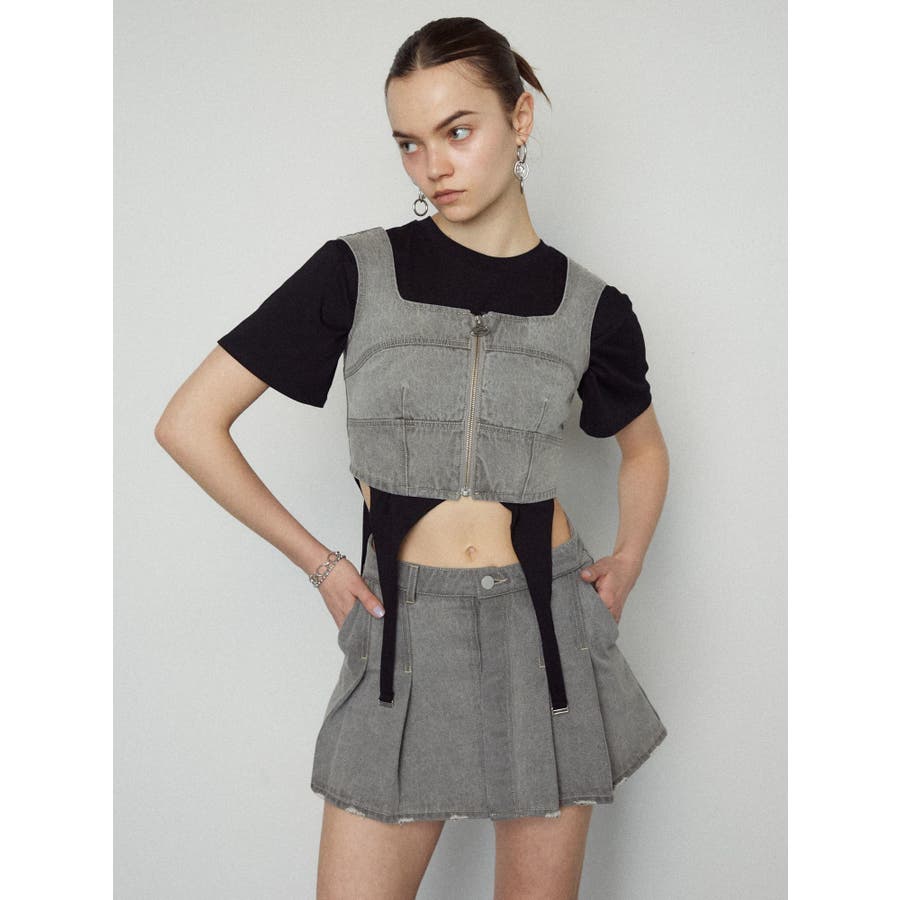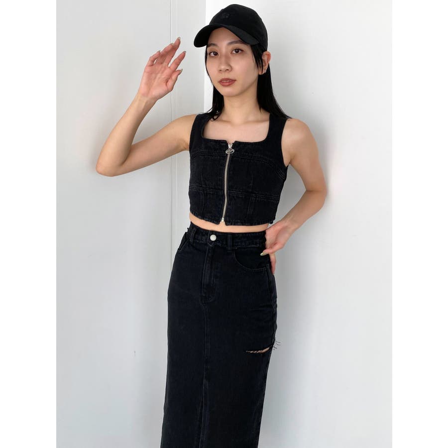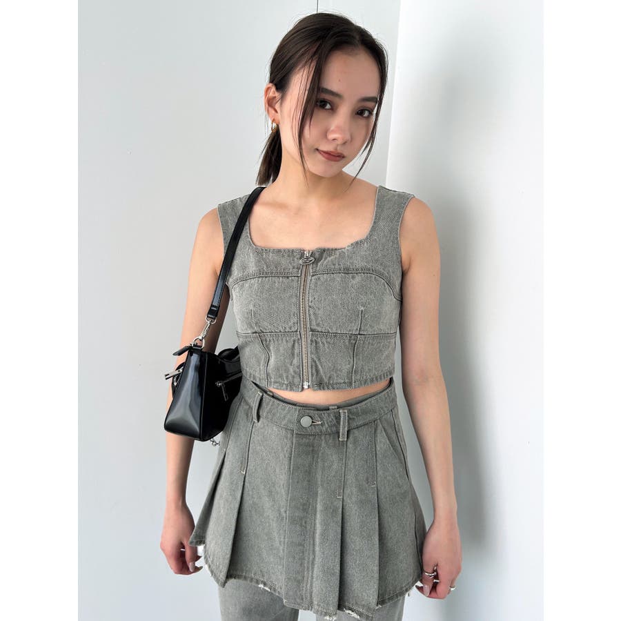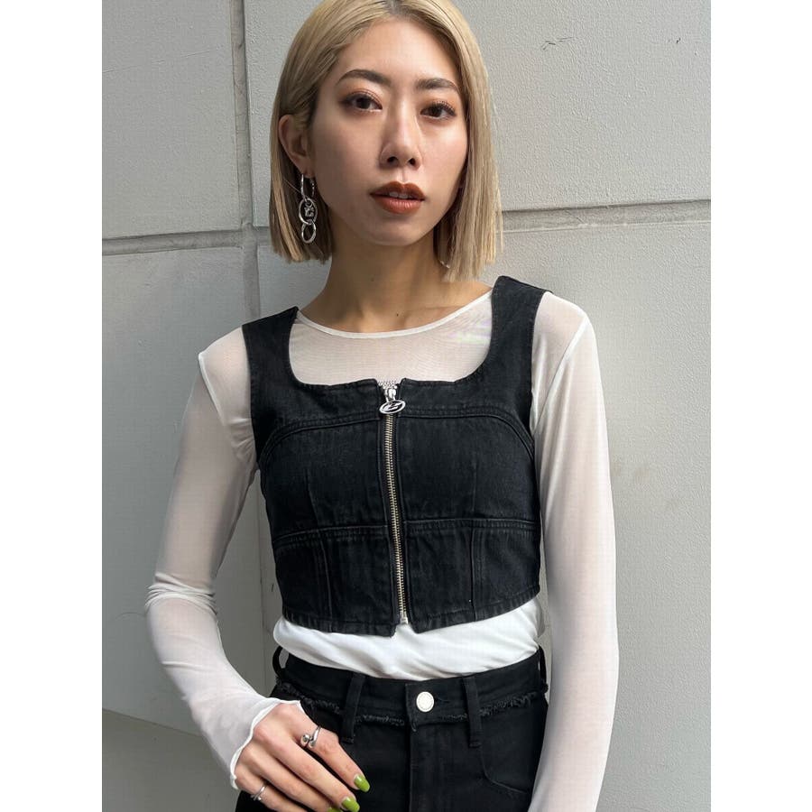 フロントジップデニムビスチェ