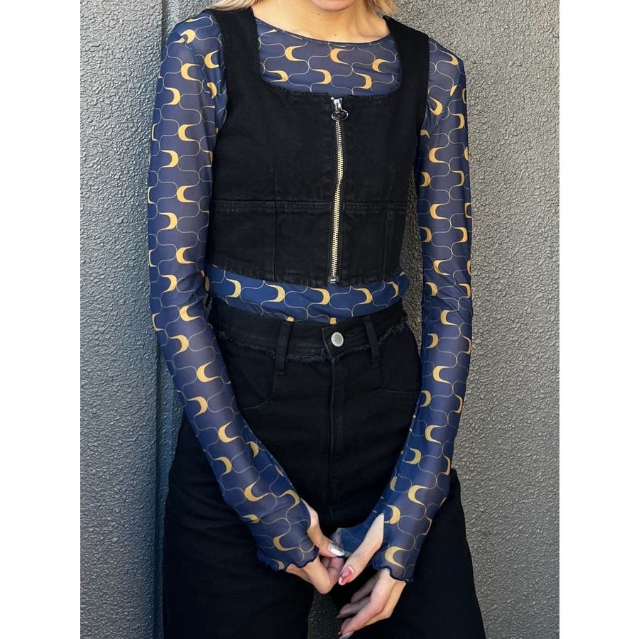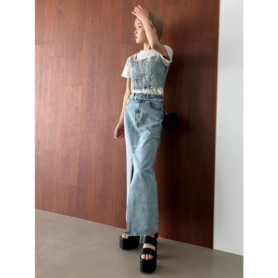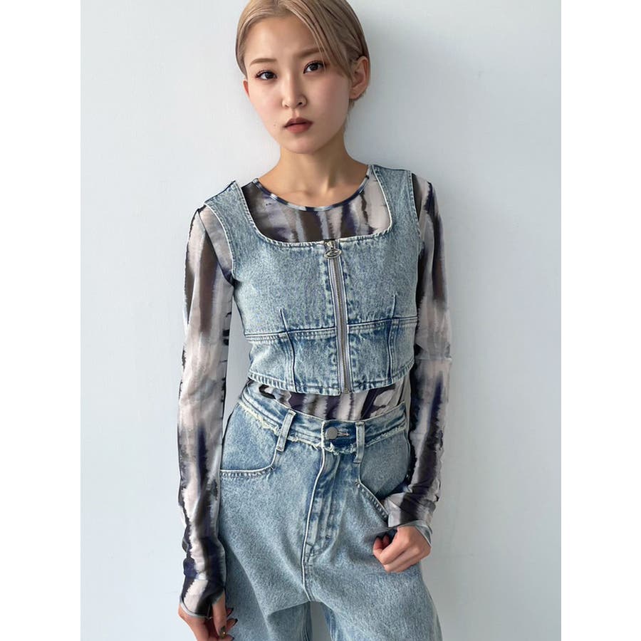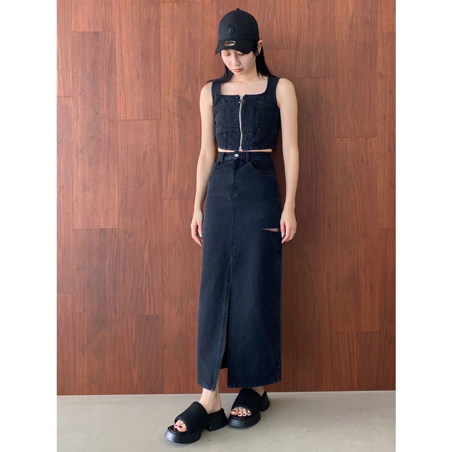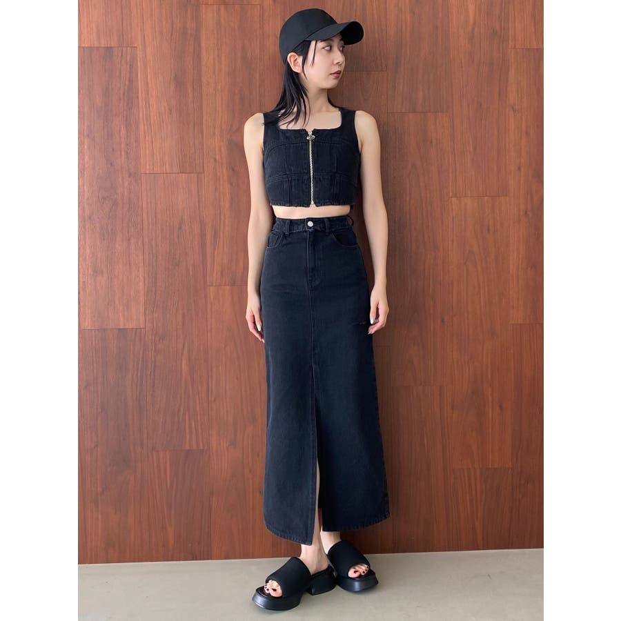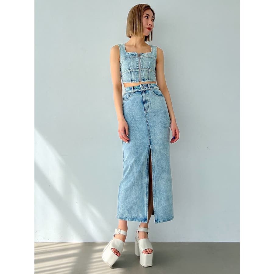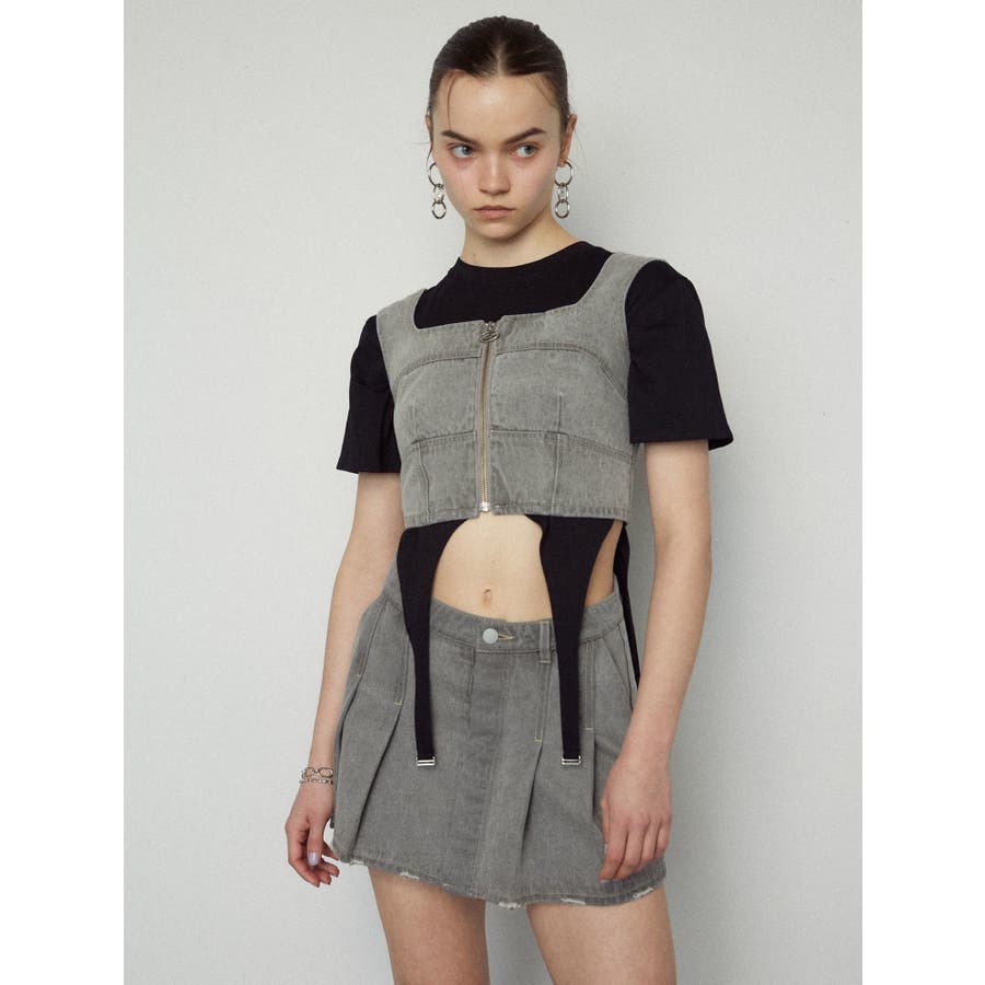 フロントジップデニムビスチェ