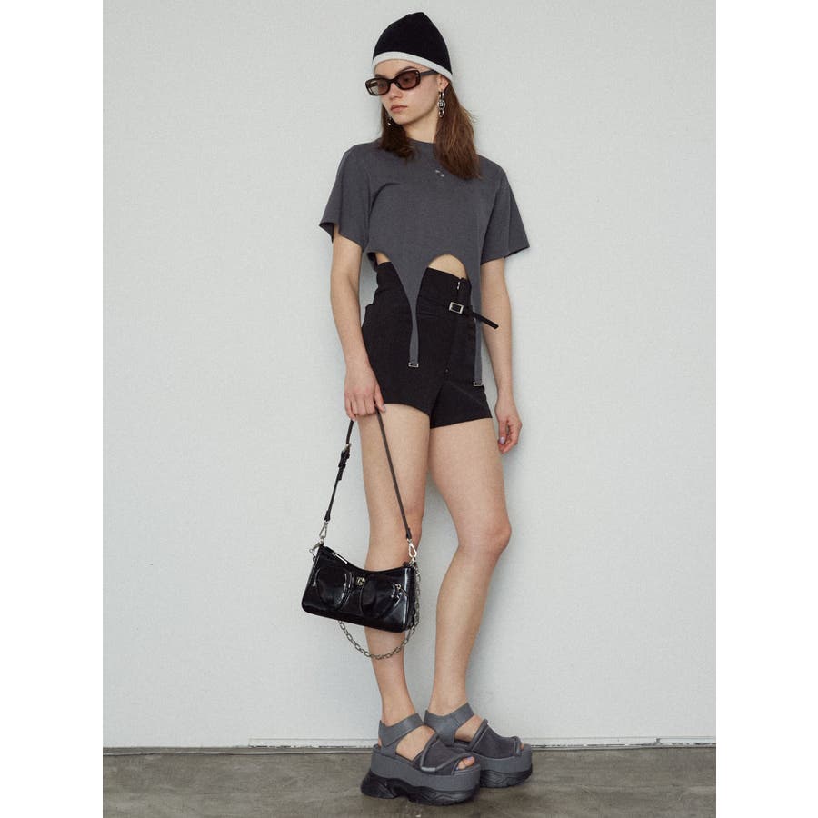 グレーを買ってとてもきやすかったので色チ買いしました。肌見せファッションが苦手なのでインナーが見えるように着ていますが違和感ないです。裾がラウンドのインナーにするとバランス取りやすい気がします。袖がピッタリしていないので二の腕が気になりません。ガーターデザインがとてもかわいいです。金属なので洗濯の際は要注意