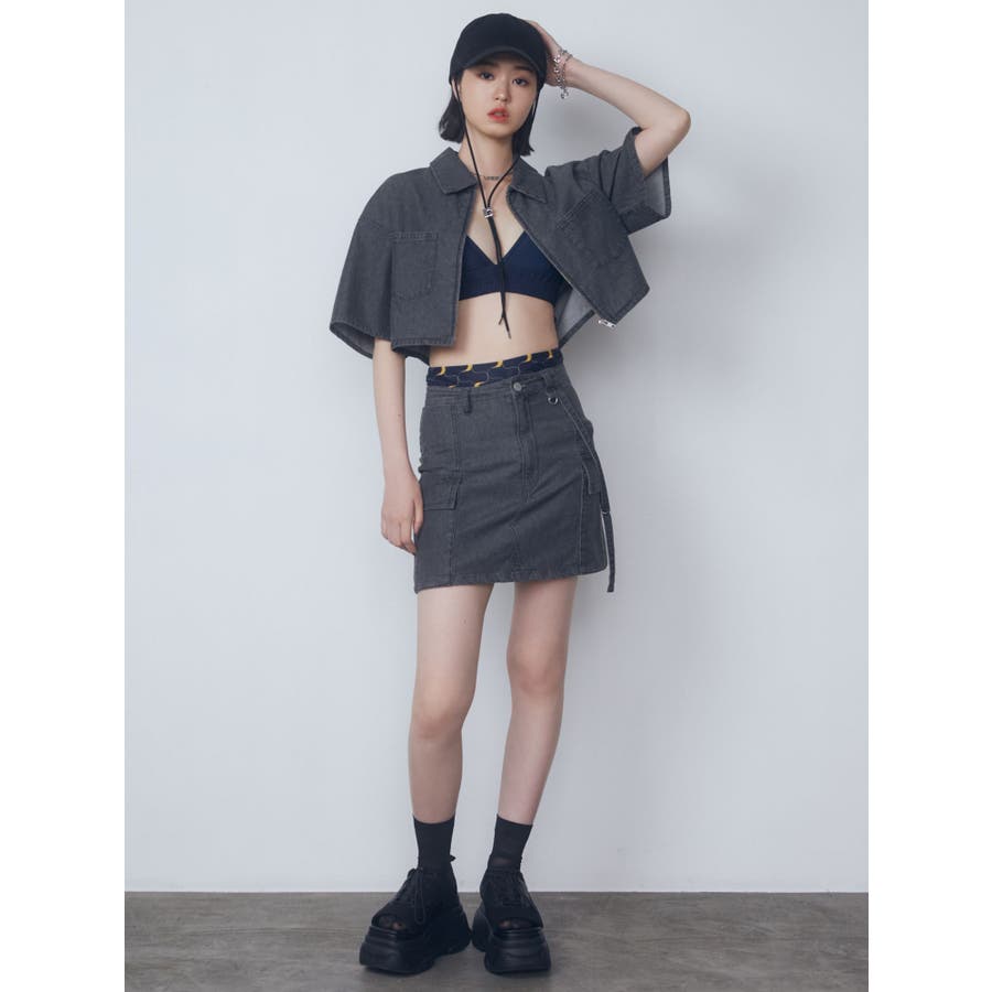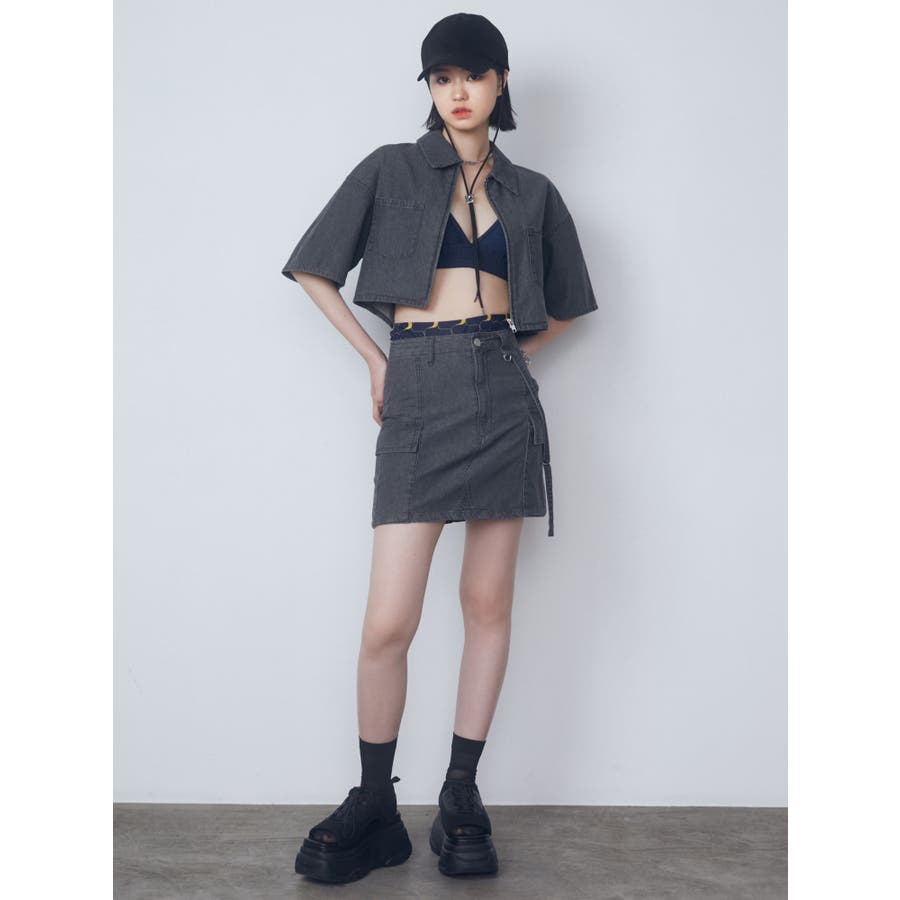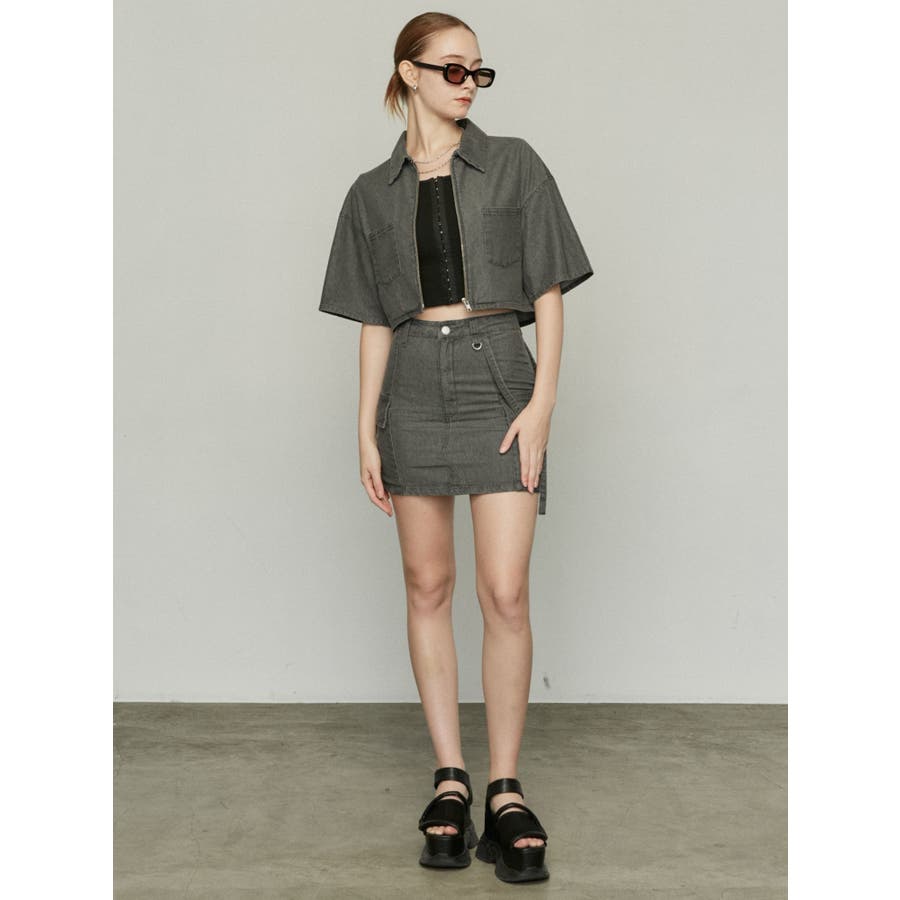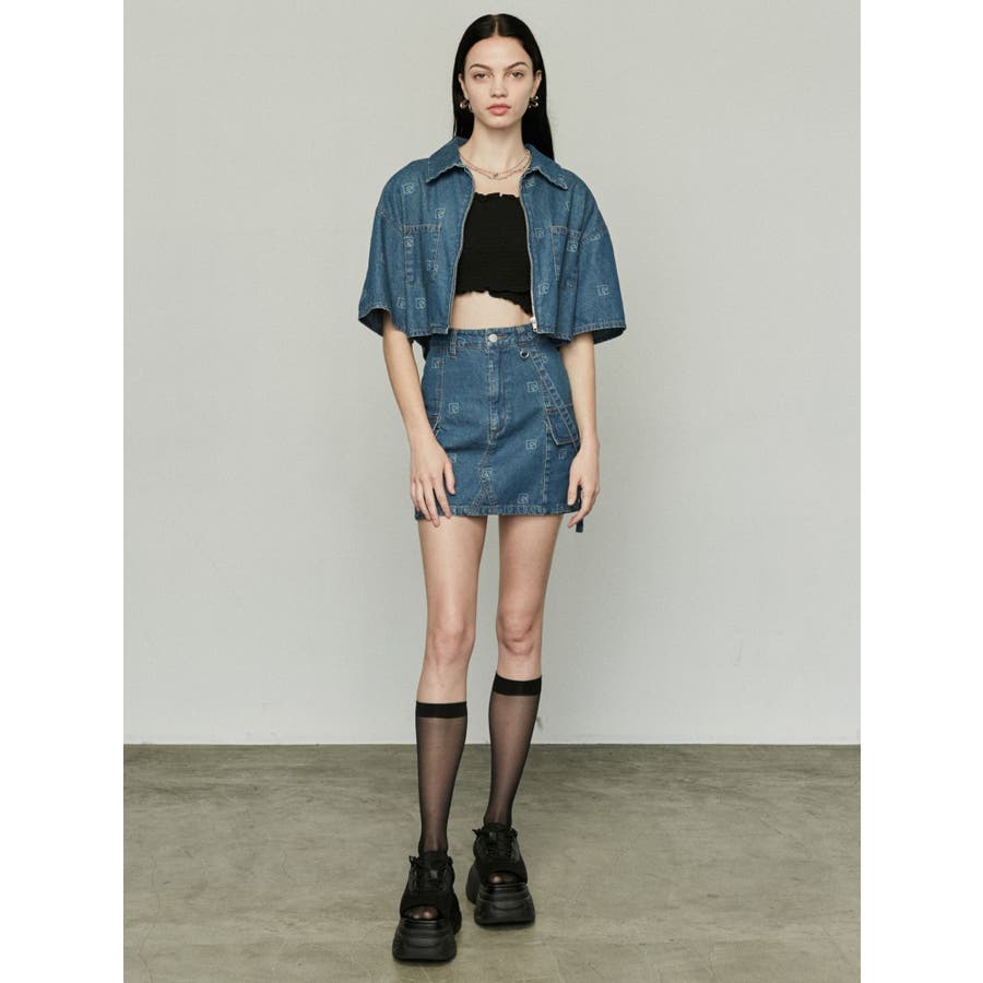 デニム素材を使用したミニスカート■デザイン夏時季にも着やすい薄手のデニム生地を使用しています。片側に付けたベルトデザイン・Dカン・フラップポケットなどトレンド感のあるディテールがポイントになります。同素材のシャツと合わせてバランスが良く見えるタイトシルエットにしていますが、軽めの生地なので着やすくなっています。■スタイリングアイスはオリジナルマークをレーザープリントで入れた総柄で1枚でスタイリングのポイントになります。ブラックとグレーは無地でトップスにモノトーンは勿論、カラーアイテムとの相性も良く着回しが効きます。フロントジップデニムシャツと同素材・同色の展開でセットアップでの着用が一押しです。※着用画像はフラッシュの加減で実際の製品と色味等が異なる場合がございます。※ご利用の端末画面の設定により実際の商品と色味が異なる場合がございます。【商品特徴】透け感:なし伸縮性:なし生地の厚さ:普通サイズ感:ゆったり裏地:ありポケット:あり
