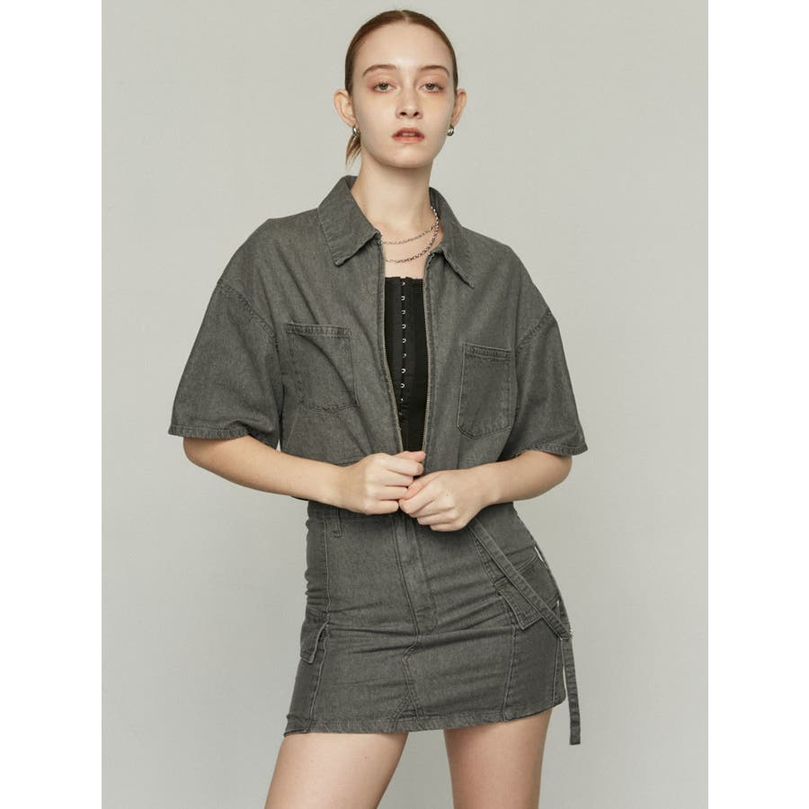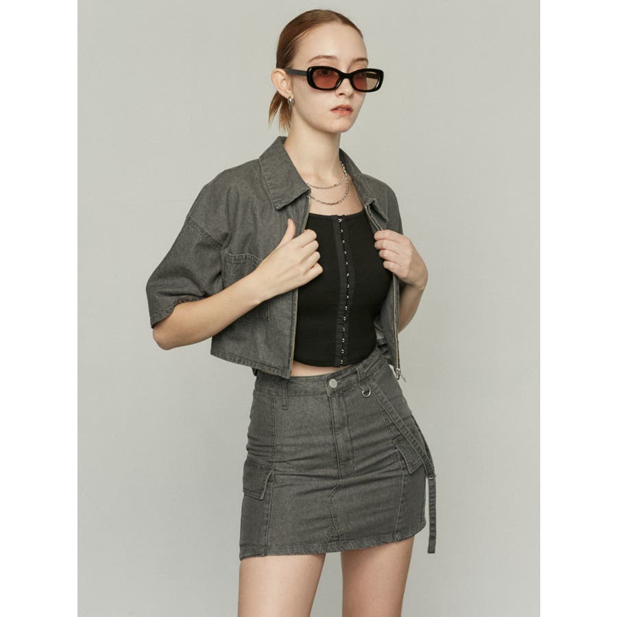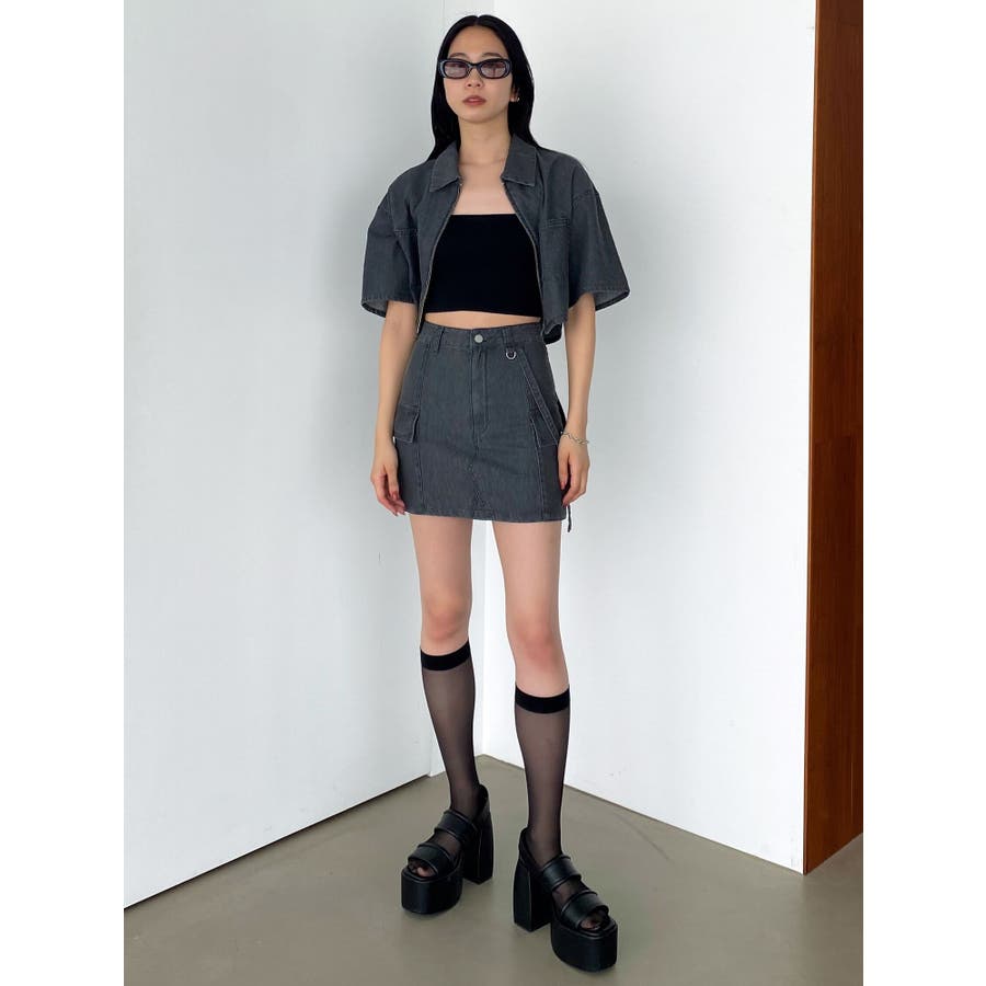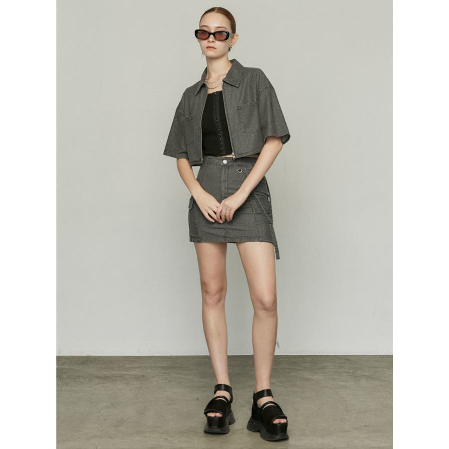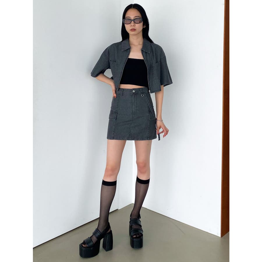 デニム素材を使用したミニスカート■デザイン夏時季にも着やすい薄手のデニム生地を使用しています。片側に付けたベルトデザイン・Dカン・フラップポケットなどトレンド感のあるディテールがポイントになります。同素材のシャツと合わせてバランスが良く見えるタイトシルエットにしていますが、軽めの生地なので着やすくなっています。■スタイリングアイスはオリジナルマークをレーザープリントで入れた総柄で1枚でスタイリングのポイントになります。ブラックとグレーは無地でトップスにモノトーンは勿論、カラーアイテムとの相性も良く着回しが効きます。フロントジップデニムシャツと同素材・同色の展開でセットアップでの着用が一押しです。※着用画像はフラッシュの加減で実際の製品と色味等が異なる場合がございます。※ご利用の端末画面の設定により実際の商品と色味が異なる場合がございます。【商品特徴】透け感:なし伸縮性:なし生地の厚さ:普通サイズ感:ゆったり裏地:ありポケット:あり