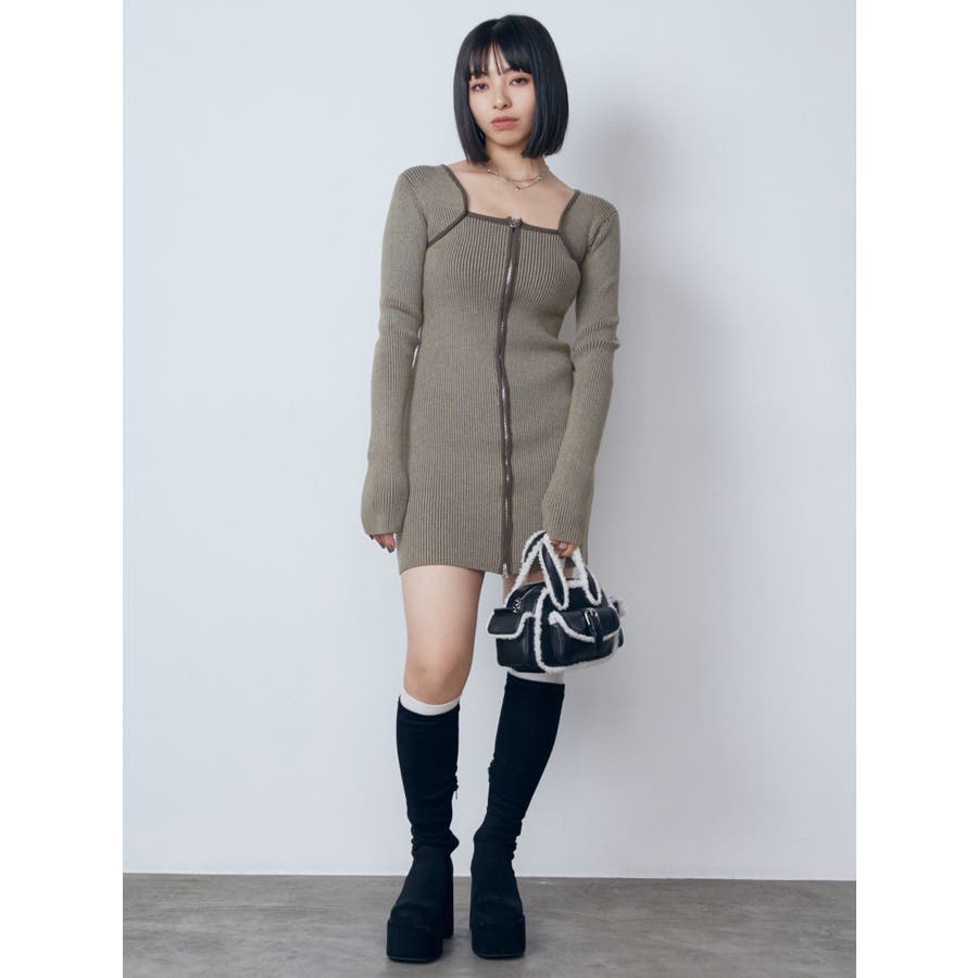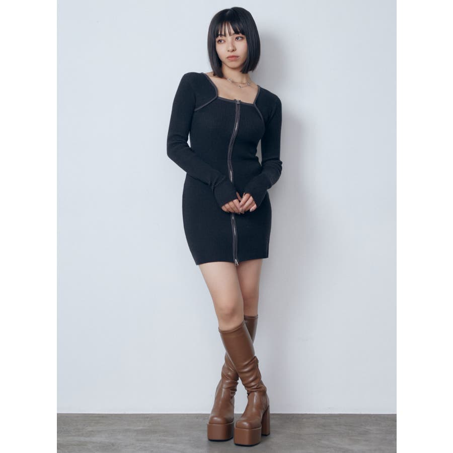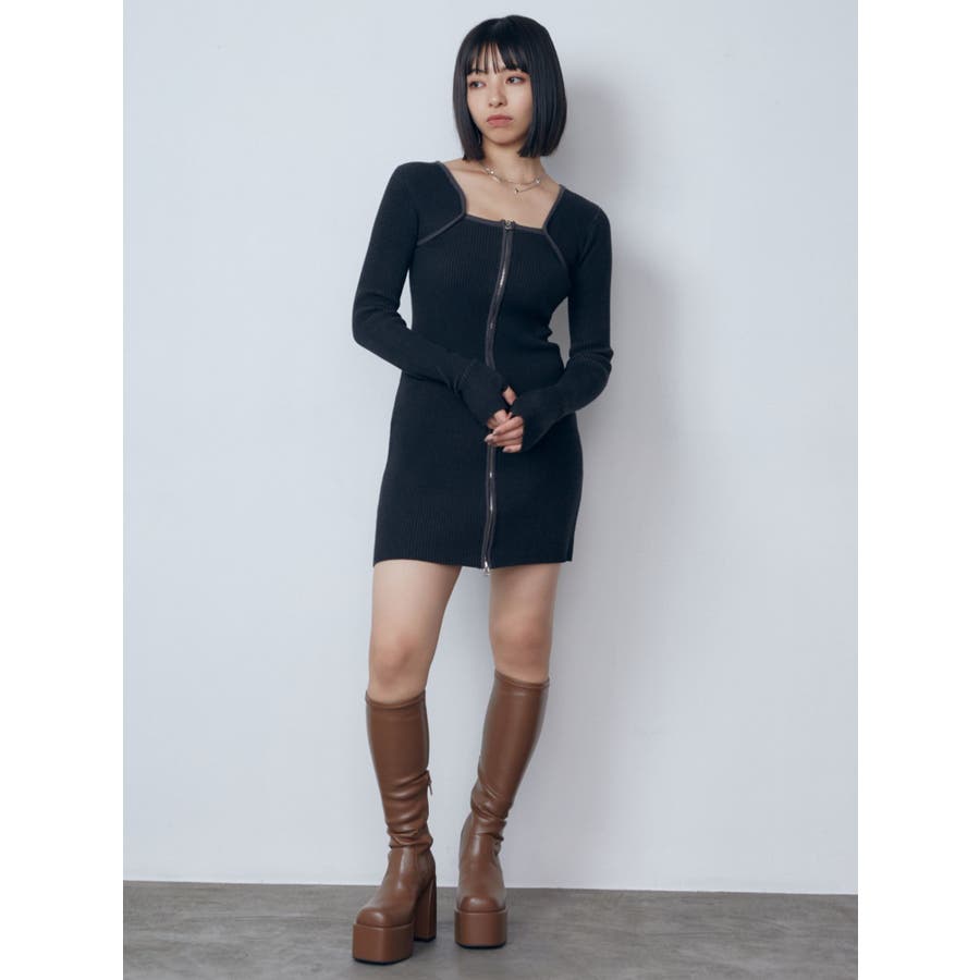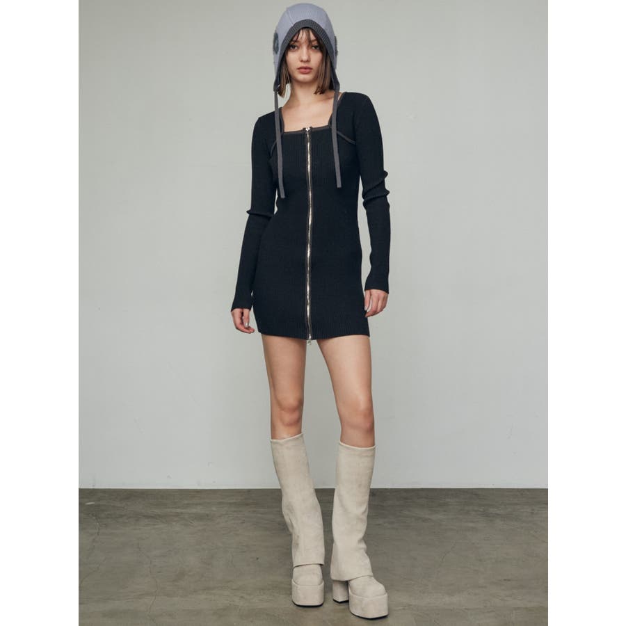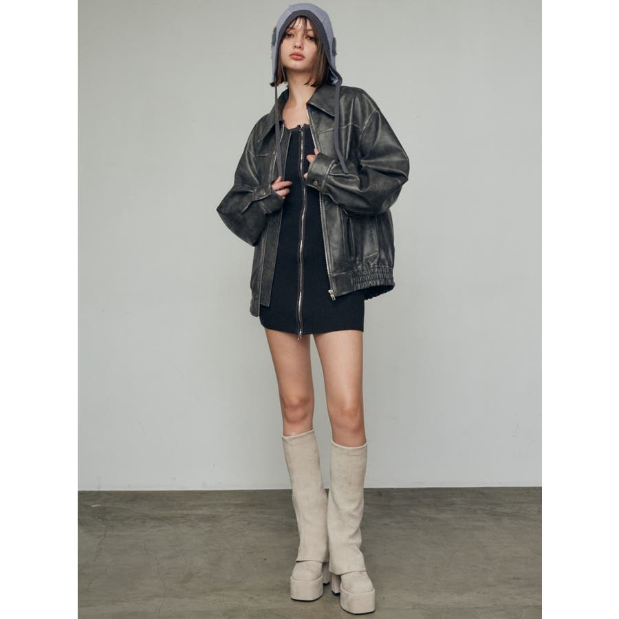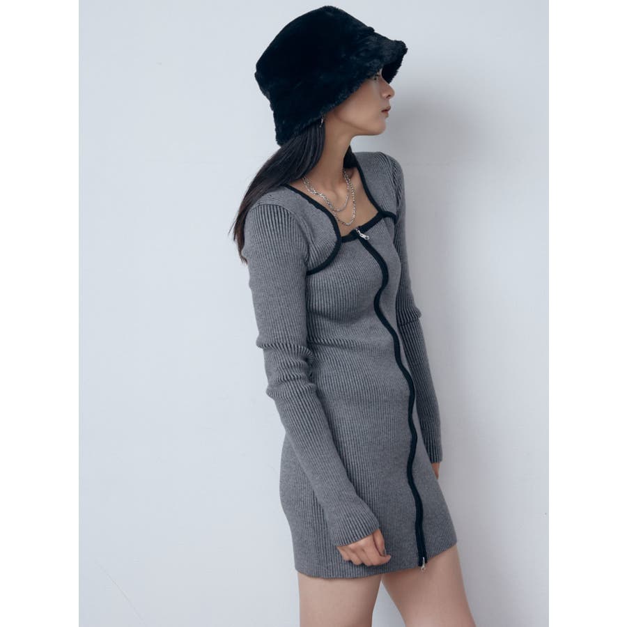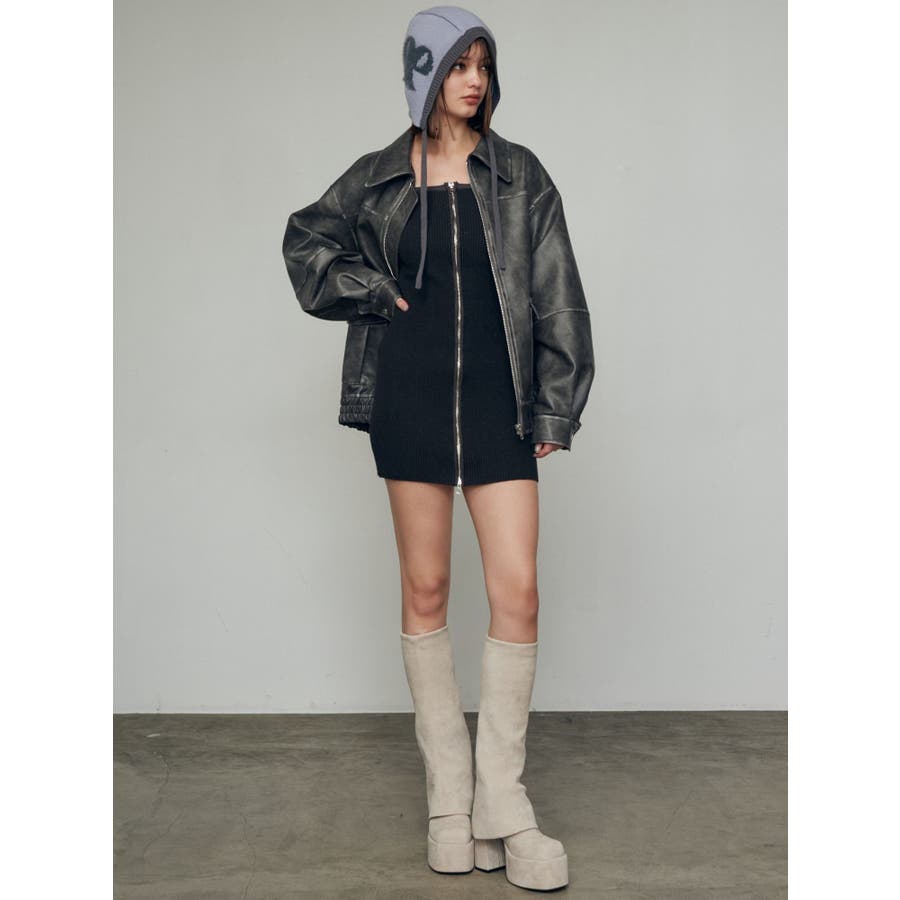 プレーティングリブジップワンピース