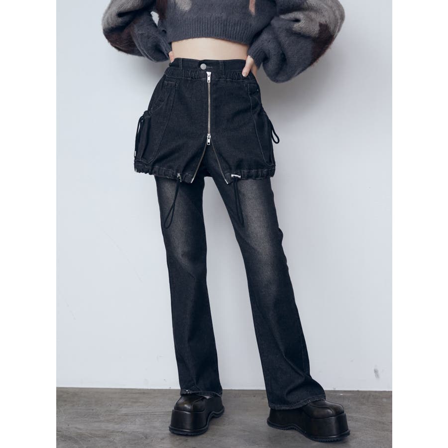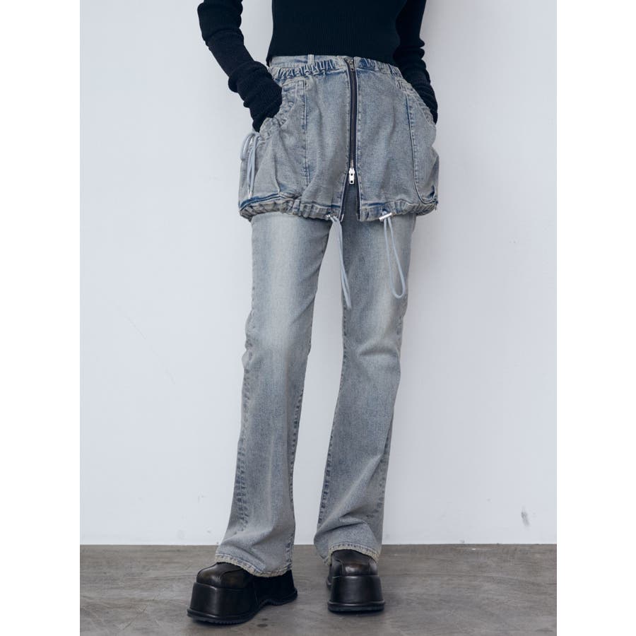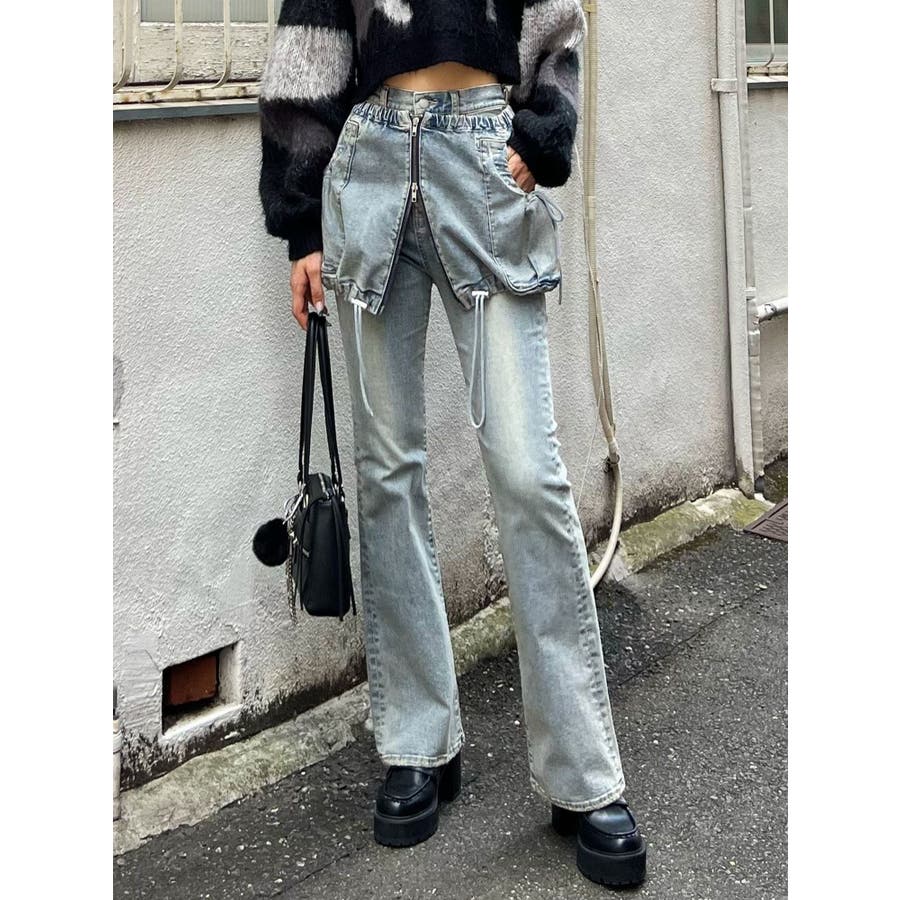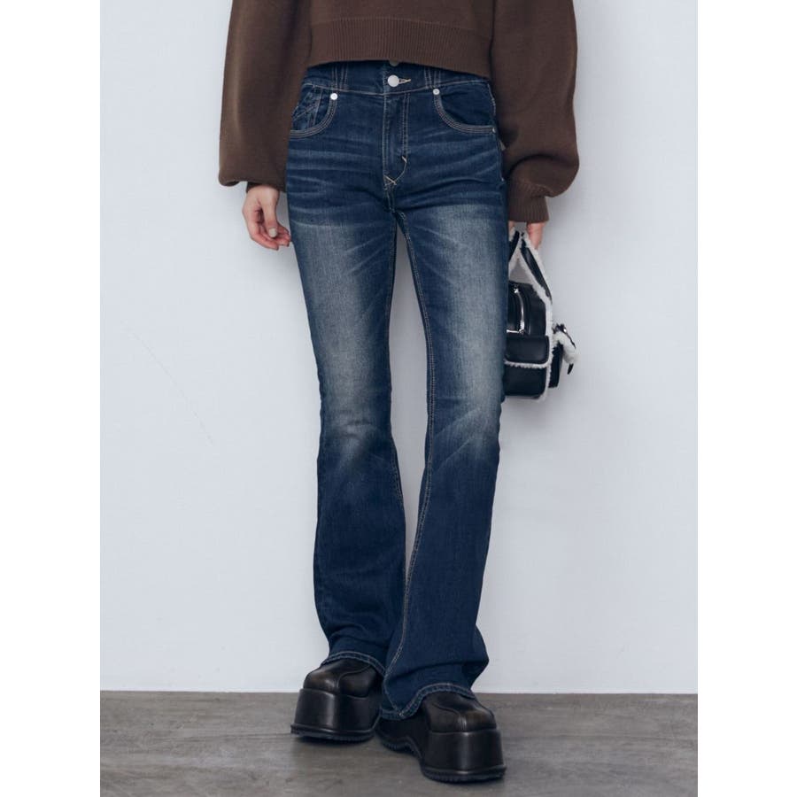 レイヤージャストウエストフレアージーンズ
