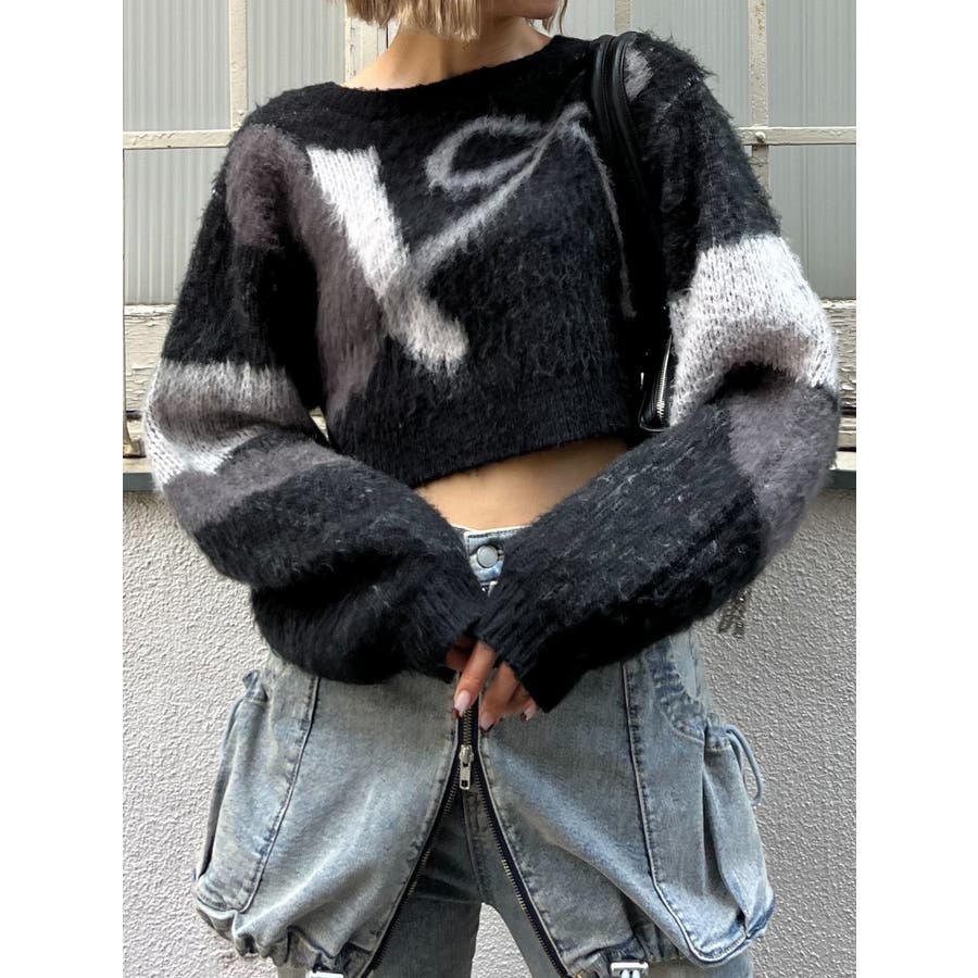 ショートルーズジャガードニット