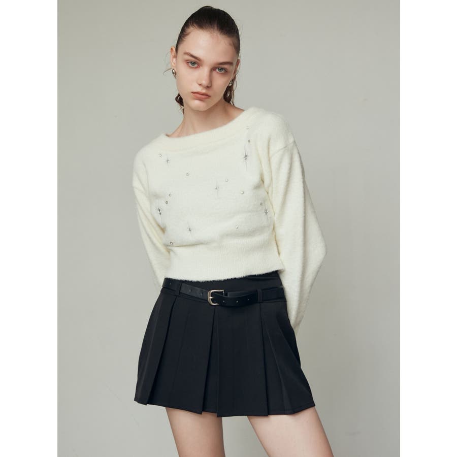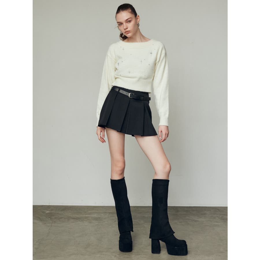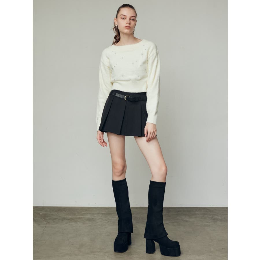 レイヤーベルトプリーツスカート