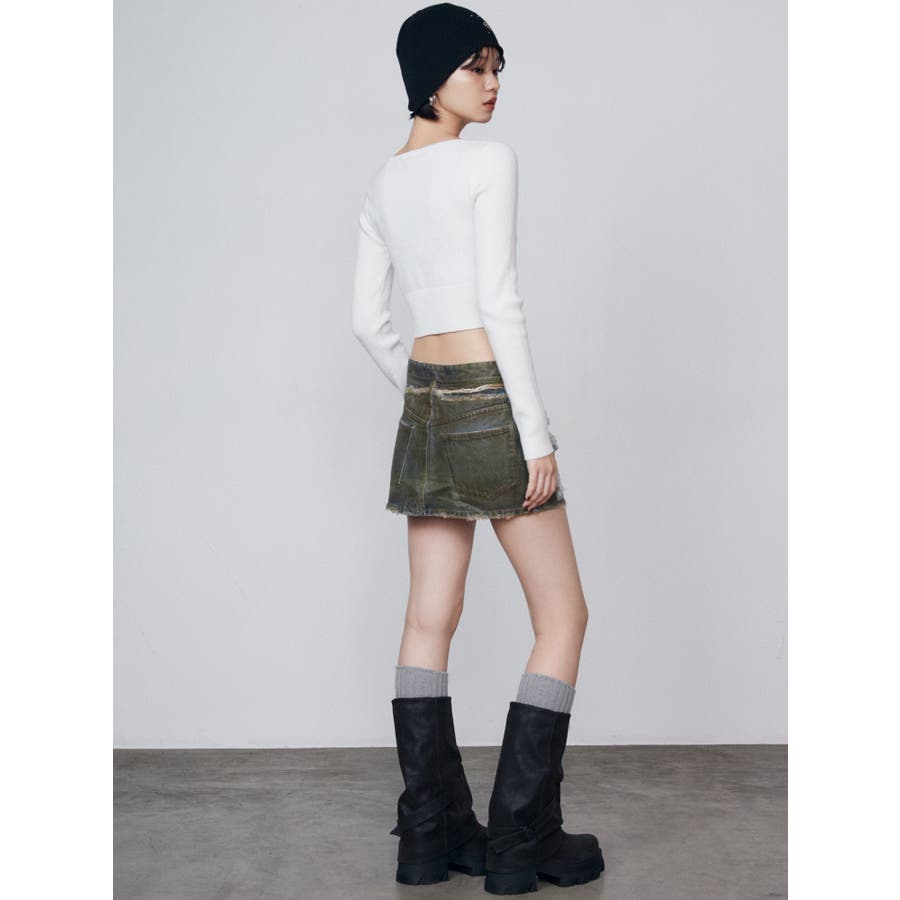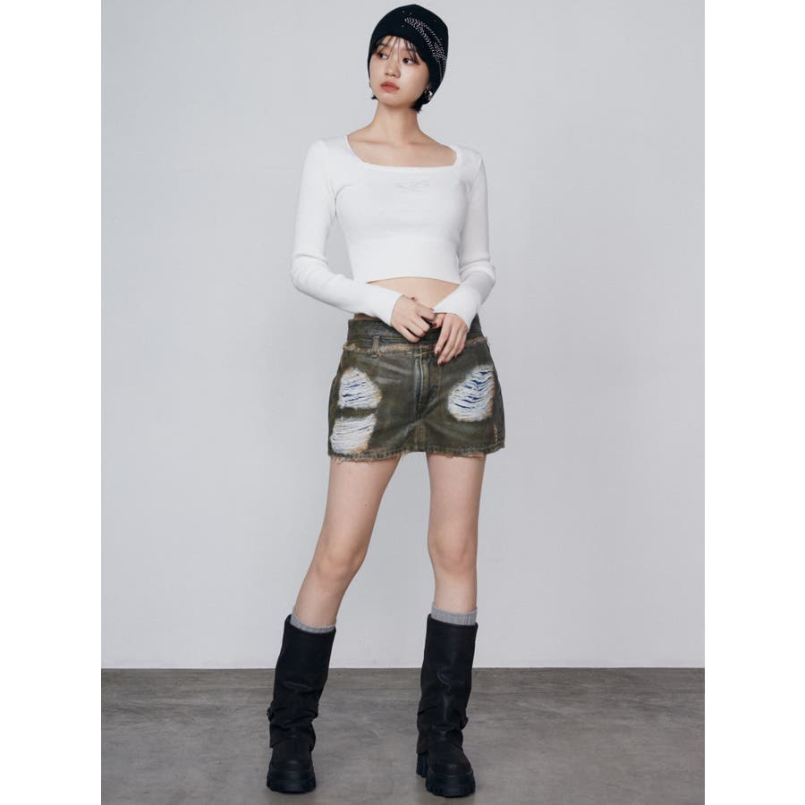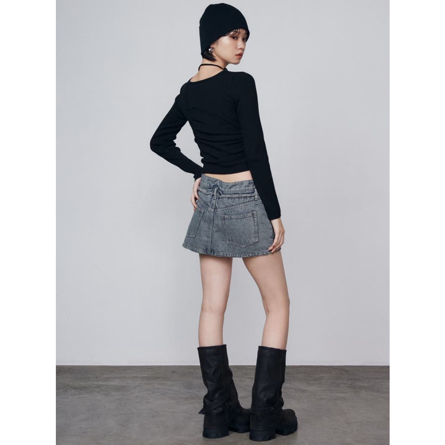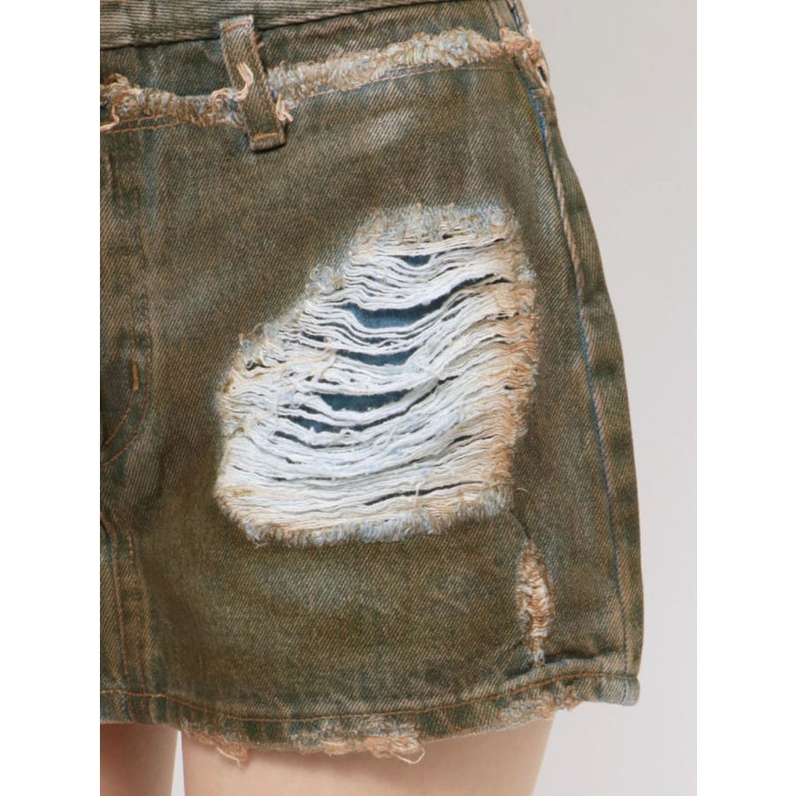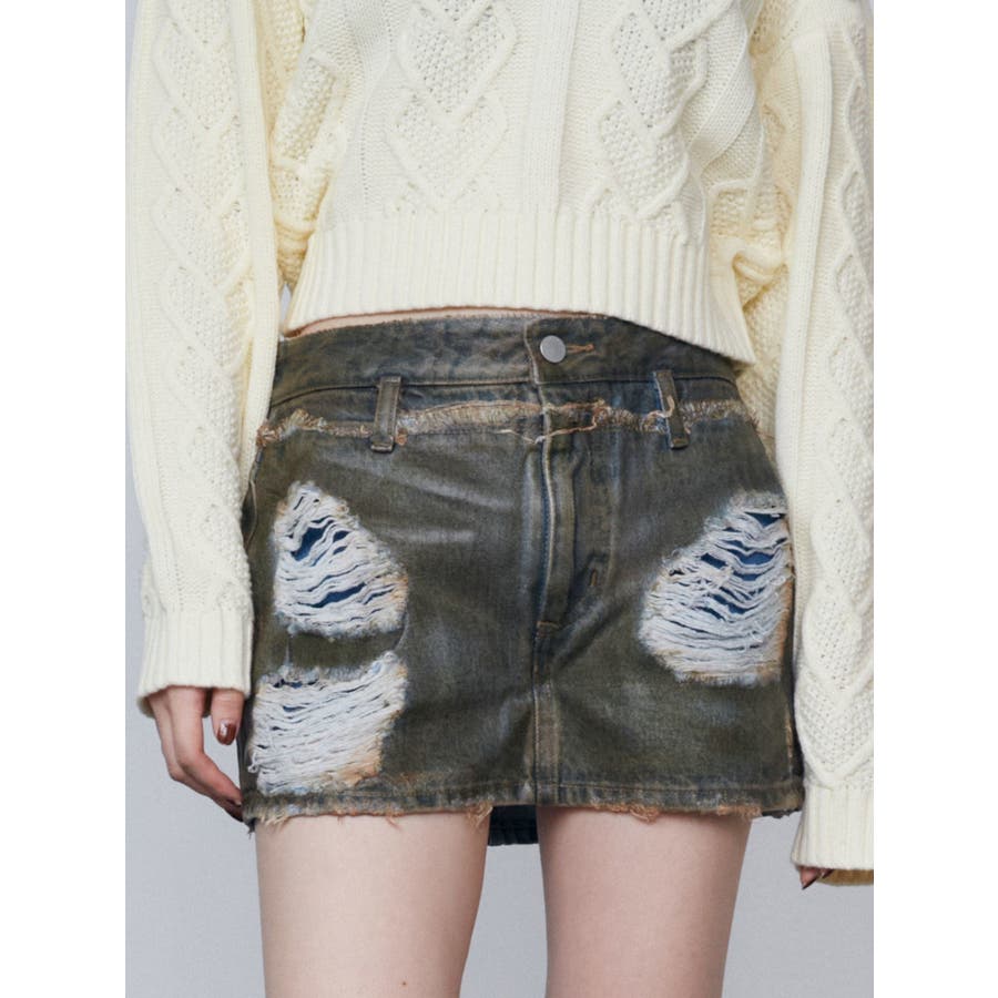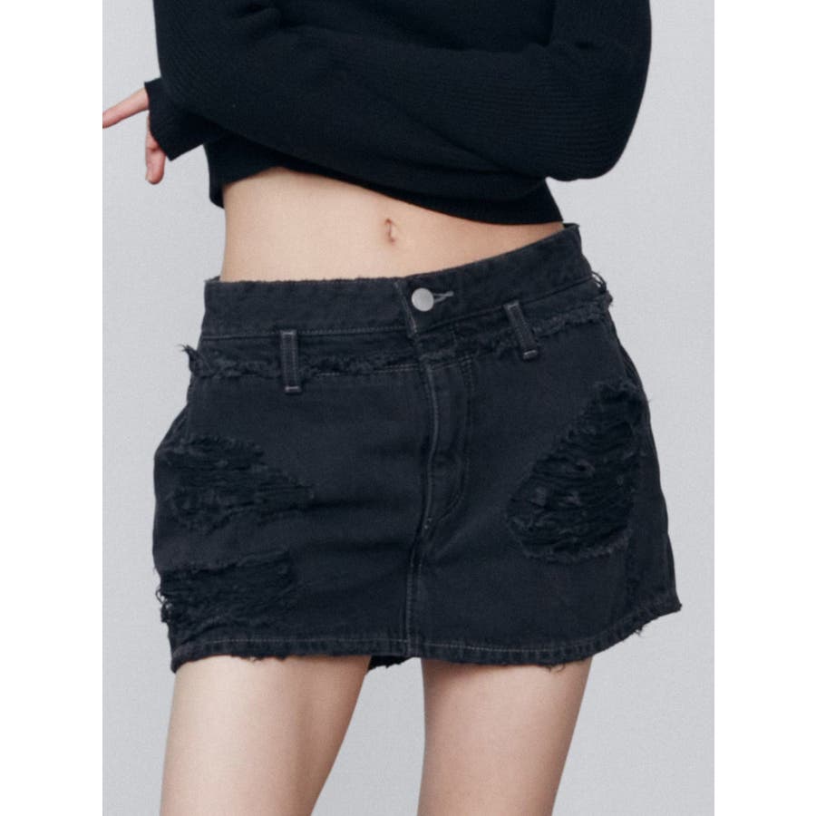 レイヤーリップドデニムミニスカート