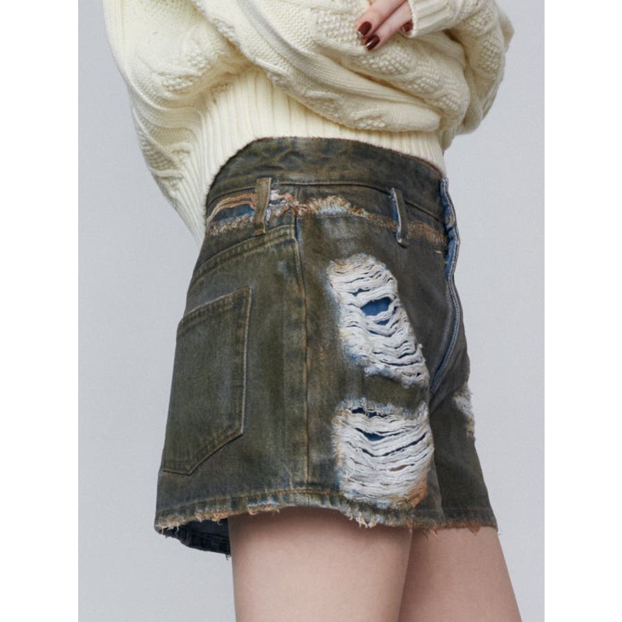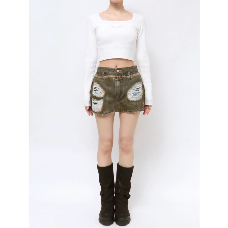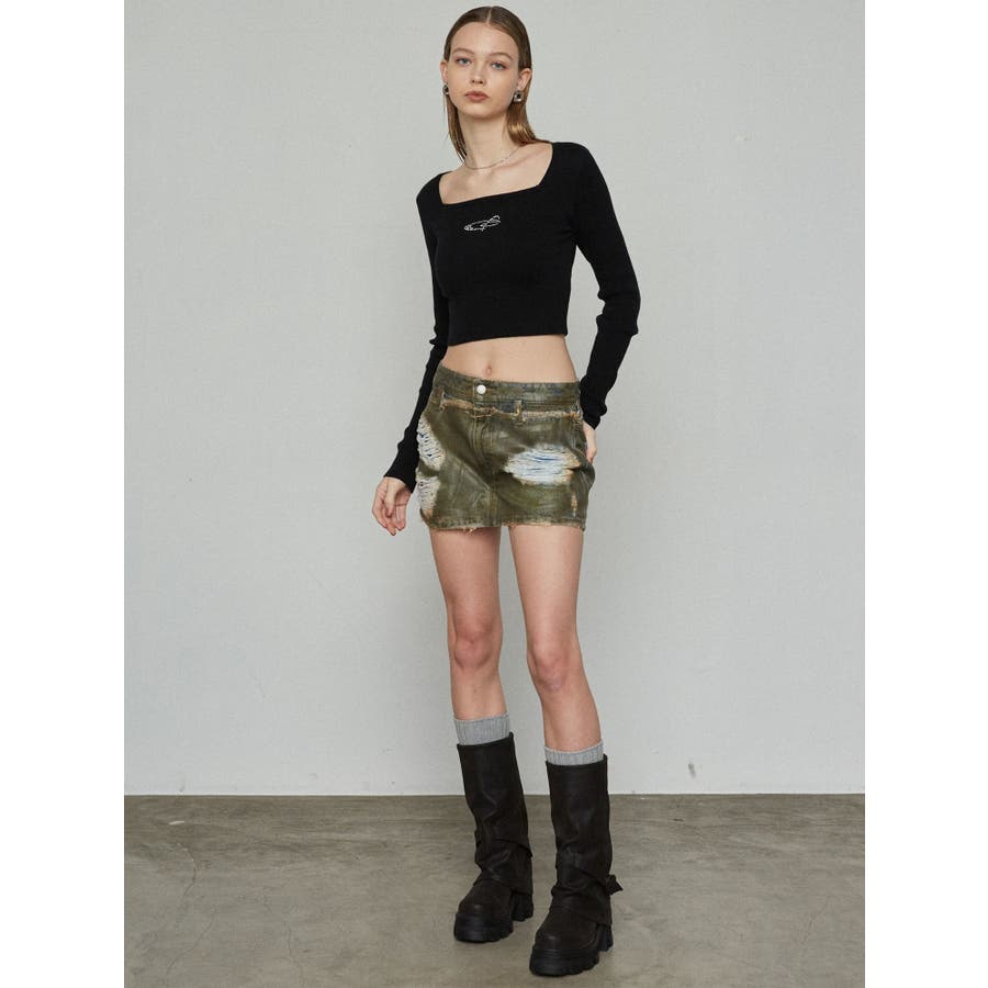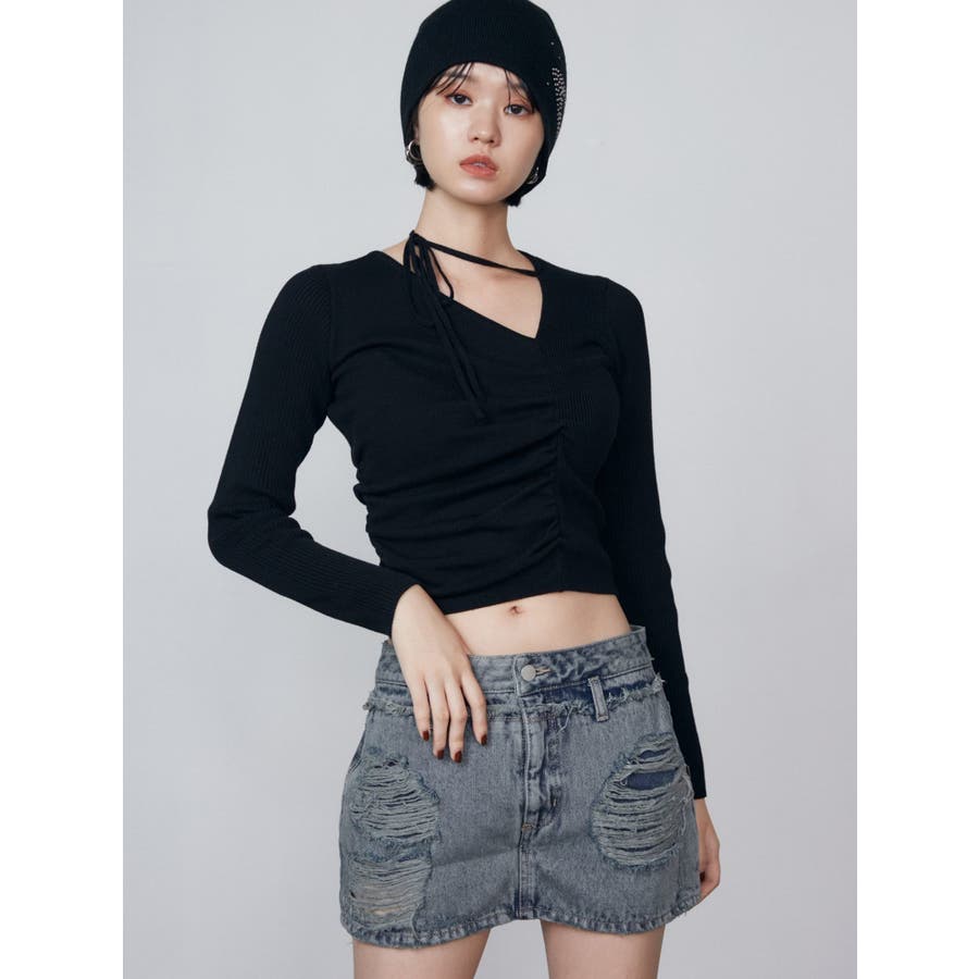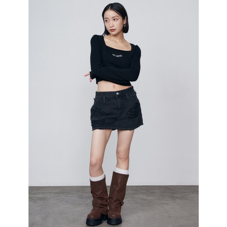 レイヤーリップドデニムミニスカート