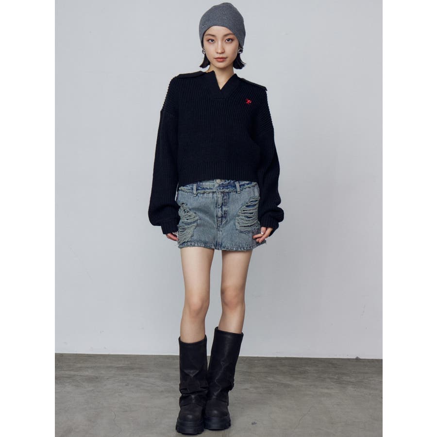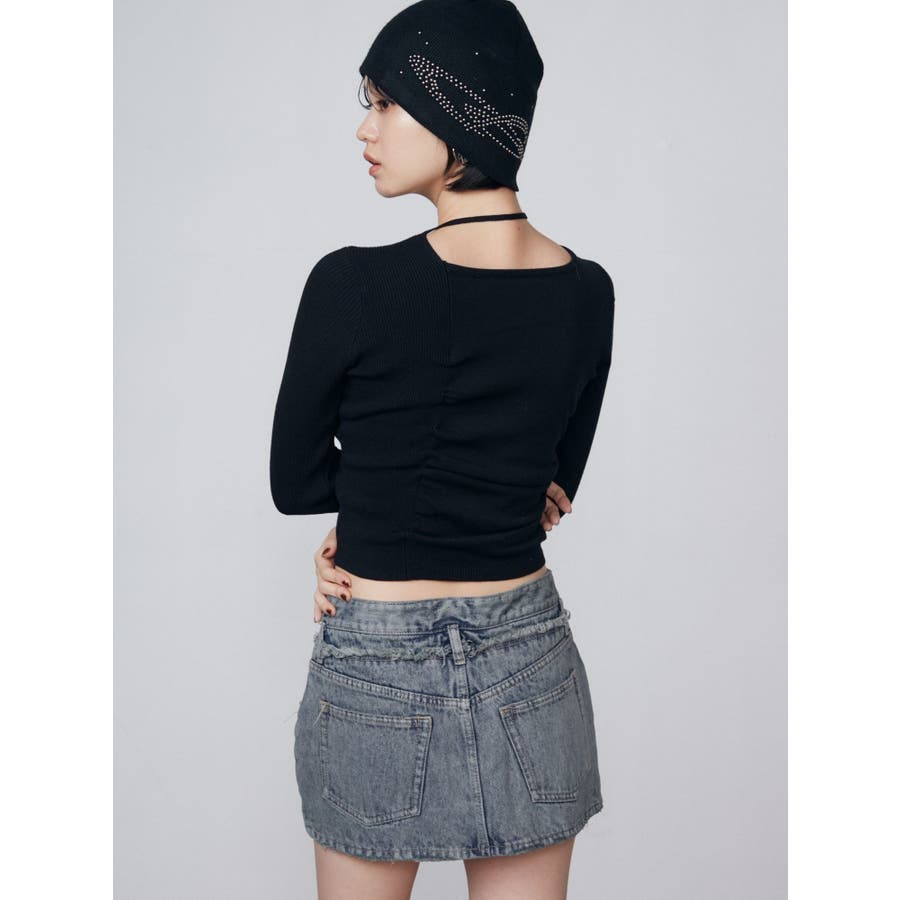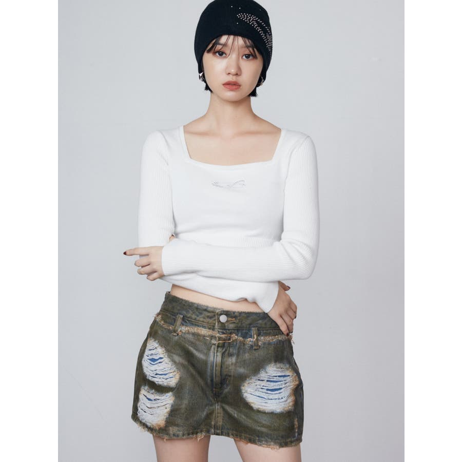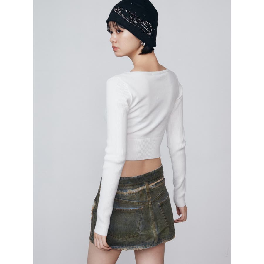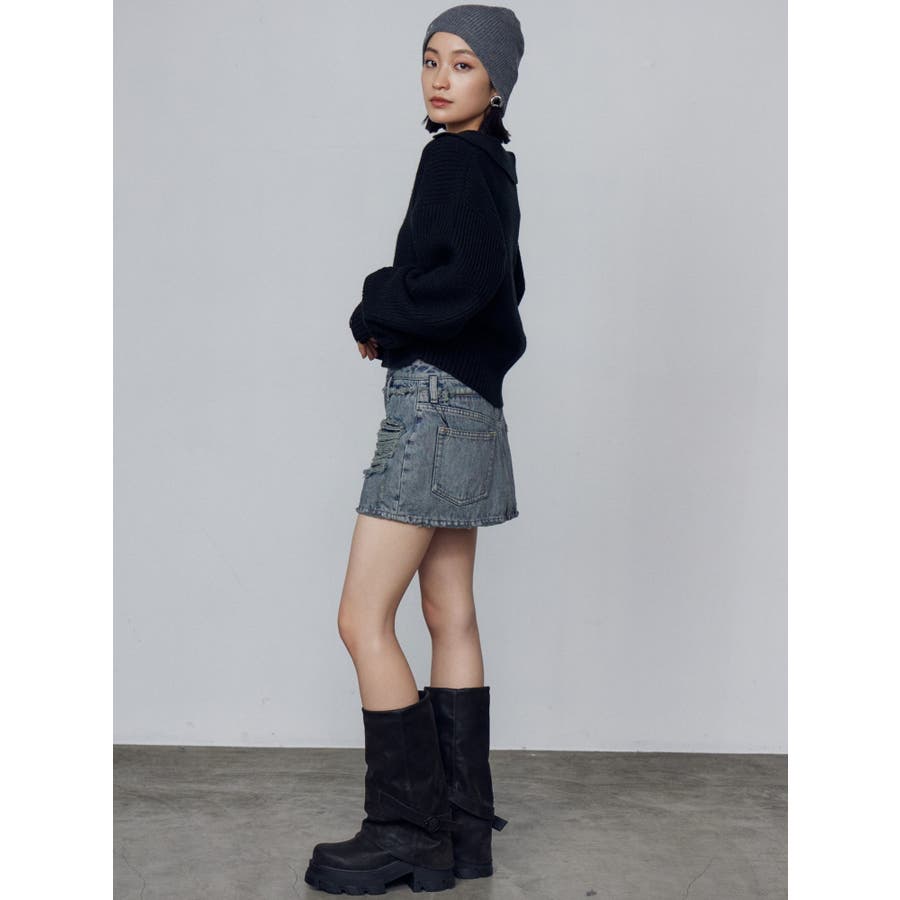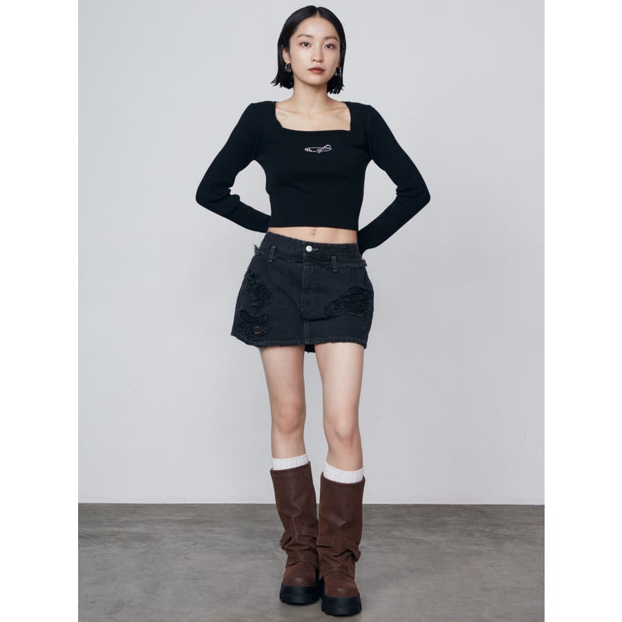 レイヤーリップドデニムミニスカート