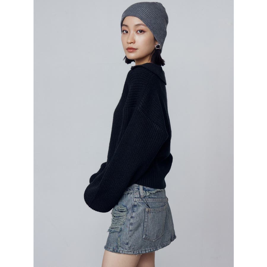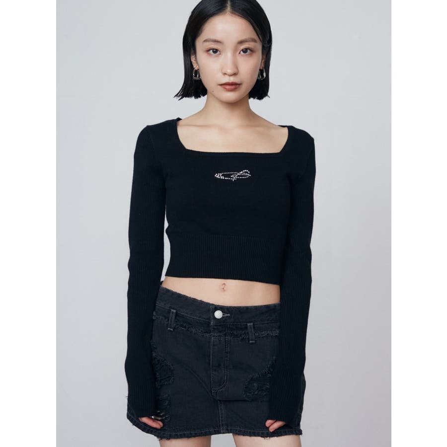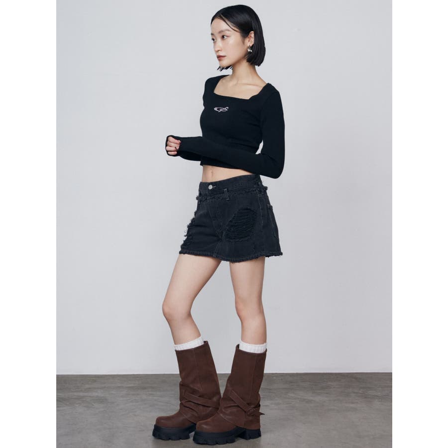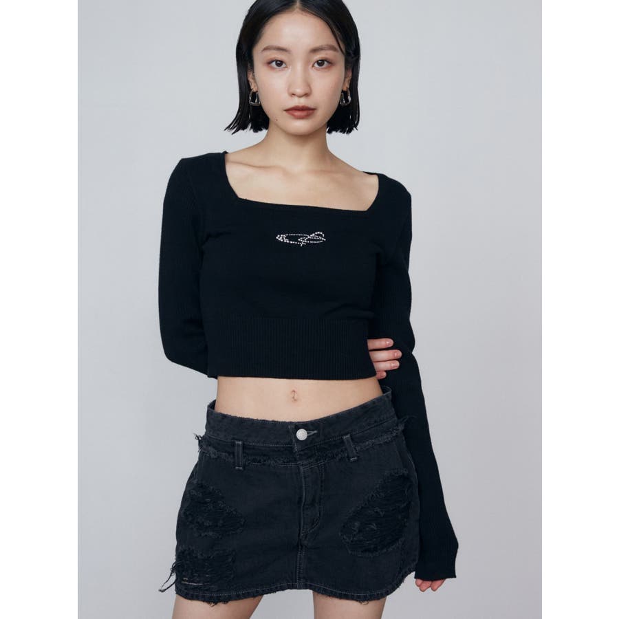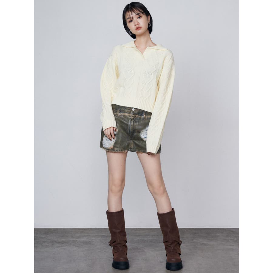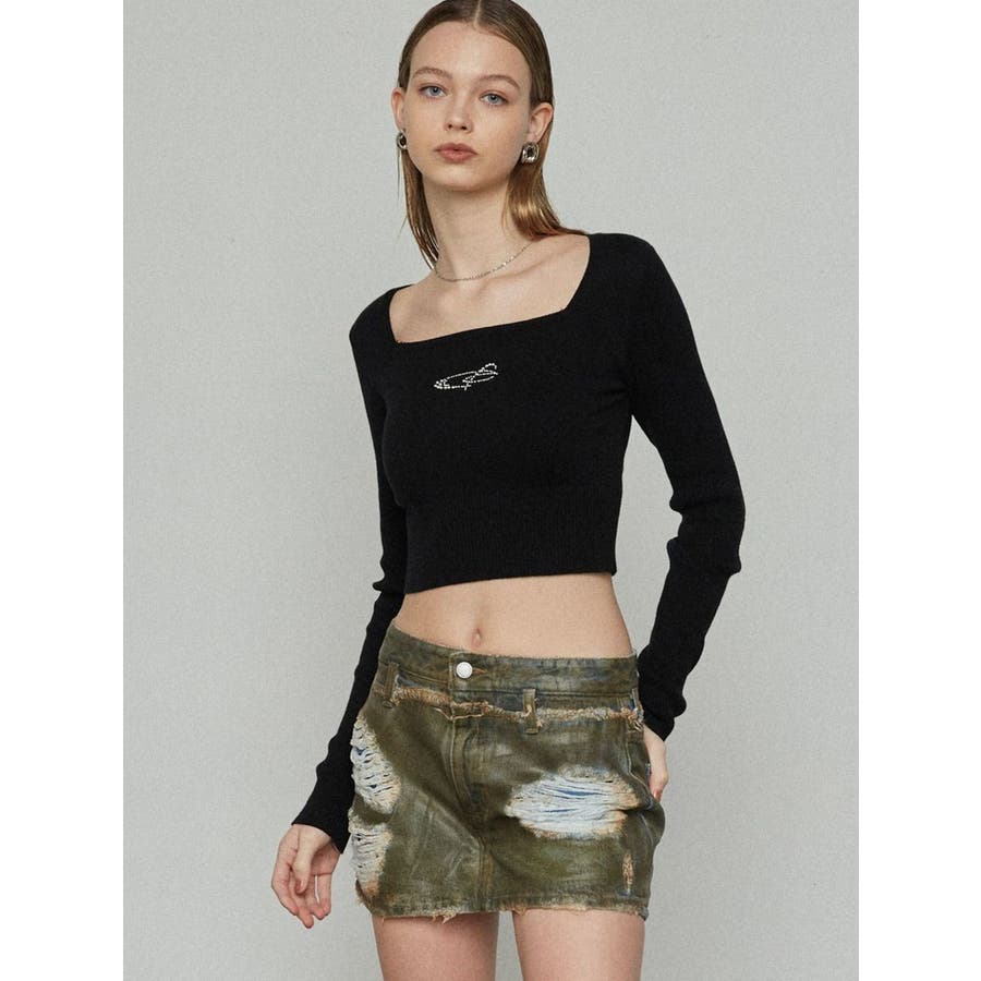 レイヤーリップドデニムミニスカート
