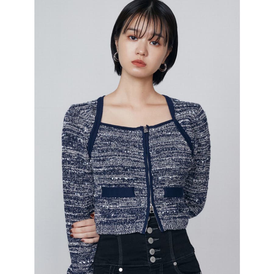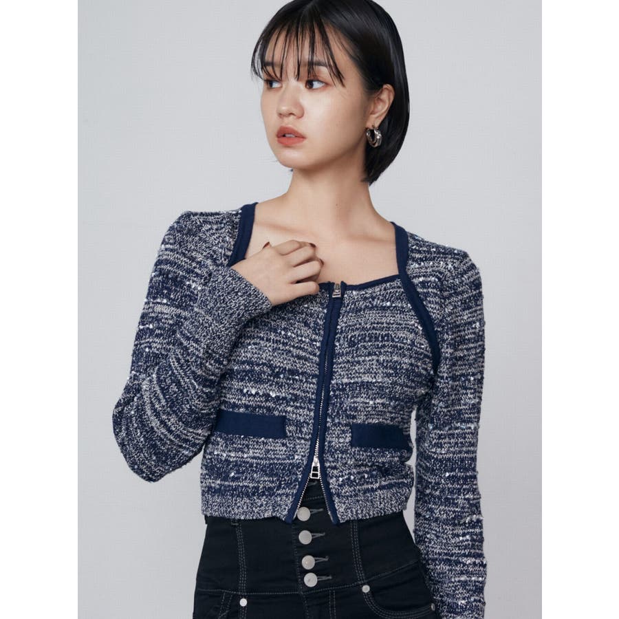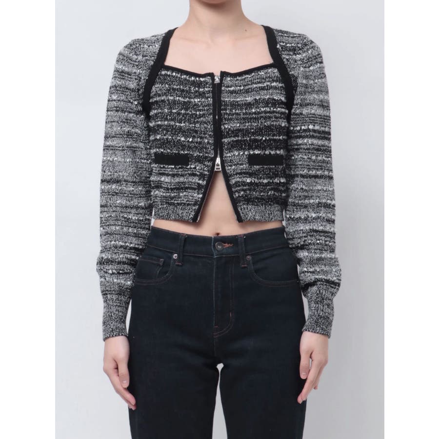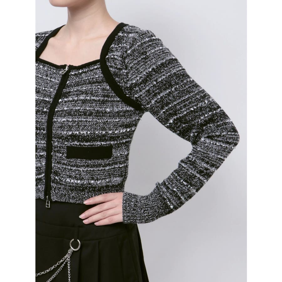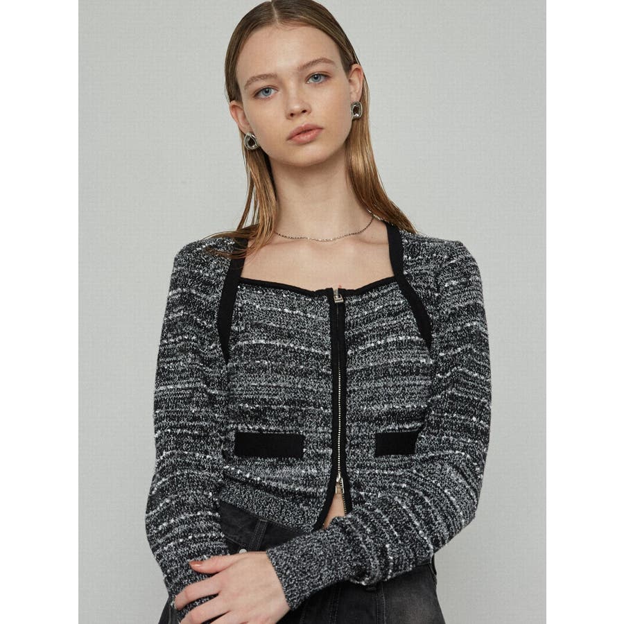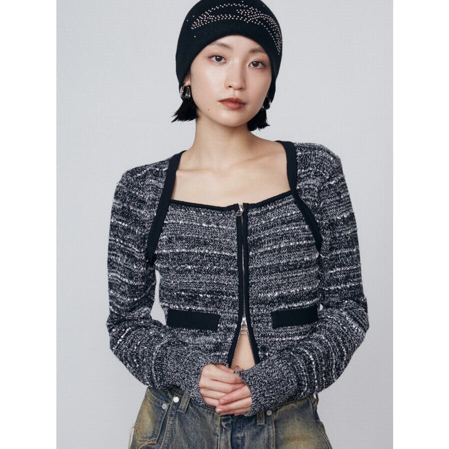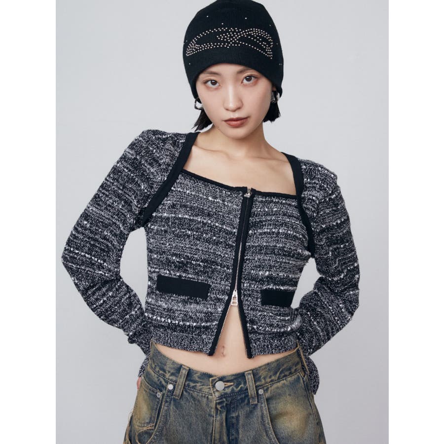 ツイードクロップジップニット