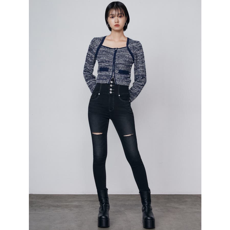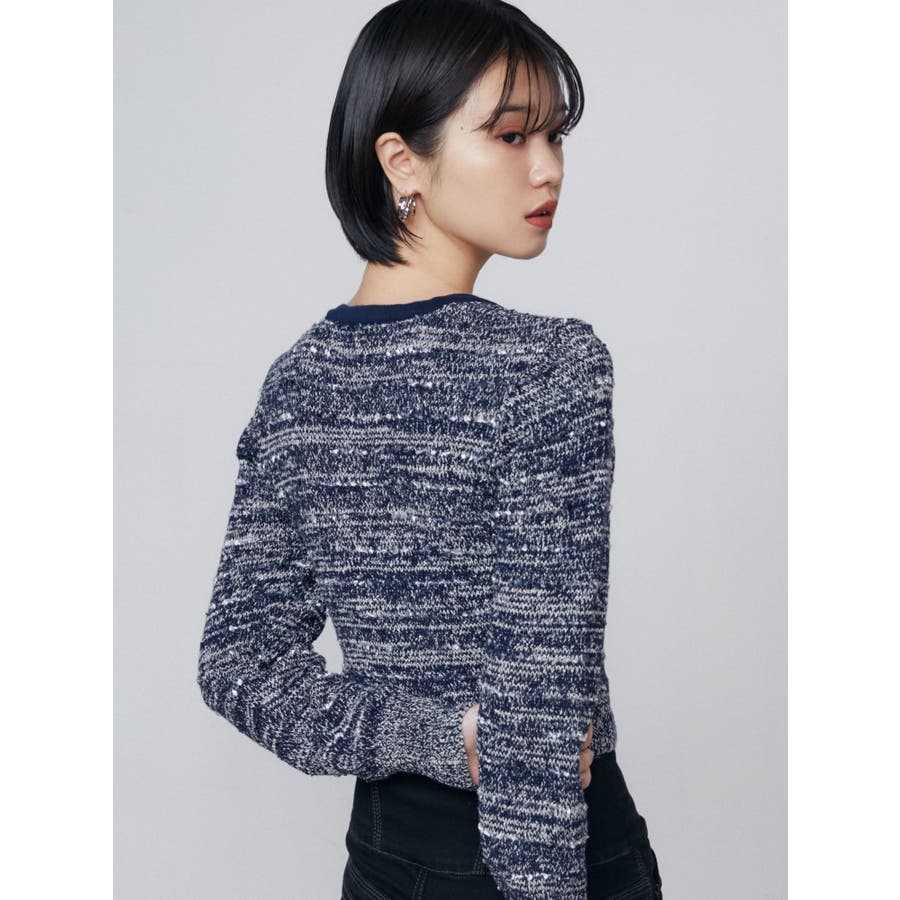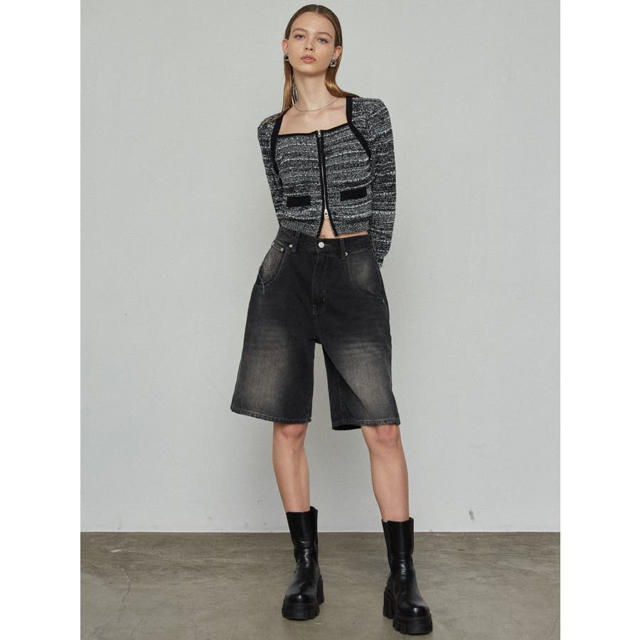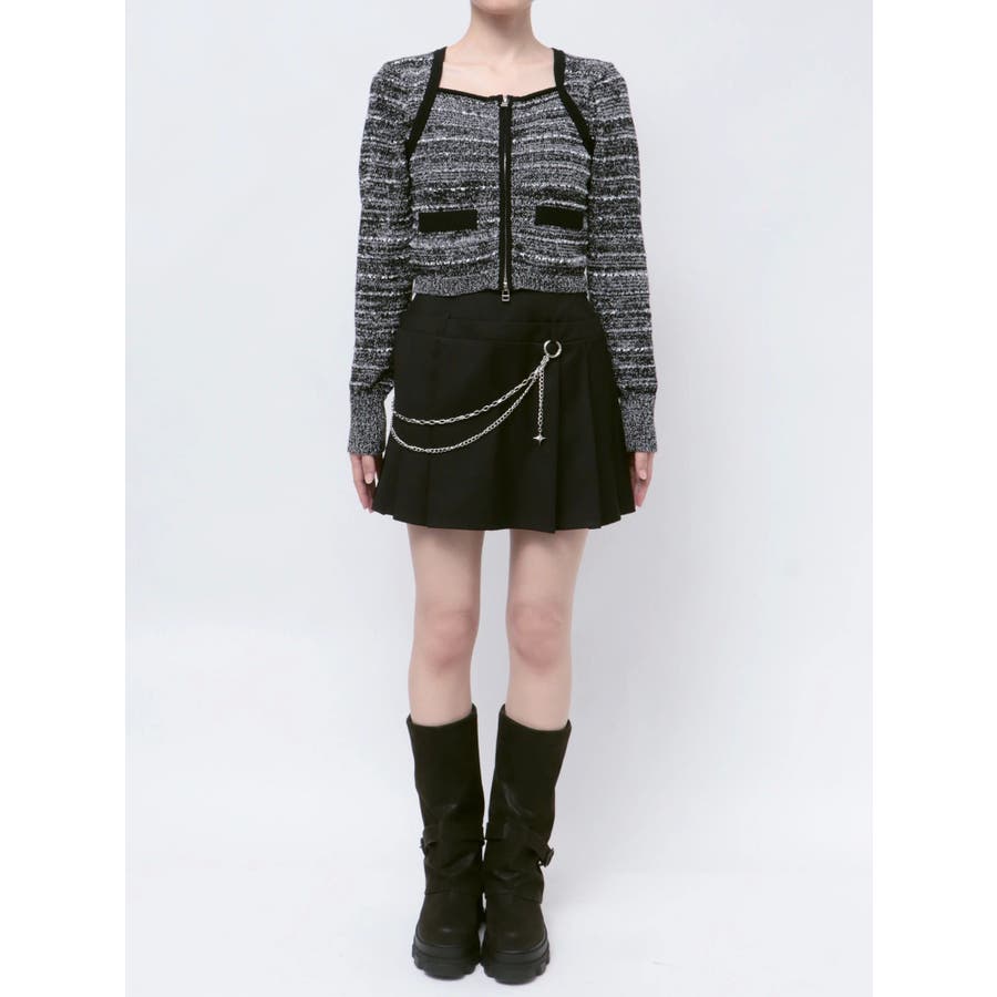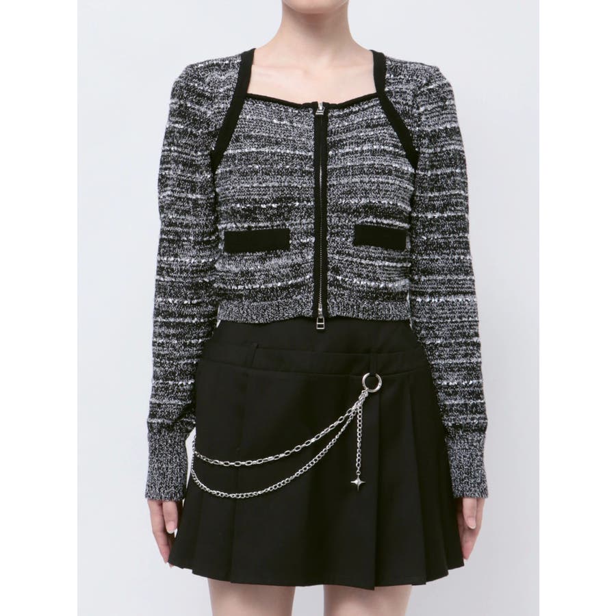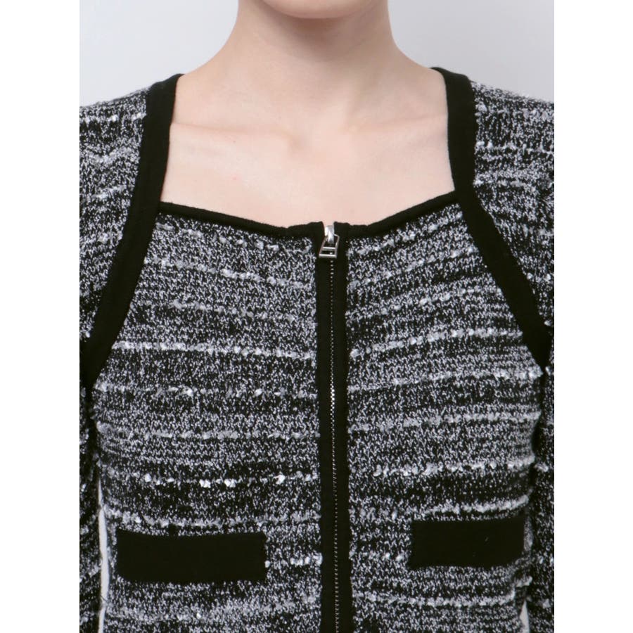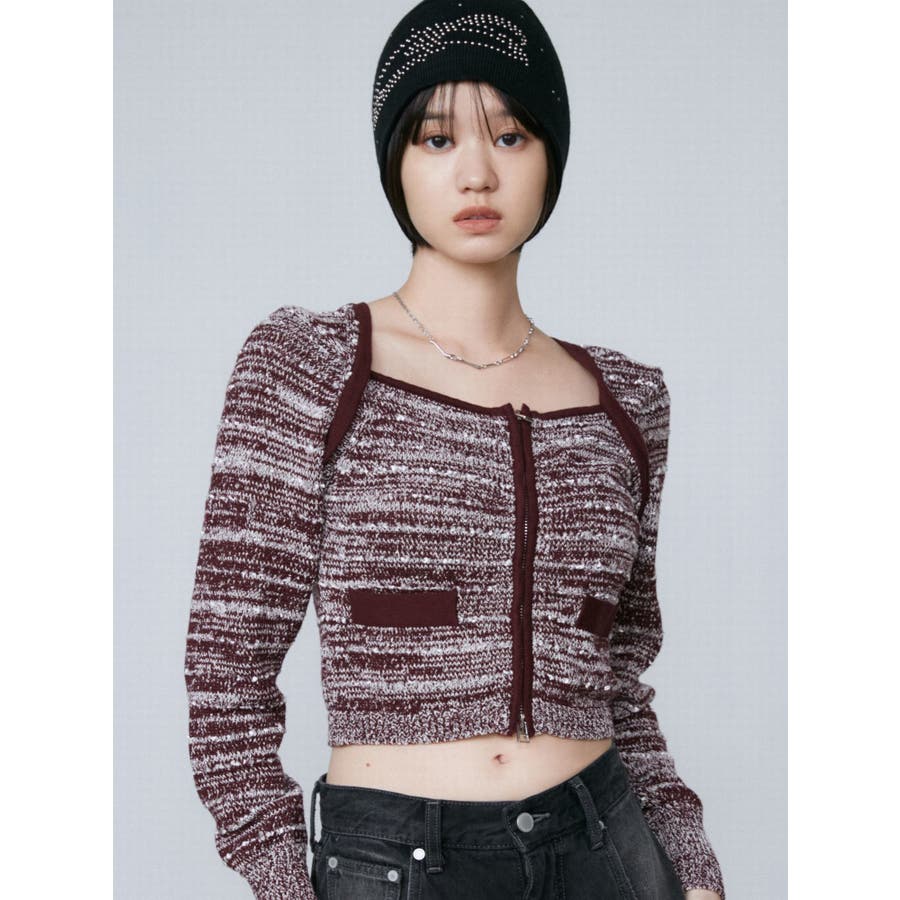 ツイードクロップジップニット