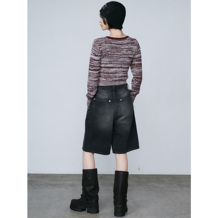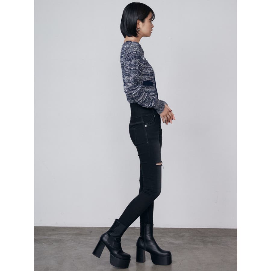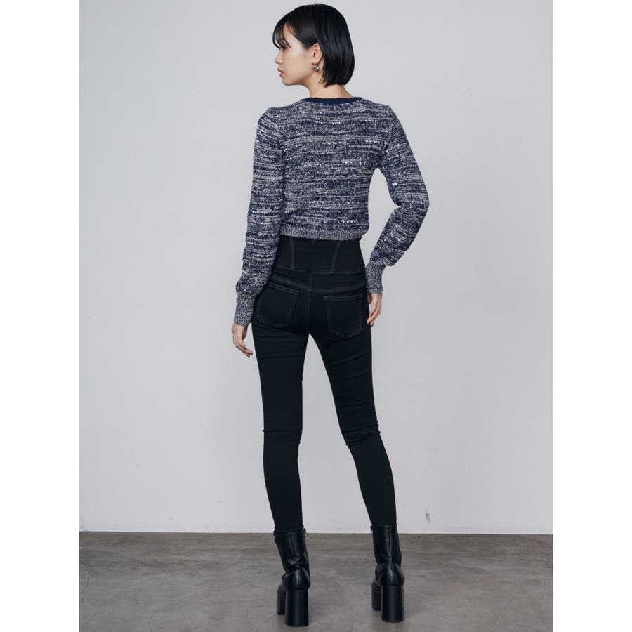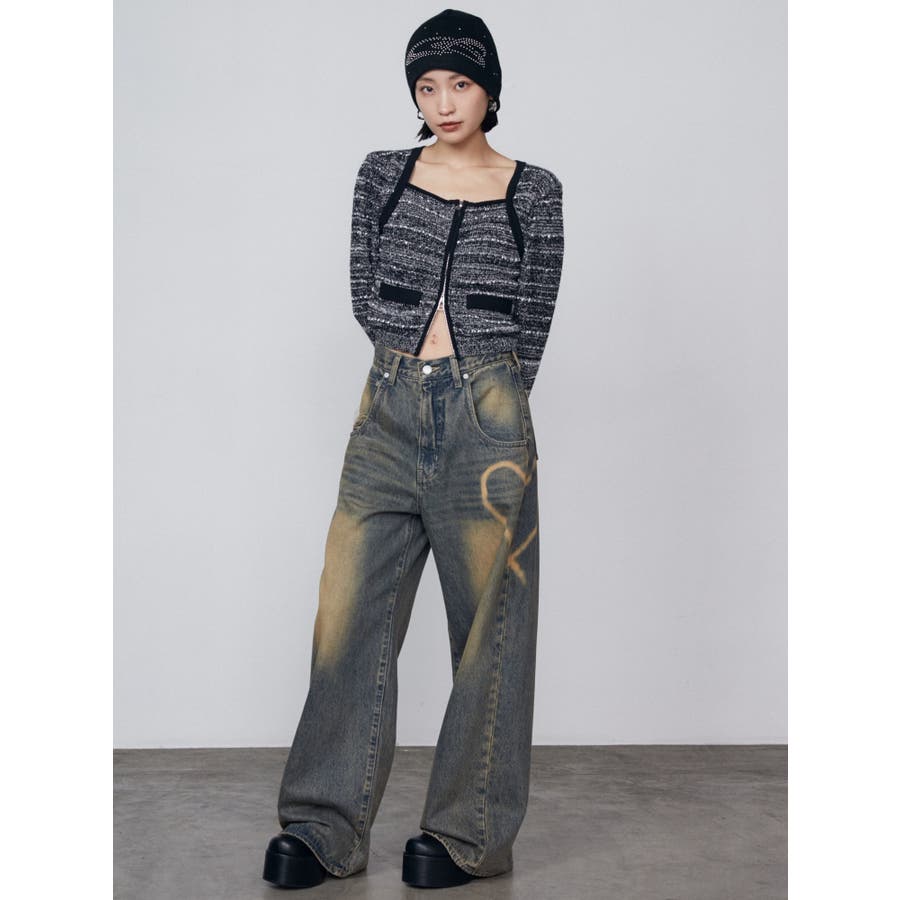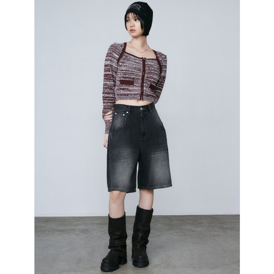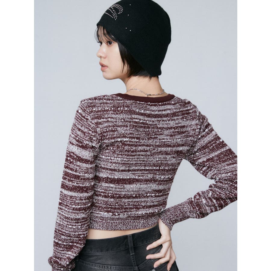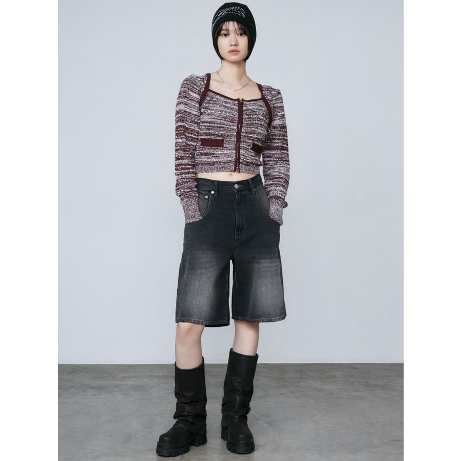 ツイードクロップジップニット