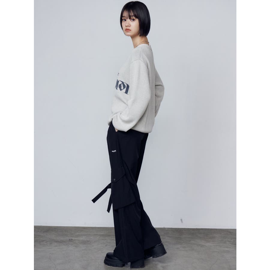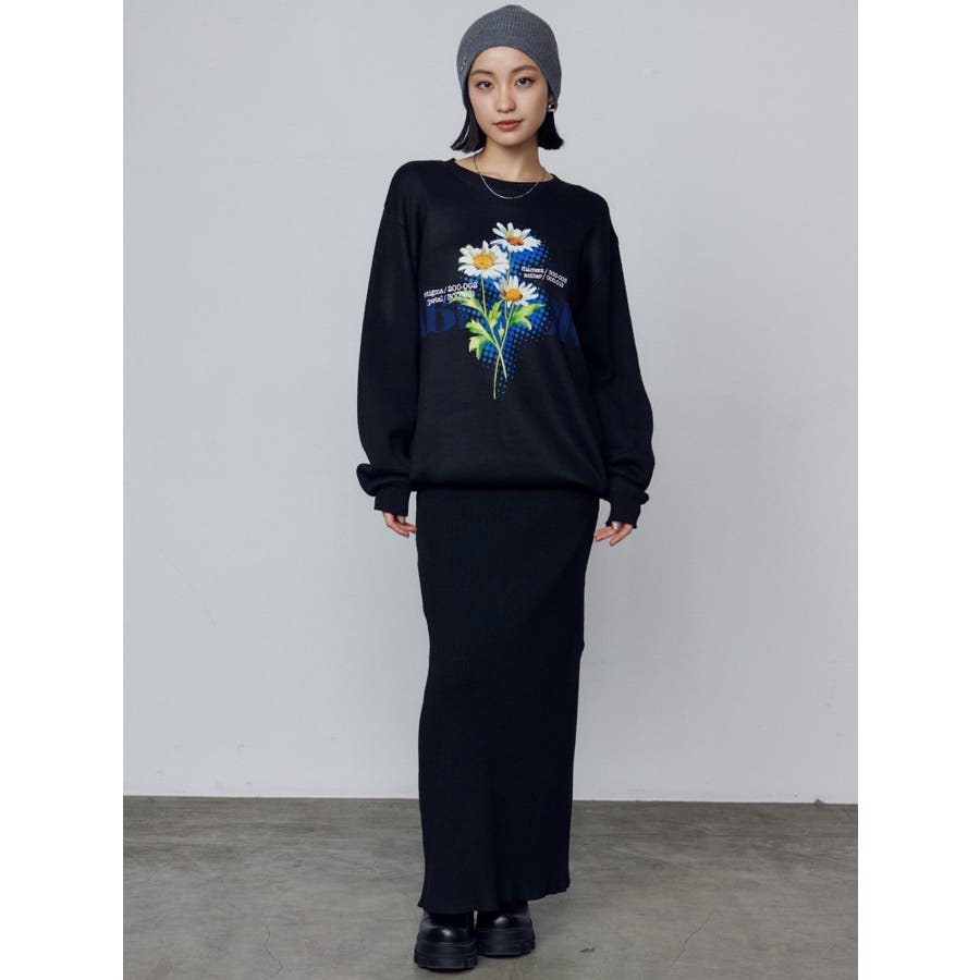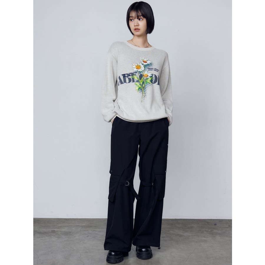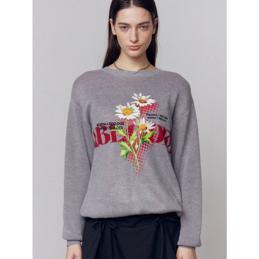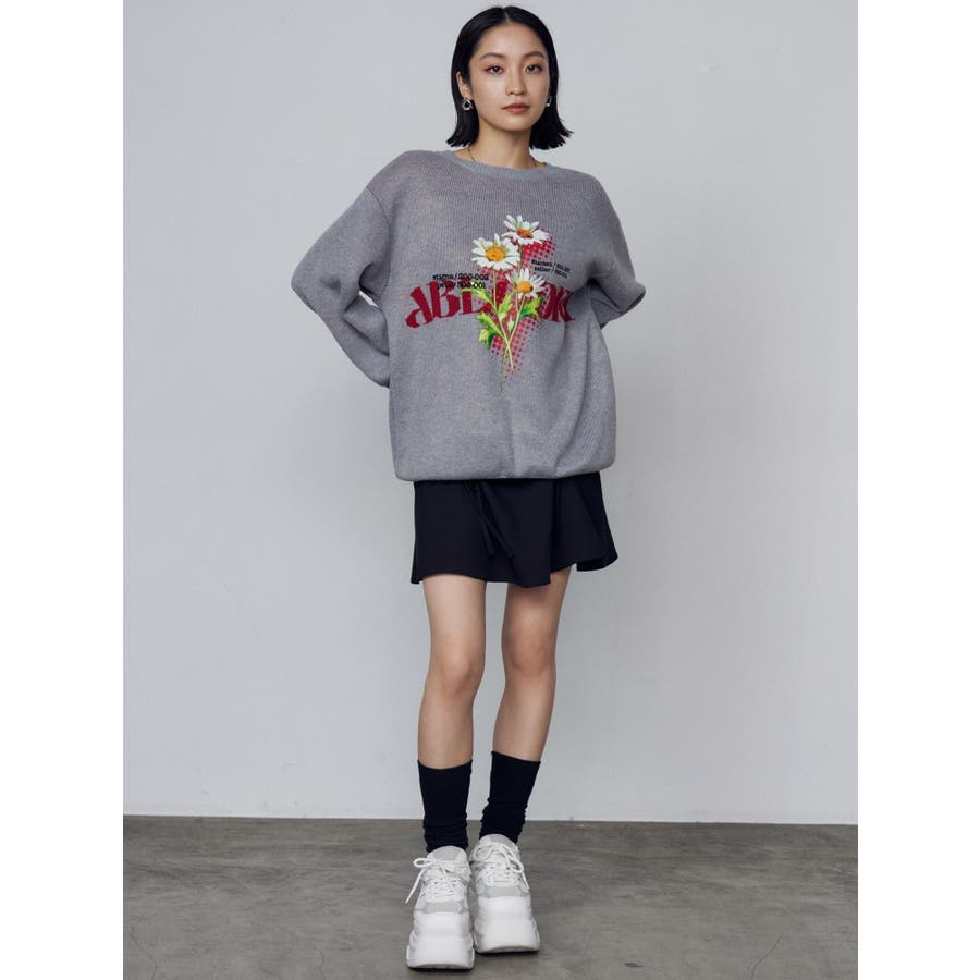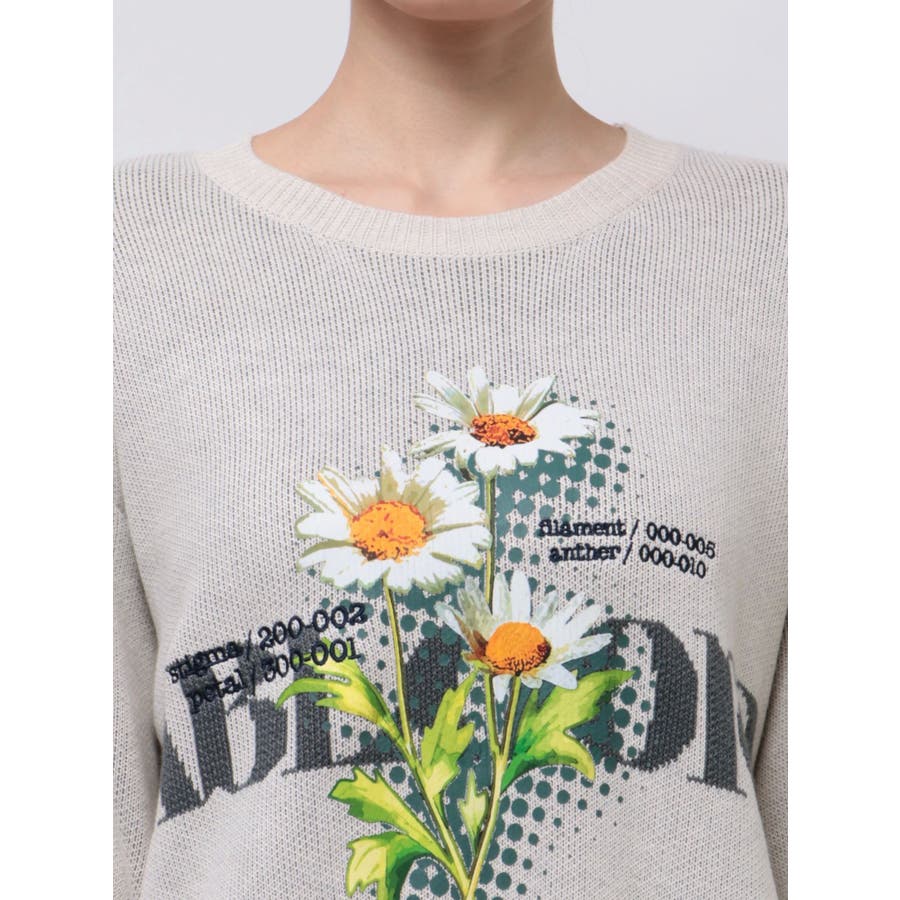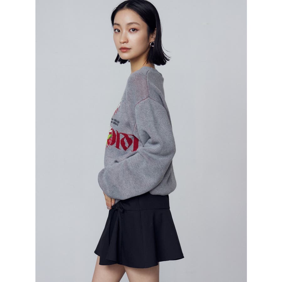 インパクト大!ルーズシルエットのニットトップス■デザインフロントに存在感のあるグラフィックをプリント。ジャガード・刺繍など細かいディテールをプラスしています。ボディはジャガード編みにする事によりしっかりとした厚みを持たせ、着た時に立体的なシルエットを出します。配色のカラーリングとグラフィックでインパクトのある一枚です。■スタイリングレイヤーベルトナイロンフレアパンツで合わせたルーズスタイリングから、ミニスカートを合わせたワンピース風の着こなしまで幅広く着用可能です。※着用画像はフラッシュの加減で実際の製品と色味等が異なる場合がございますので、生地のズームアップ画像をご確認ください。※ご利用の端末画面の設定により実際の商品と色味が異なる場合がございます。【商品特徴】透け感:なし伸縮性:なし生地の厚さ:普通サイズ感:ゆったり裏地:なしポケット:なし