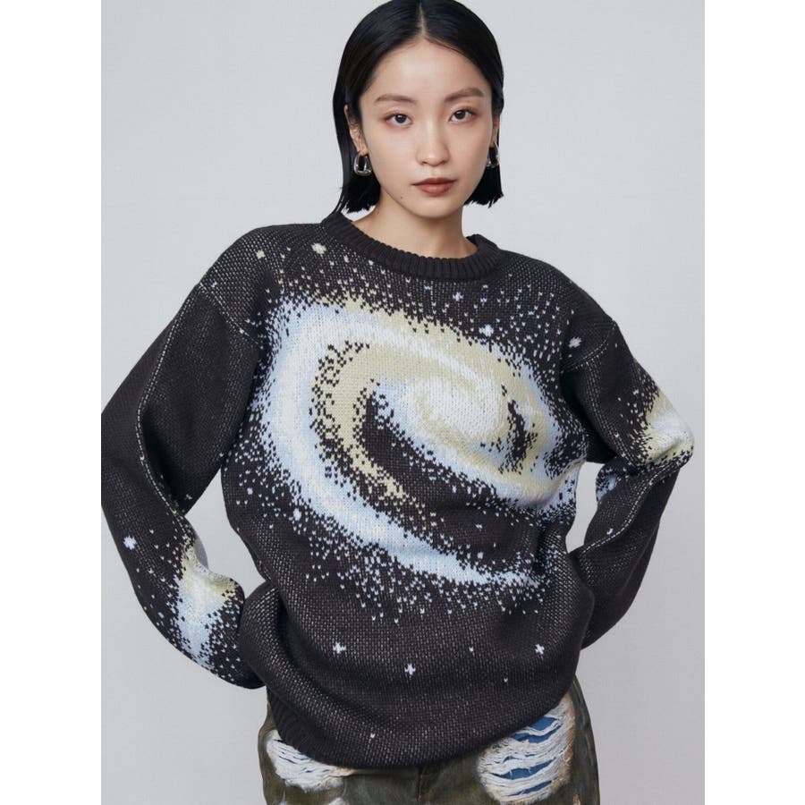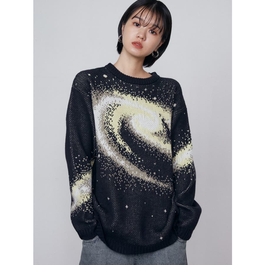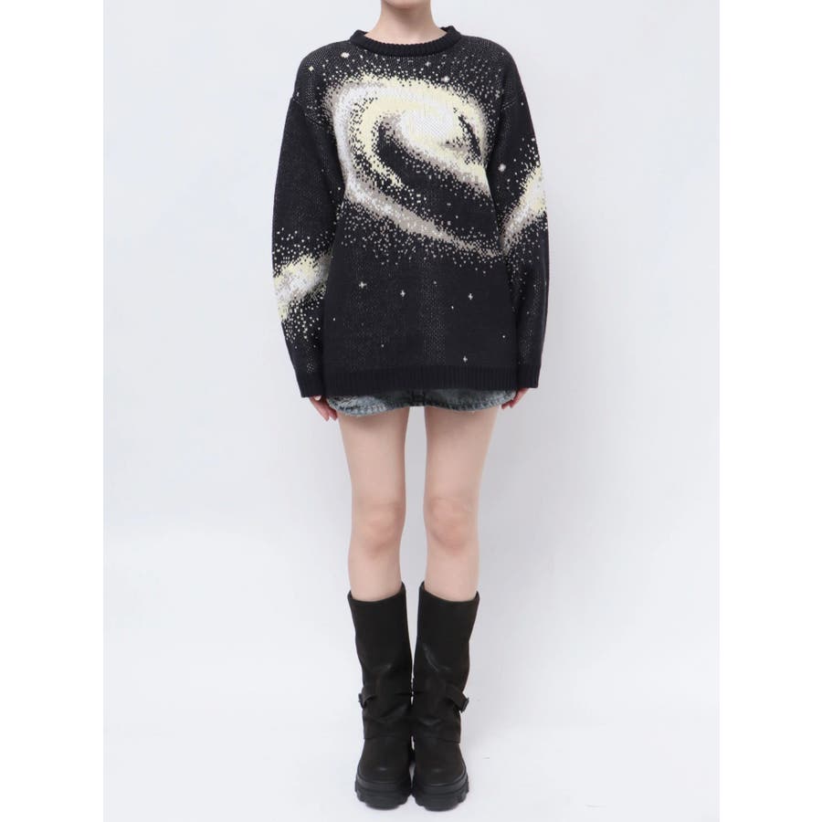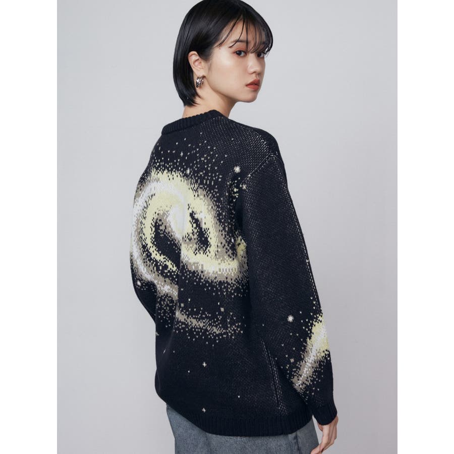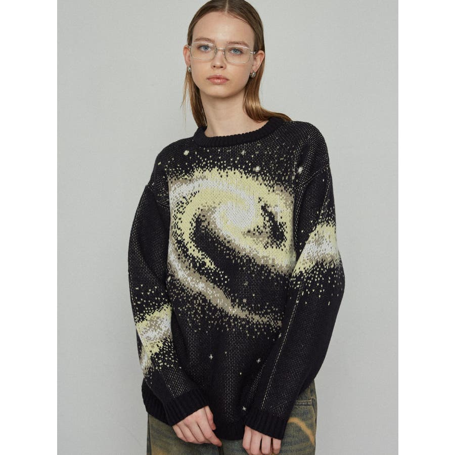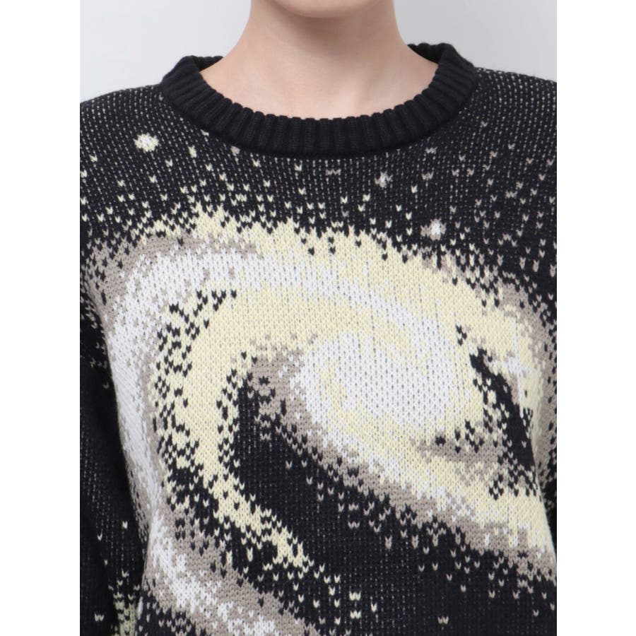 インパクトのあるスパイラル柄をジャガード編みで表現■デザインスパークルを散りばめた今季らしい模様を細かな柄まで表現し、袖や後身頃まで続きます。オーバーサイズのボディでゆったりとしたシルエットです。■スタイリング厚すぎないのでアウターのインナーにも着用して頂けます。一枚でスタイリングが決まり、トレンド感のある雰囲気が出せます。ミニスカート合わせや、デニムにラップスカートをレイヤードさせたスタイリングも今季らしくおすすめです。※着用画像はフラッシュの加減で実際の製品と色味等が異なる場合がございますので、生地のズームアップ画像をご確認ください。※ご利用の端末画面の設定により実際の商品と色味が異なる場合がございます。【商品特徴】透け感:なし伸縮性:なし生地の厚さ:普通サイズ感:ゆったり裏地:なしポケット:なし