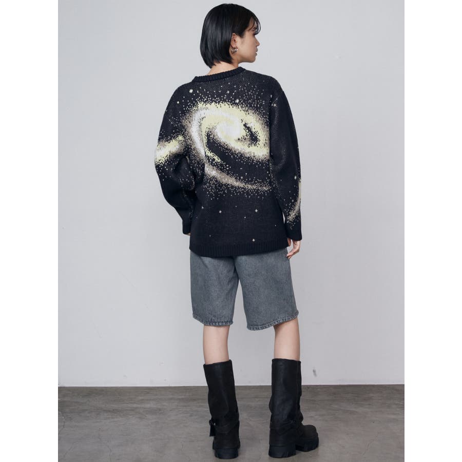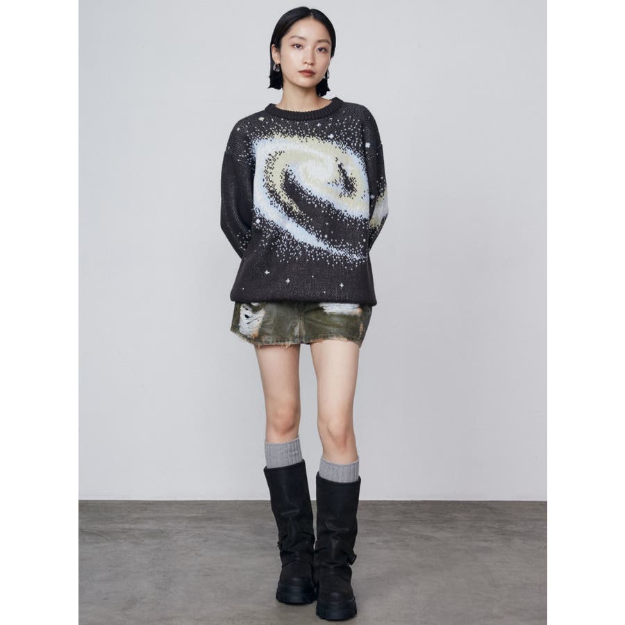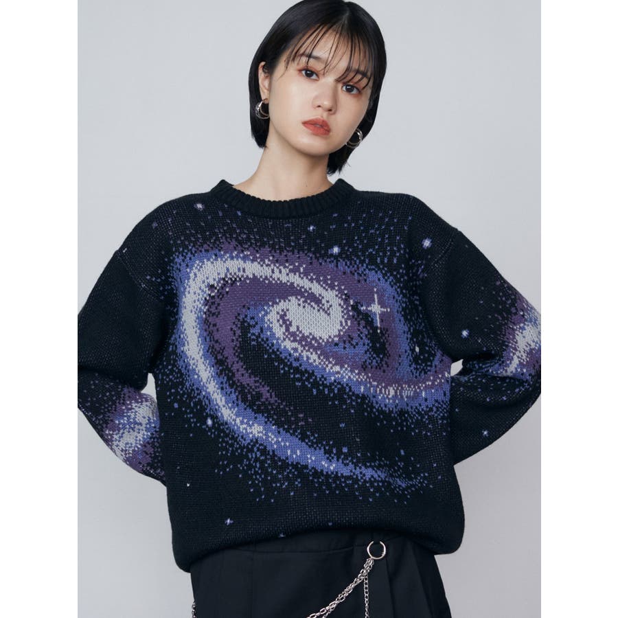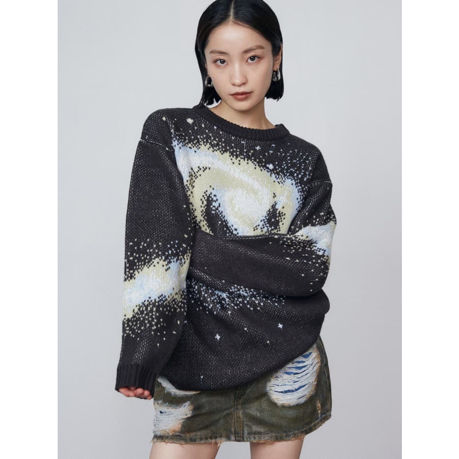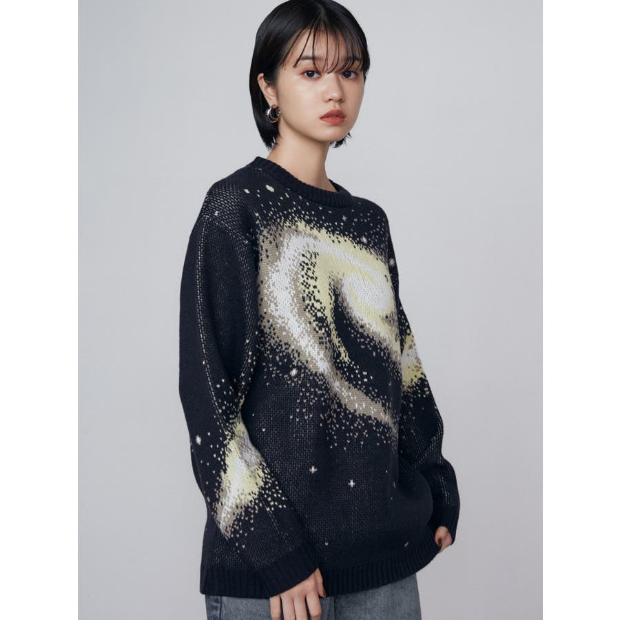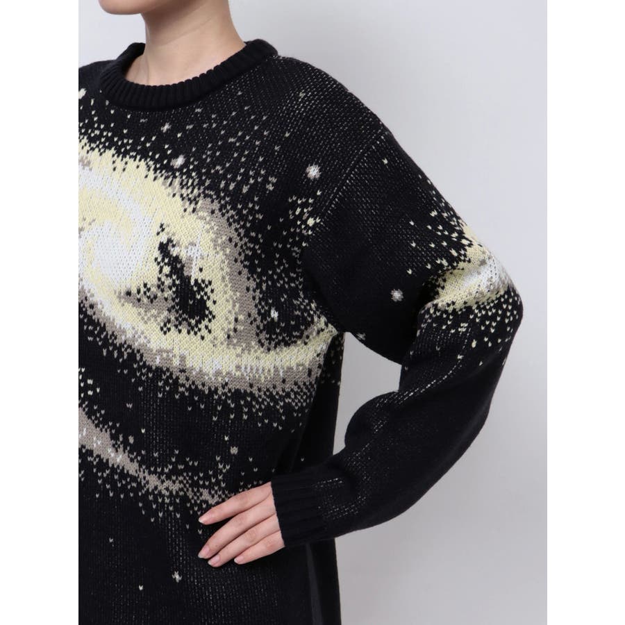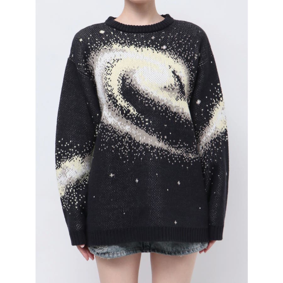 インパクトのあるスパイラル柄をジャガード編みで表現■デザインスパークルを散りばめた今季らしい模様を細かな柄まで表現し、袖や後身頃まで続きます。オーバーサイズのボディでゆったりとしたシルエットです。■スタイリング厚すぎないのでアウターのインナーにも着用して頂けます。一枚でスタイリングが決まり、トレンド感のある雰囲気が出せます。ミニスカート合わせや、デニムにラップスカートをレイヤードさせたスタイリングも今季らしくおすすめです。※着用画像はフラッシュの加減で実際の製品と色味等が異なる場合がございますので、生地のズームアップ画像をご確認ください。※ご利用の端末画面の設定により実際の商品と色味が異なる場合がございます。【商品特徴】透け感:なし伸縮性:なし生地の厚さ:普通サイズ感:ゆったり裏地:なしポケット:なし
