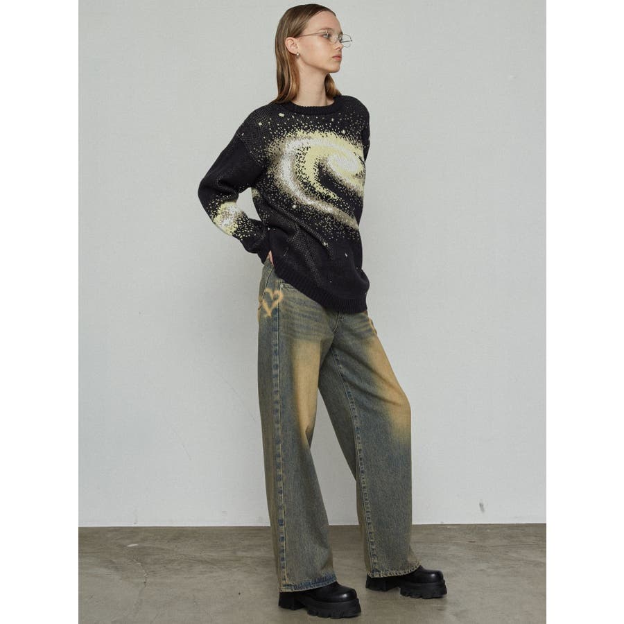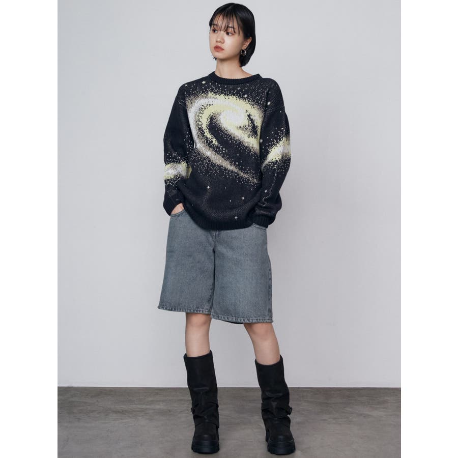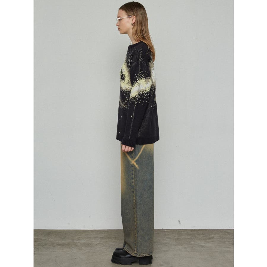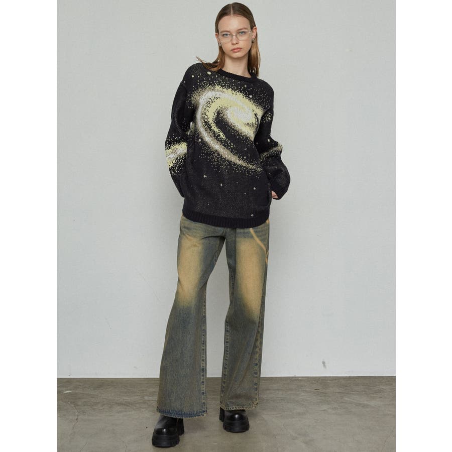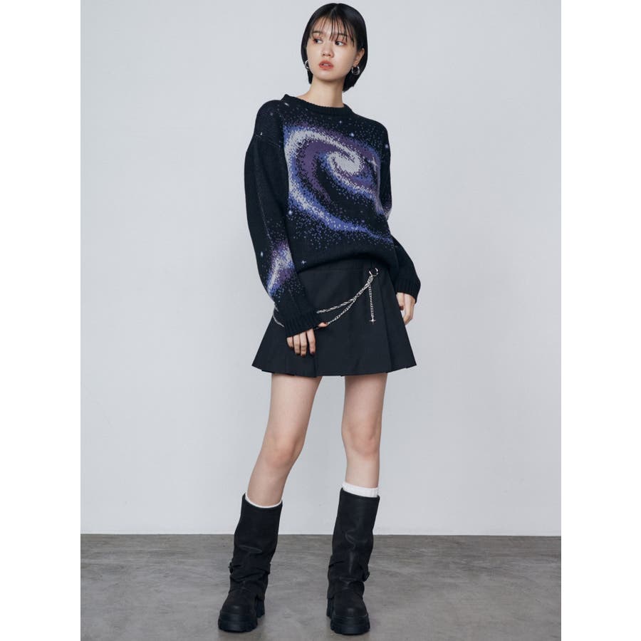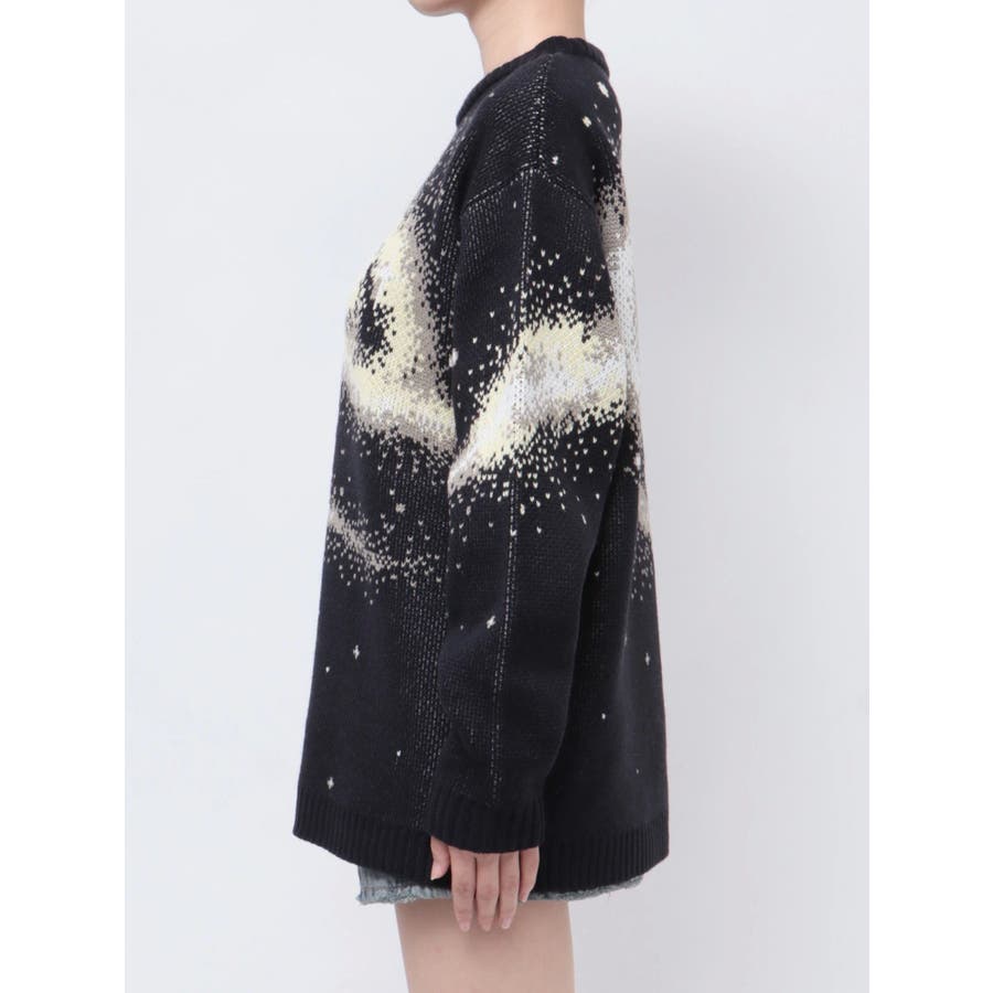 インパクトのあるスパイラル柄をジャガード編みで表現■デザインスパークルを散りばめた今季らしい模様を細かな柄まで表現し、袖や後身頃まで続きます。オーバーサイズのボディでゆったりとしたシルエットです。■スタイリング厚すぎないのでアウターのインナーにも着用して頂けます。一枚でスタイリングが決まり、トレンド感のある雰囲気が出せます。ミニスカート合わせや、デニムにラップスカートをレイヤードさせたスタイリングも今季らしくおすすめです。※着用画像はフラッシュの加減で実際の製品と色味等が異なる場合がございますので、生地のズームアップ画像をご確認ください。※ご利用の端末画面の設定により実際の商品と色味が異なる場合がございます。【商品特徴】透け感:なし伸縮性:なし生地の厚さ:普通サイズ感:ゆったり裏地:なしポケット:なし