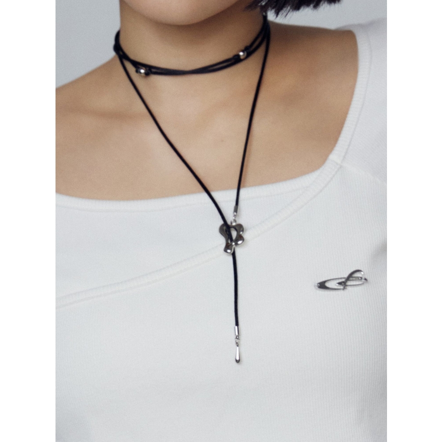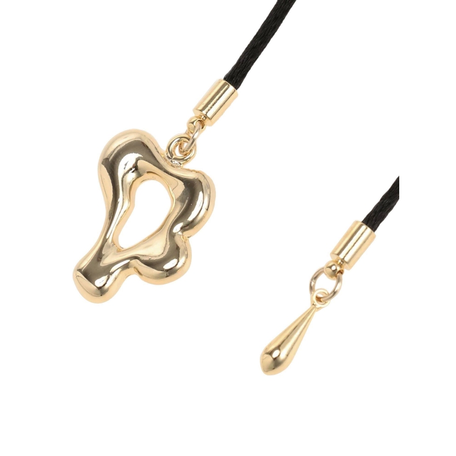 コーデのアクセントになる2WAYチョーカー■デザインつやのある丸紐を使用しています。紐の間にはメタルビーズを挟んでいるのでカジュアル過ぎずモードな雰囲気で着用していただけます。紐の先にはアメーバのようなモチーフと細長いニュアンスのパーツを付けています。アメーバモチーフの穴に細長いニュアンスパーツを通して付けていただいても、通さずにそのまま垂らして付けていただいても可愛い2WAY仕様です。春夏のさらっとした着こなしにプラスするだけで、アクセントと今季らしさが出るチョーカーです。※着用画像はフラッシュの加減で実際の製品と色味等が異なる場合がございますので、生地のズームアップ画像をご確認ください。※ご利用の端末画面の設定により実際の商品と色味が異なる場合がございます。