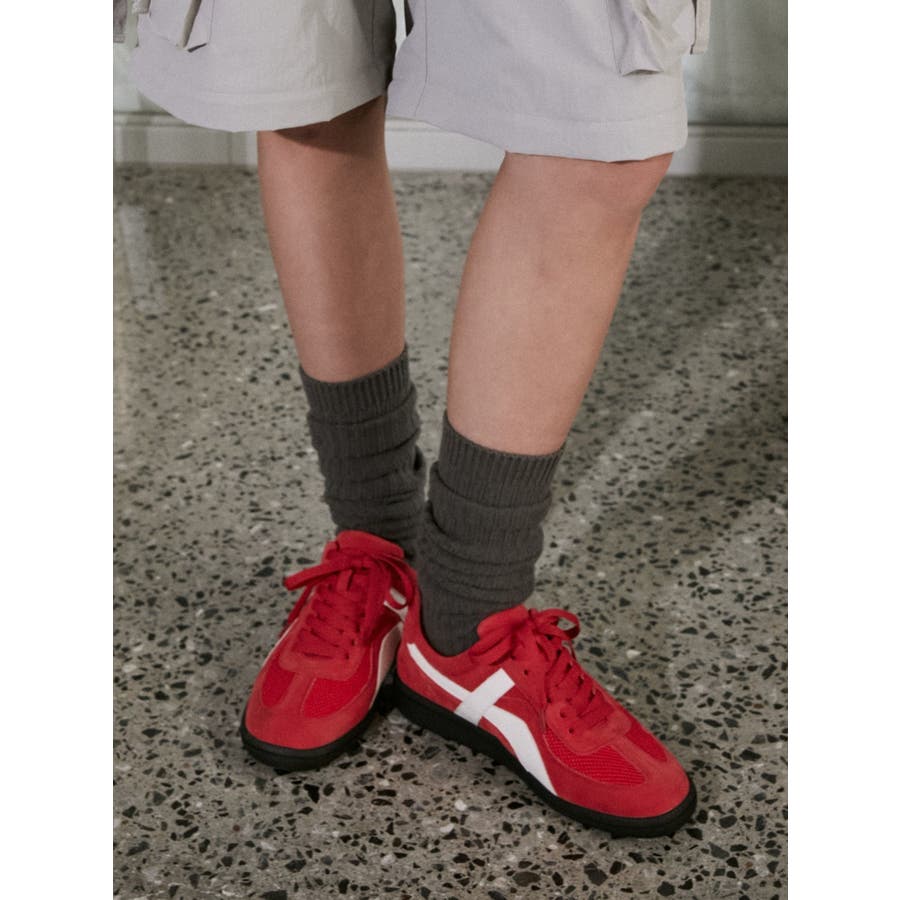 トレンドのフラットなローカットスニーカーがEMODAでも登場!■デザイン表面感のあるフェイクスエードをメインに合皮・メッシュを組み合わせたデザインにしています。サイドはカーブのライン切り替えを入れてアクセントにしています。■スタイリングラスターナイロンタックパンツのようなフルレングスのルーズパンツはもちろん、ハーフパンツにソックスを合わせるスタイリングも今季らしくおすすめです。※着用画像はフラッシュの加減で実際の製品と色味等が異なる場合がございますので、生地のズームアップ画像をご確認ください。※ご利用の端末画面の設定により実際の商品と色味が異なる場合がございます。