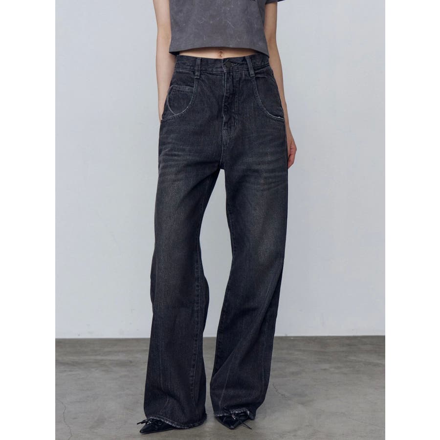 ルーズワイドハイウエストジーンズ