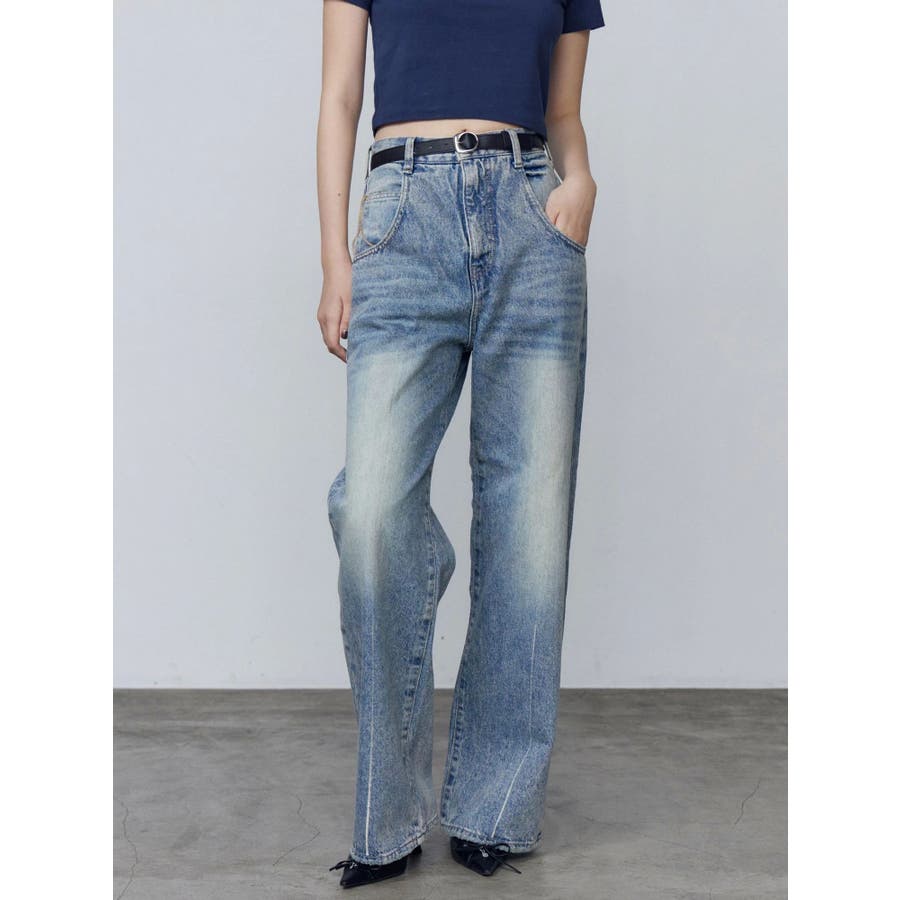 大人気のルーズワイドハイウエストジーンズ!着回ししやすい万能デニム!■デザインワイドですが、太すぎないシルエットで綺麗めからカジュアルまで様々なトップスと合わせて頂けます。アイスブルーは、ヴィンテージ感のある加工でスタイリングのポイントにも使いやすいお色味です。後ろのポケットも高めの位置にあるのでスタイルアップ効果もあります。季節問わず長く使える万能デニムです。■スタイリングオフショルダーボタントップのような女性らしいトップスから、スタッズロゴTシャツのようなカジュアルアイテムまで幅広く合わせて頂けます。ランダムヘムレースキャミワンピースをレイヤードした今季らしいスタイリングもおすすめです。■生地感素材が綿100%なのでノンストレッチなデニムですが、体のラインも響きすぎない生地感で着用すればするほど、馴染む一本です。※着用画像はフラッシュの加減で実際の製品と色味等が異なる場合がございますので、生地のズームアップ画像をご確認ください。※ご利用の端末画面の設定により実際の商品と色味が異なる場合がございます。【商品特徴】透け感:なし伸縮性:なし生地の厚さ:普通サイズ感:ゆったり裏地:なしポケット:あり(前/後)