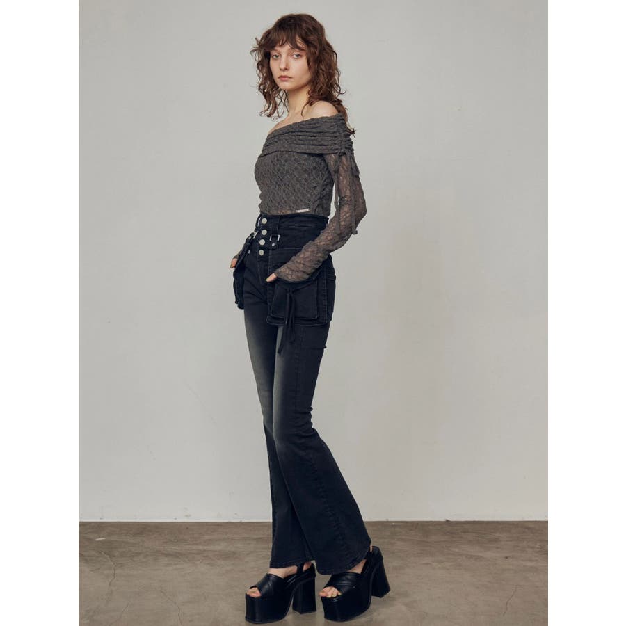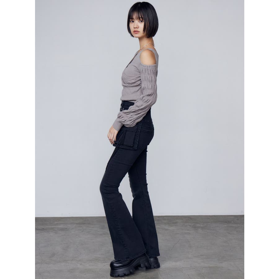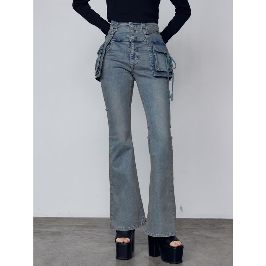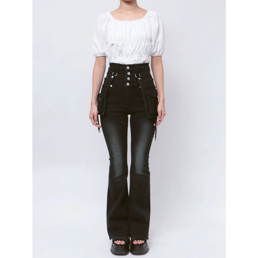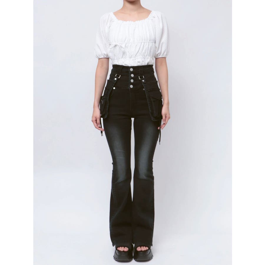 ハングリボンフレアハイウエストパギンス