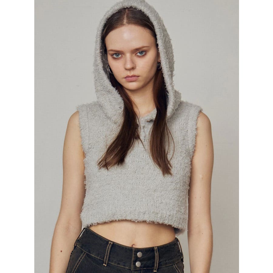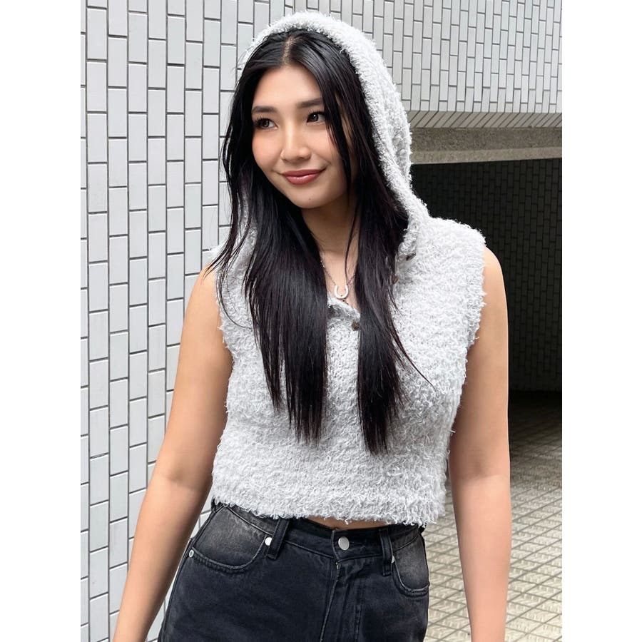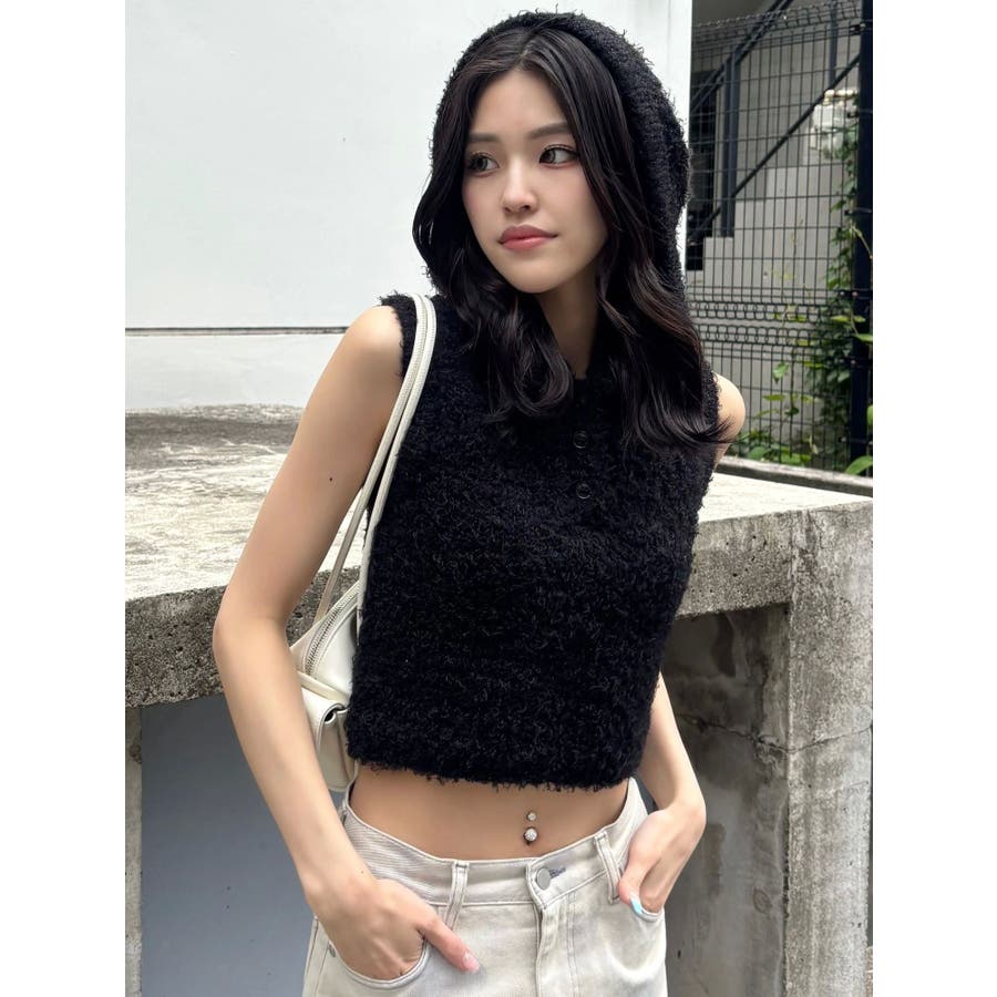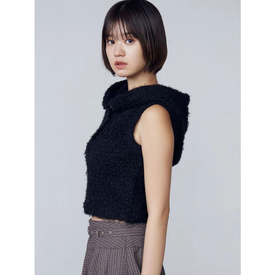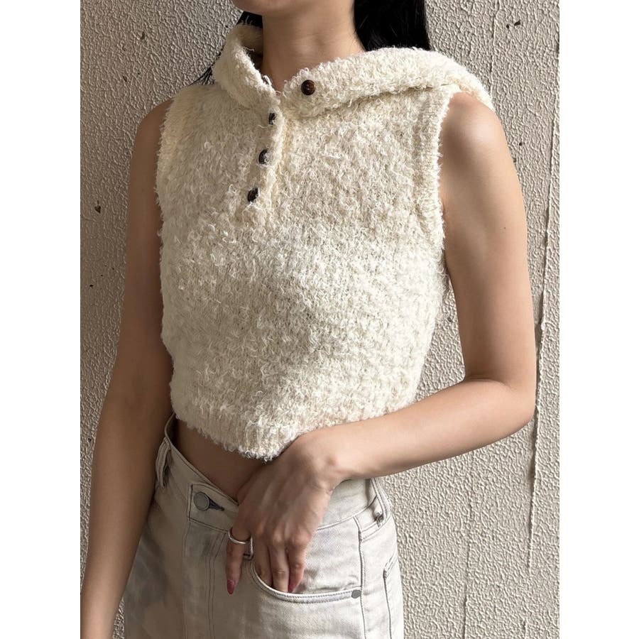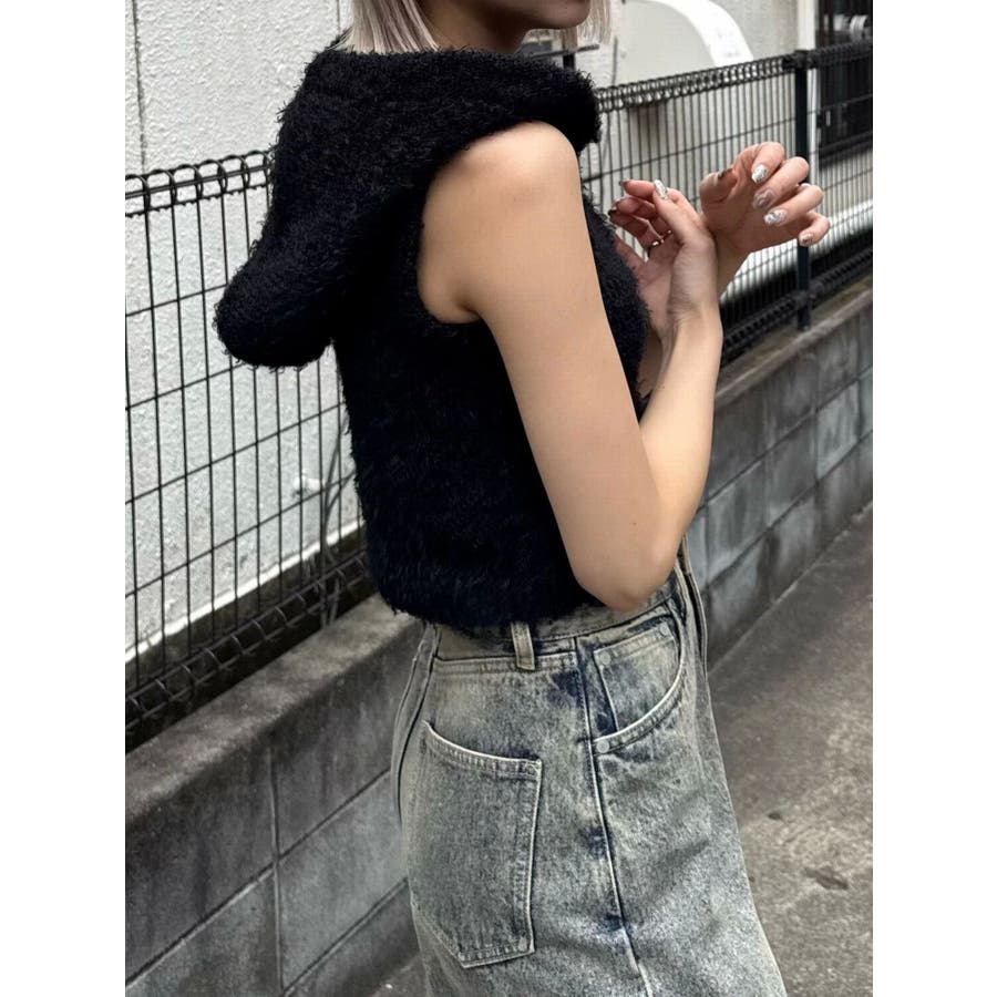 シャギーフードニットタンクトップ