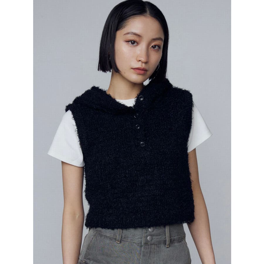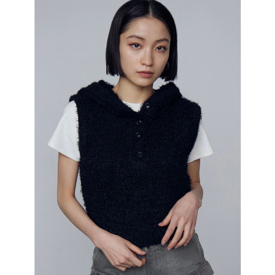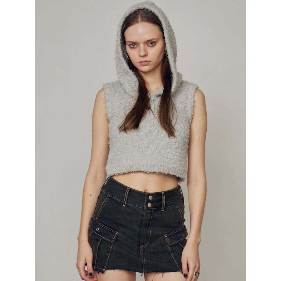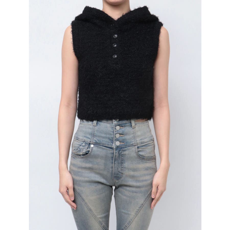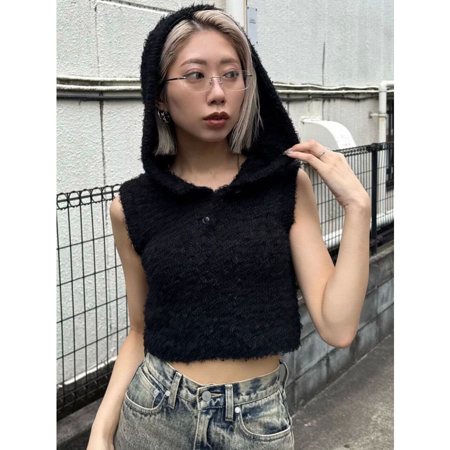 シャギーフードニットタンクトップ