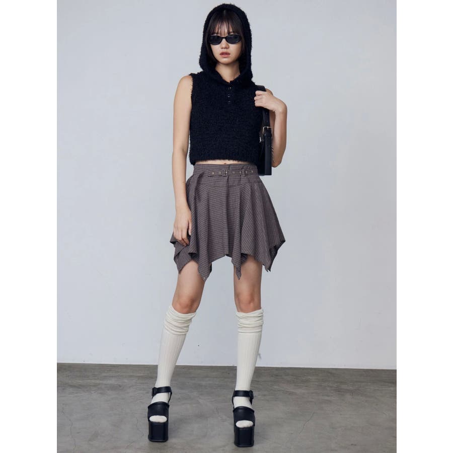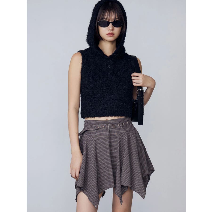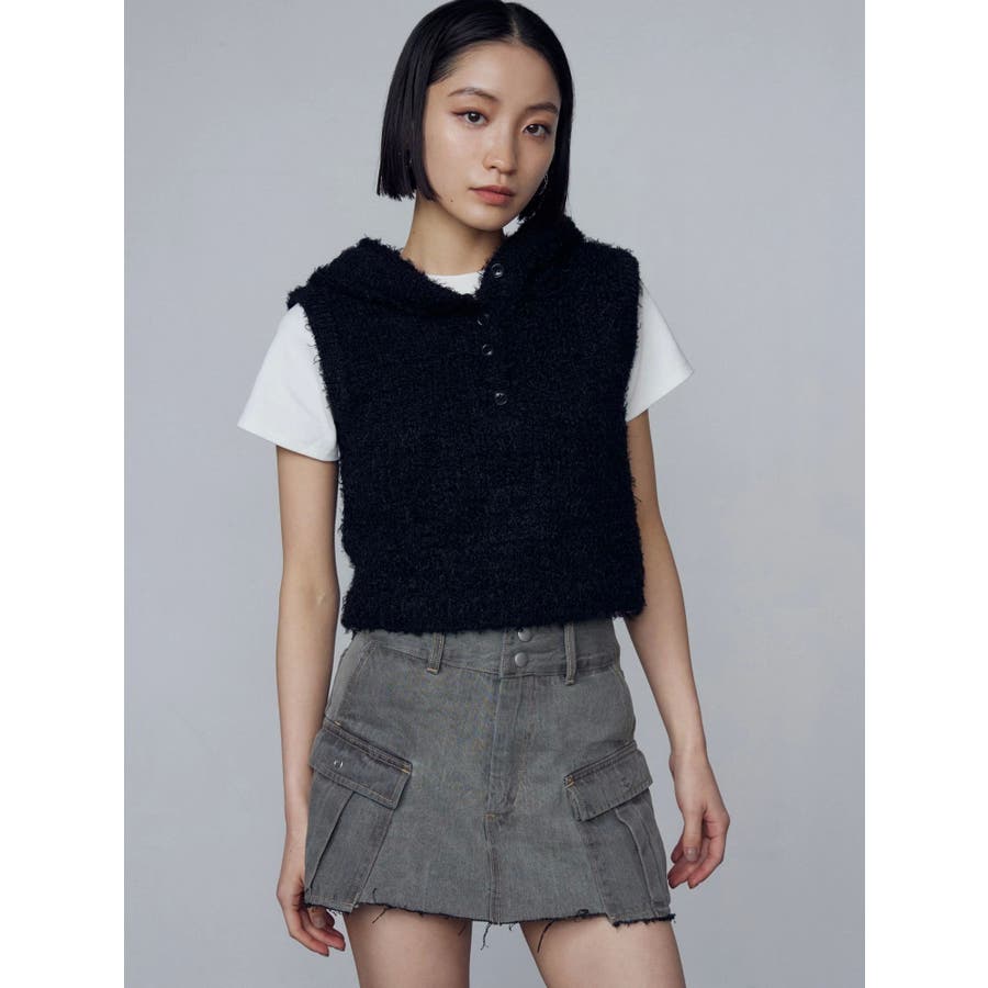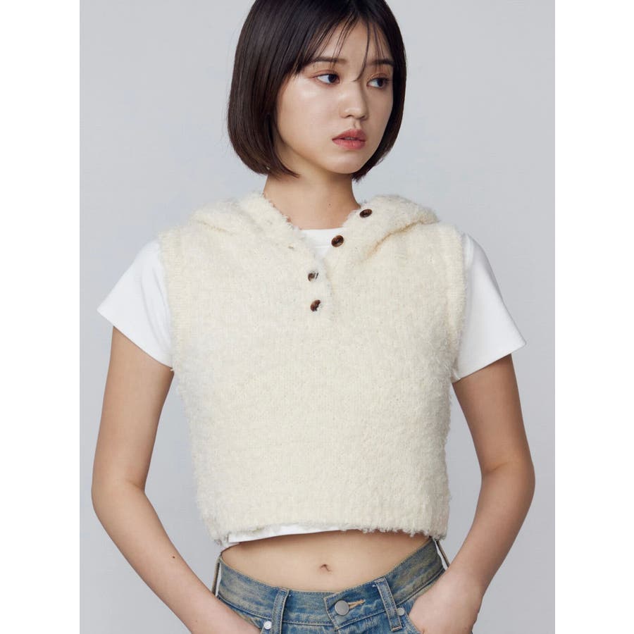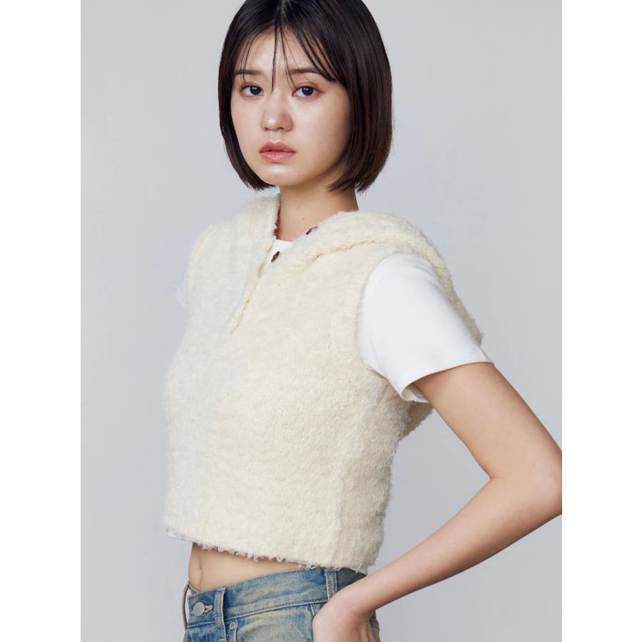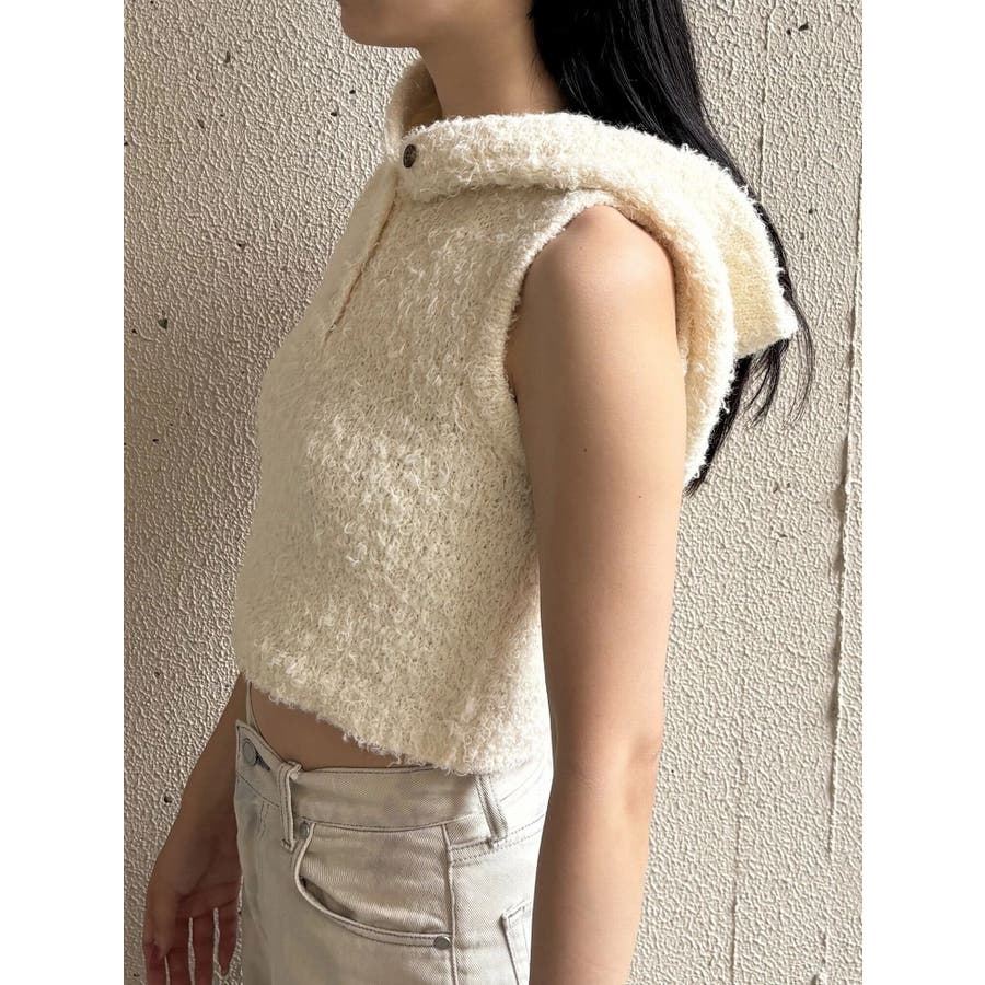 シャギーフードニットタンクトップ