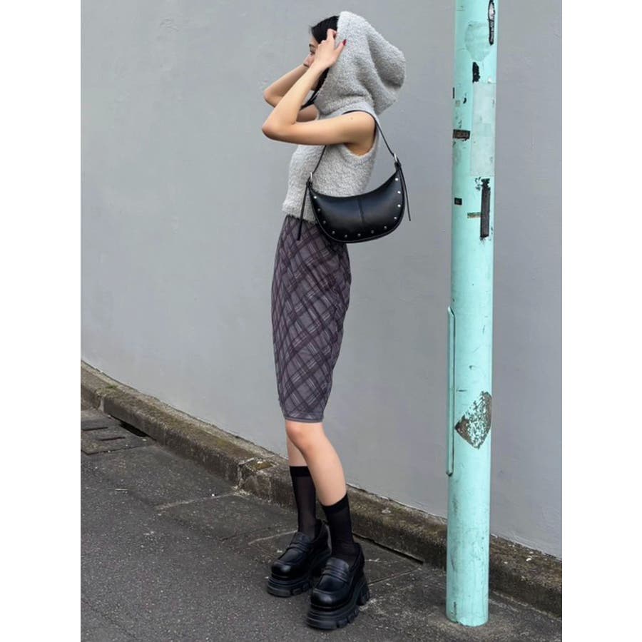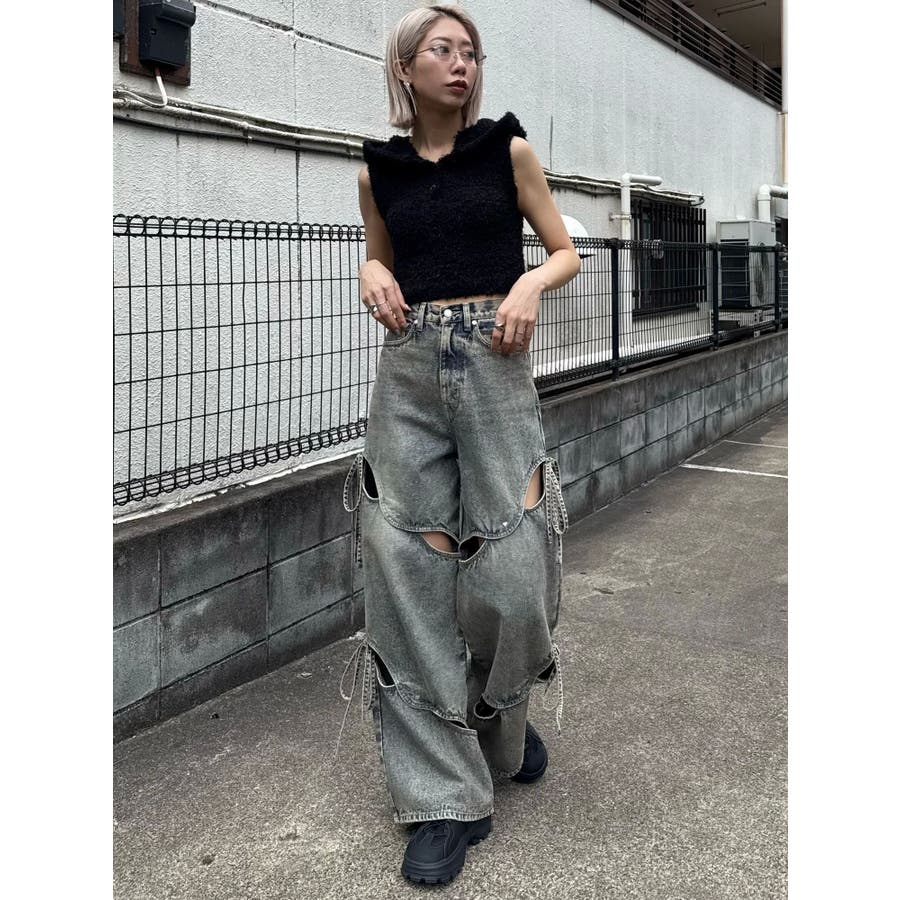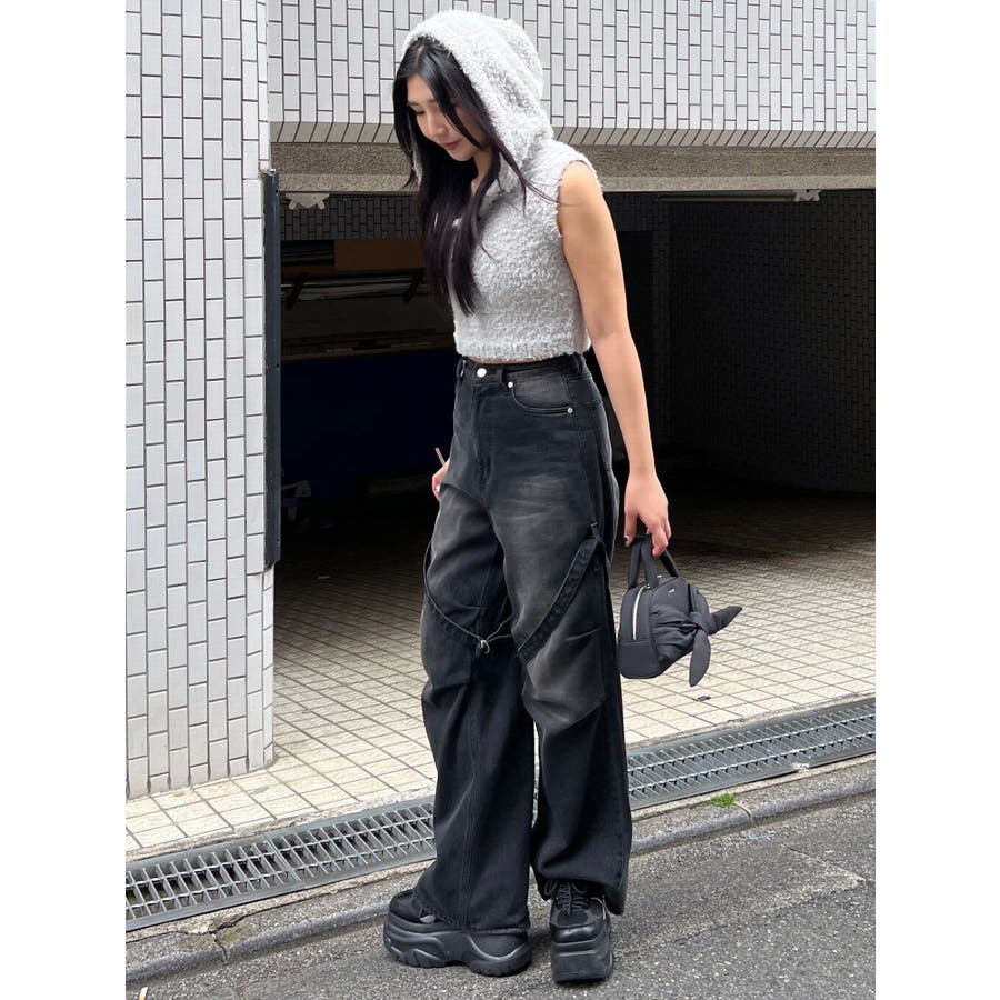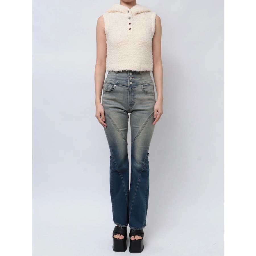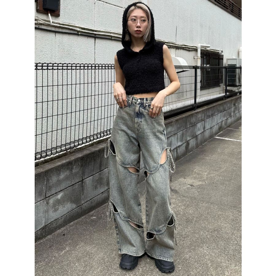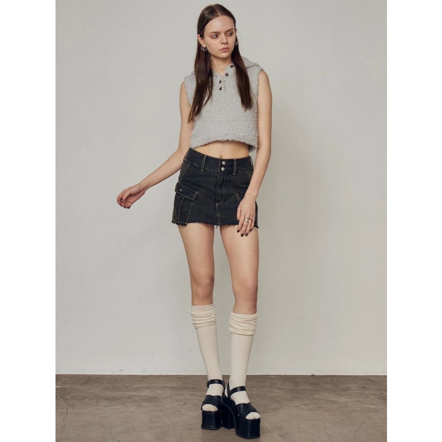 シャギーフードニットタンクトップ