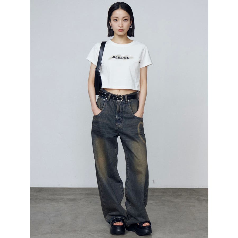 胸元のスプレーロゴがポイント!■デザインフロントのロゴデザインがポイントのコンパクトサイズTシャツです。スプレー風のグラフィックが今季らしいデザイン。中心と周りの色を微配色にしているのもポイントです。ボディの色に対して配色のプリントにしているのでパッと目を引くキャッチーさがあります。■スタイリングカットオフジャストウエストジーンズやサイドラインスリットパンツでカジュアルに着こなすのはもちろん、フィットシアースカートやランダムヘムベルトスカートを合わせたレディライクな着こなしもおすすめです。※着用画像はフラッシュの加減で実際の製品と色味等が異なる場合がございますので、生地のズームアップ画像をご確認ください。※ご利用の端末画面の設定により実際の商品と色味が異なる場合がございます。【商品特徴】透け感:なし伸縮性:あり生地の厚さ:普通サイズ感:普通裏地:なしポケット:なし
