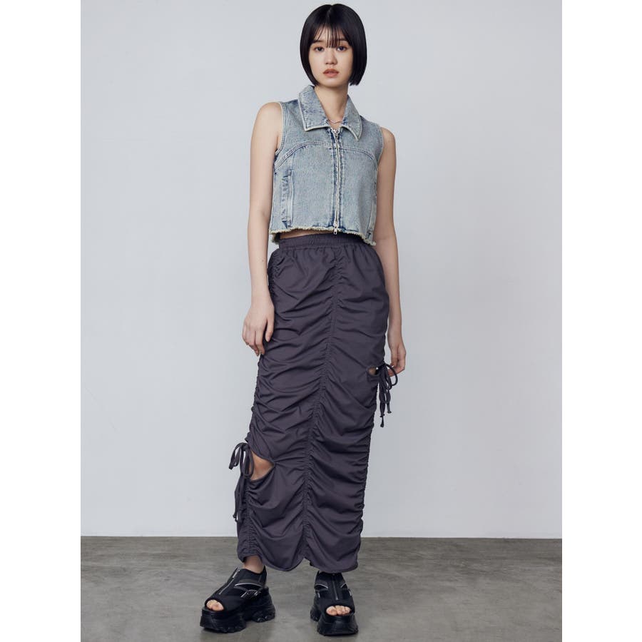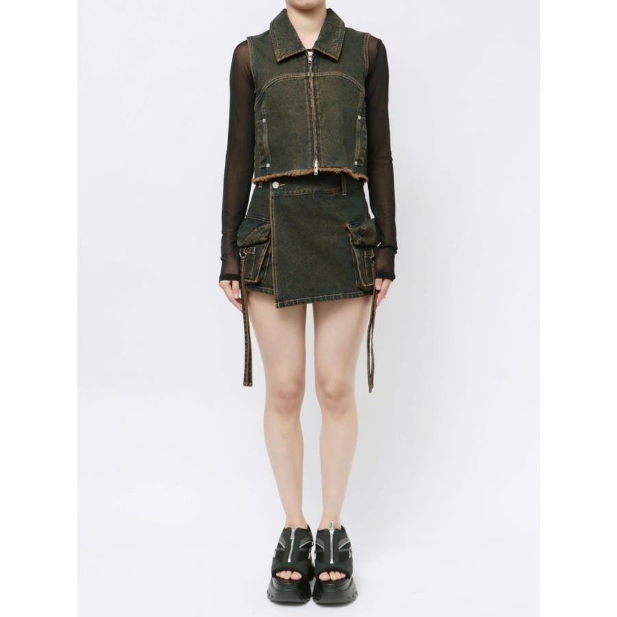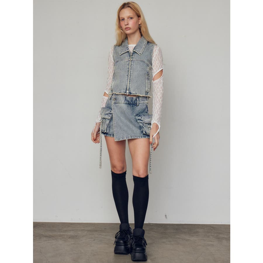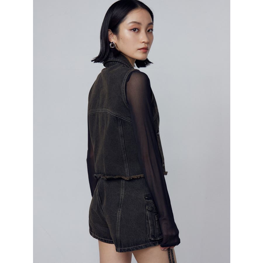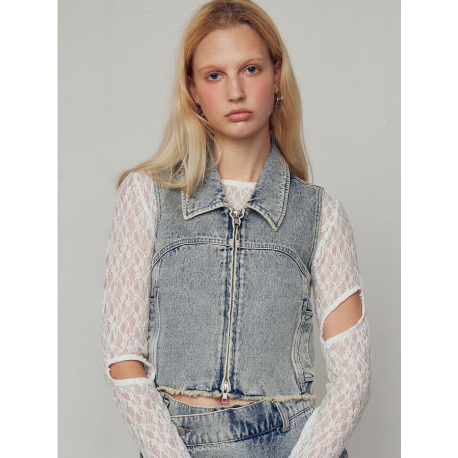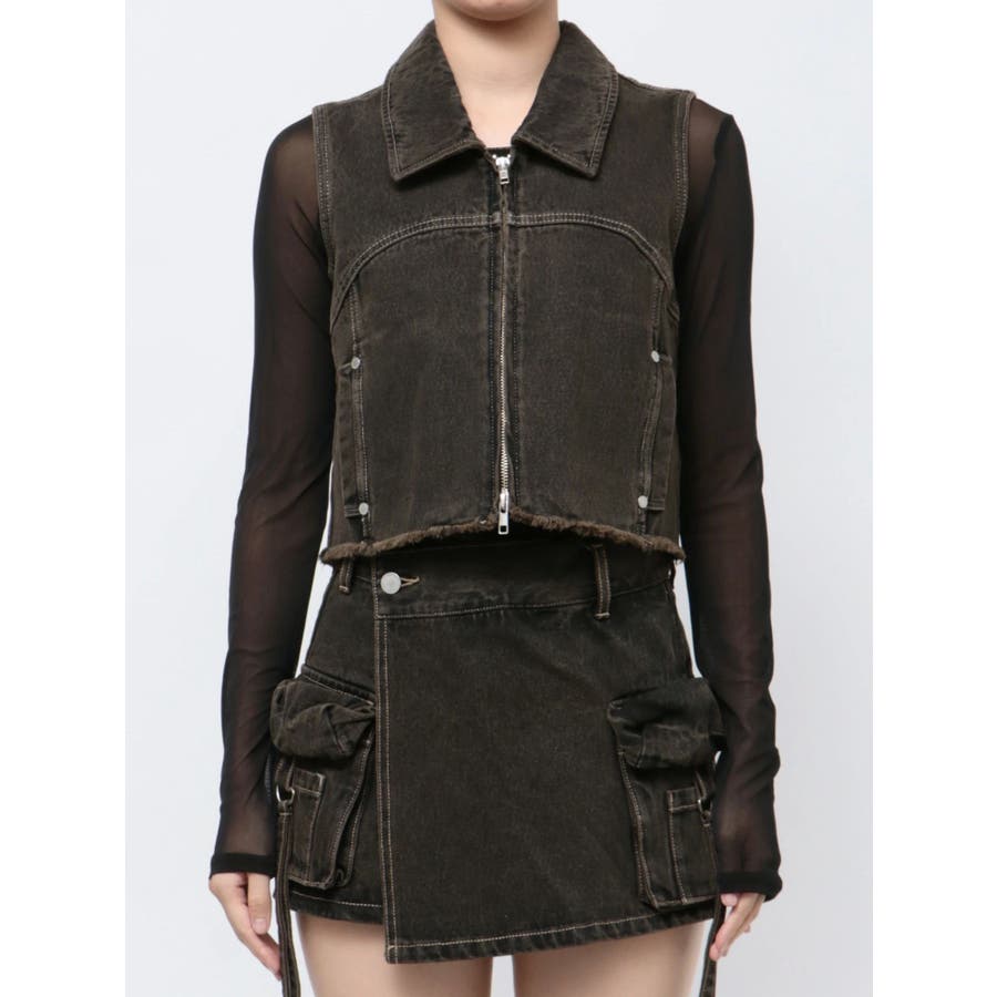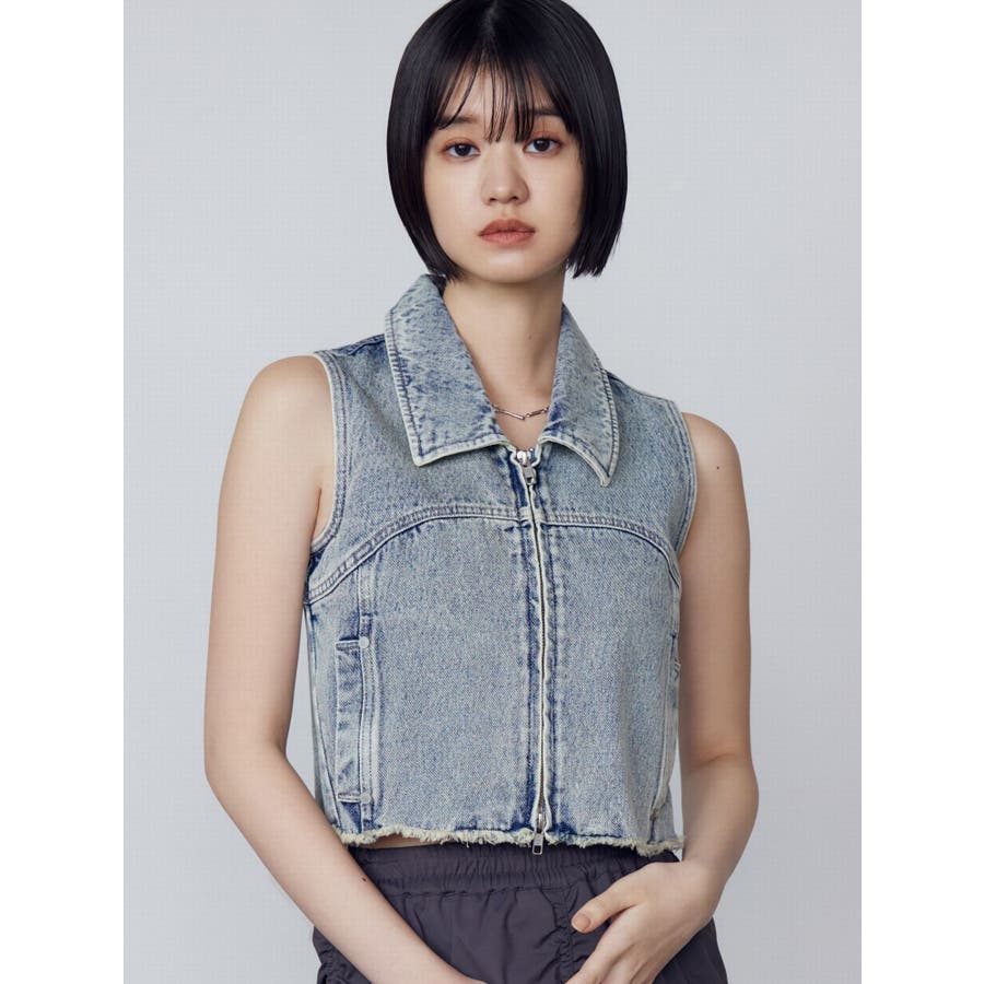 襟付きデザインのデニム素材のベスト■デザインカーブ切り替えをポイントにシンプルなデザインにしています。両サイドのポケットも切り替え上に設定することでシルエットもすっきりと見せてくれます。■スタイリング同生地シリーズのカーゴラップショートパンツとのセットアップがイチオシ!逆開ファスナーで裾を少し開けて着用して頂くのがおすすめです。※着用画像はフラッシュの加減で実際の製品と色味等が異なる場合がございますので、生地のズームアップ画像をご確認ください。※ご利用の端末画面の設定により実際の商品と色味が異なる場合がございます。【商品特徴】透け感:なし伸縮性:なし生地の厚さ:普通サイズ感:普通裏地:なしポケット:あり