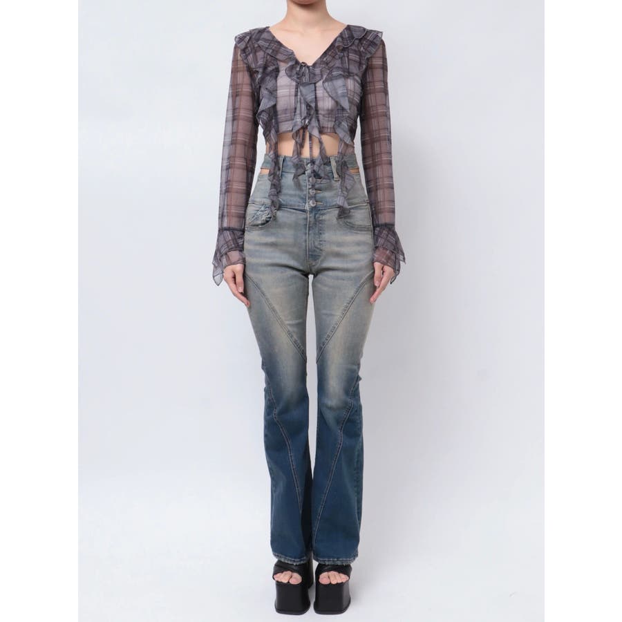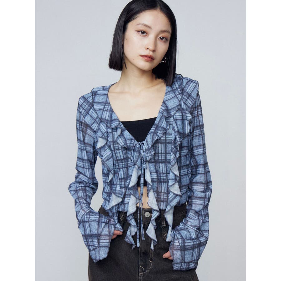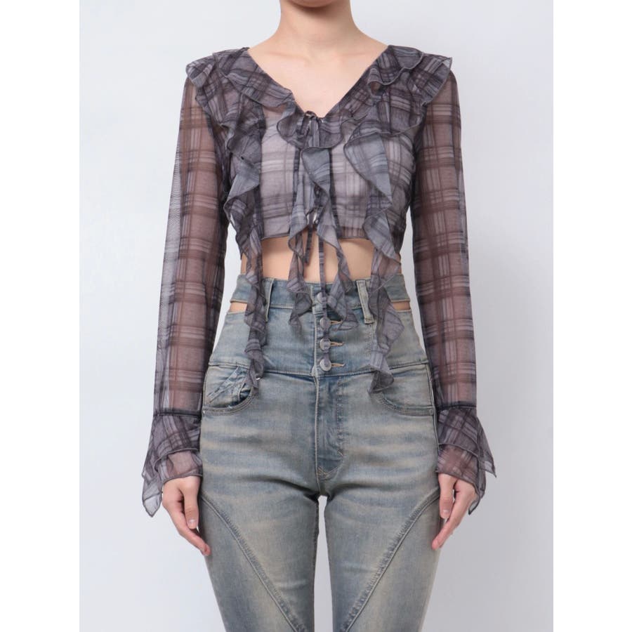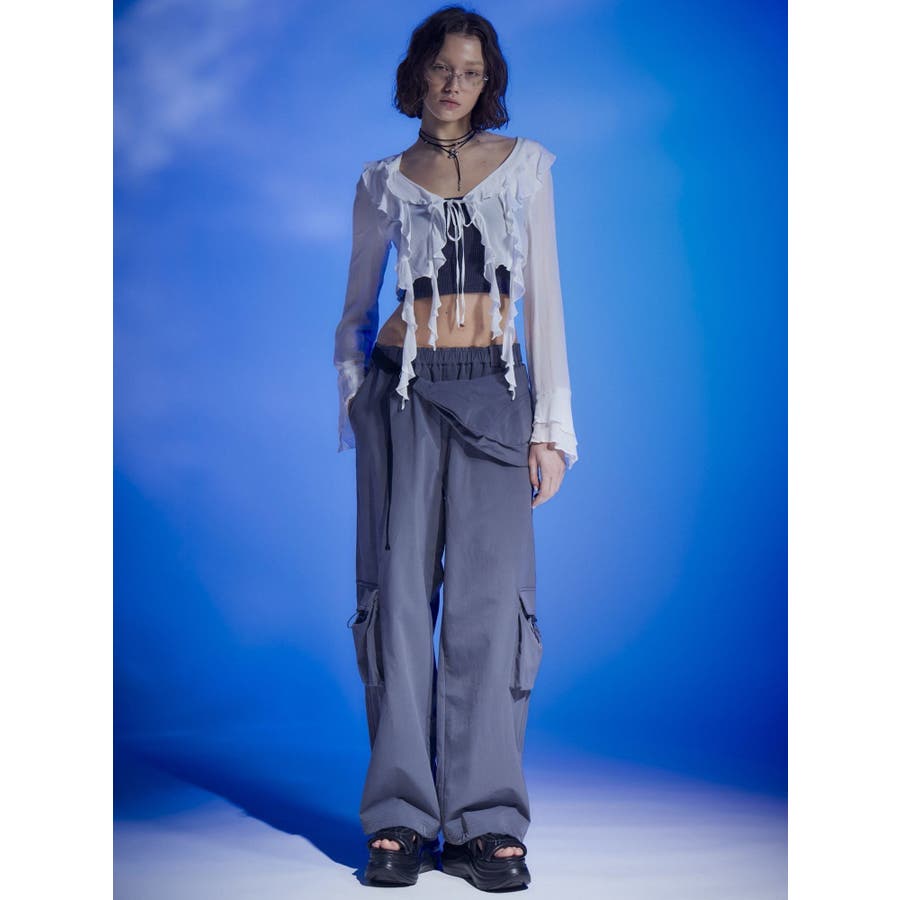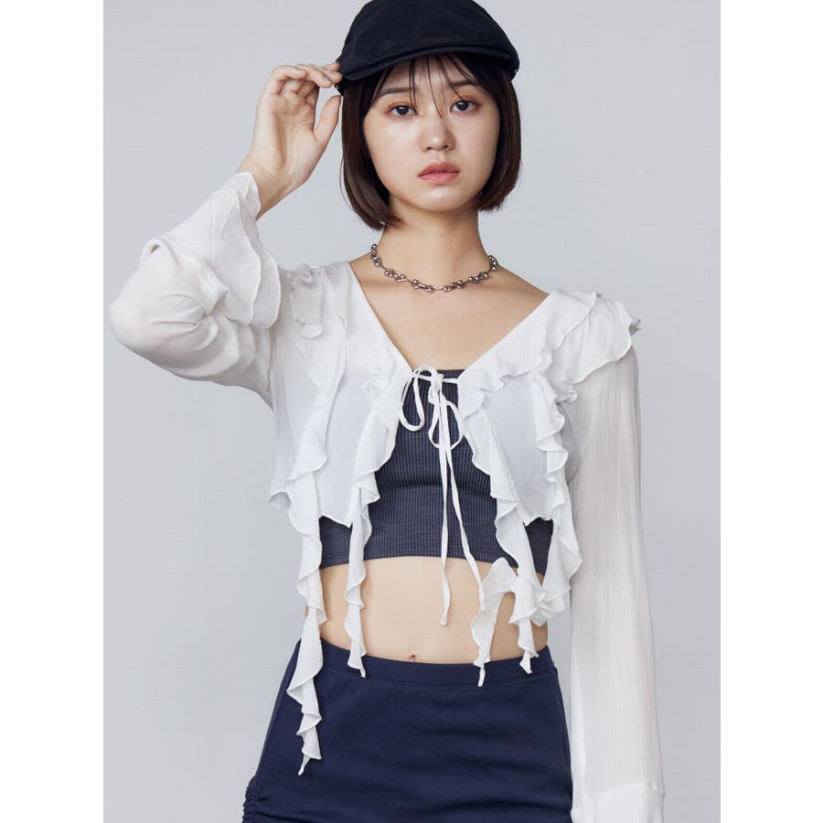ラッフルハングクロップドブラウス