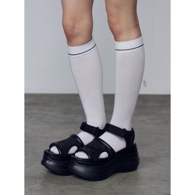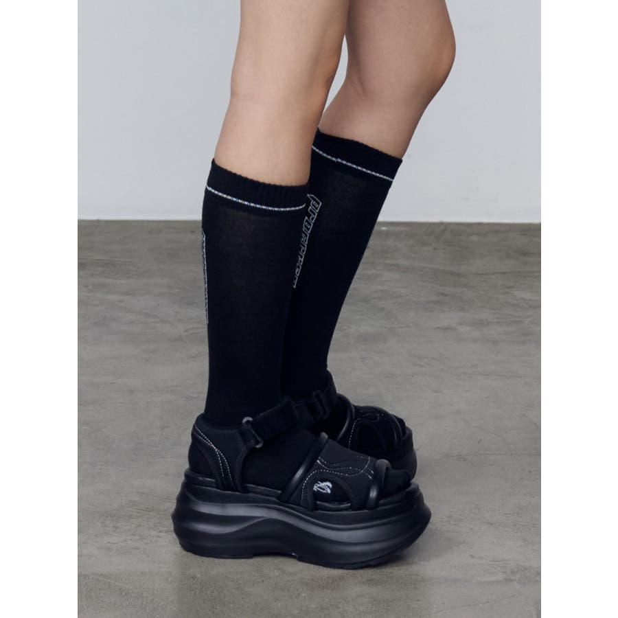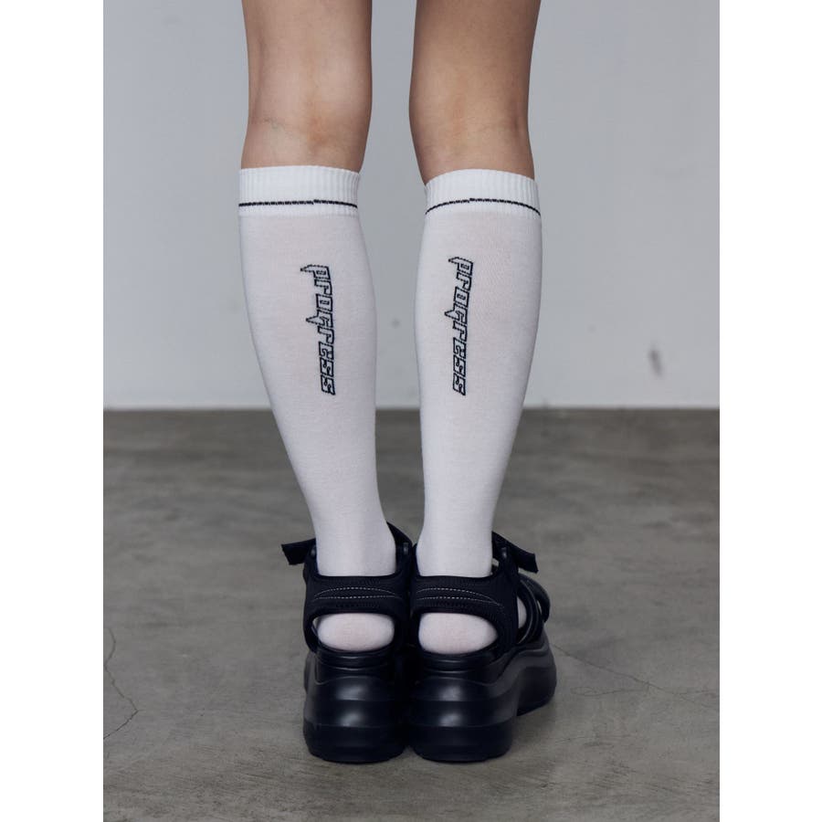 スポーティなデザインのハイソックス■デザイン履き口のラインや後ろ中心のロゴのスポーティな雰囲気が今季らしいアイテムです。足の甲の外側にもロゴを入れており、アートラインバルキーサンダルのホール開き部分から少し見えるように履いていただくように設計しています。スタイリングのポイントに1つは持っておきたいアイテムです。※着用画像はフラッシュの加減で実際の製品と色味等が異なる場合がございます。詳細画像をご参照ください。※ご利用の端末画面の設定により実際の商品と色味が異なる場合がございます。