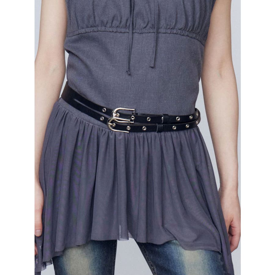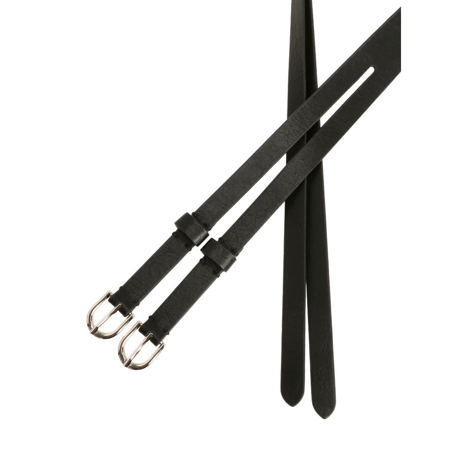 トレンド感たっぷりのウエストベルト!■デザイン存在感のあるダブルバックルが目を引く、トレンド感のあるウエストベルトです。艶のあるブラックレザー調素材に、シルバーカラーのバックルとハトメ装飾がエッジを効かせたデザイン。細身のシルエットなので、ワンピースやチュニック、ビッグシャツのウエストマークにぴったり。スタイルアップ効果も抜群で、コーディネートのアクセントとして大活躍します。 ※着用画像はフラッシュの加減で実際の製品と色味等が異なる場合がございますので、生地のズームアップ画像をご確認ください。※ご利用の端末画面の設定により実際の商品と色味が異なる場合がございます。