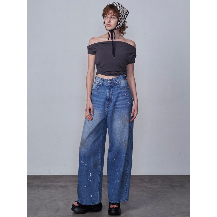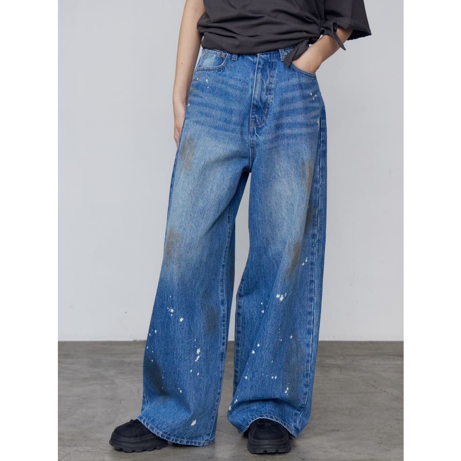 古着のようなこなれ感のあるルーズジーンズ■デザインヴィンテージ風の加工やペンキを飛ばしたようなデザインがポイントのルーズジーンズ。股上深めのワイドシルエットなので、穿くと脚が長く見える一本。■スタイリング春夏のコンパクトなサイズ感のトップスに合わせやすく、定番のショート丈のトップスや無地トップスとの合わせでもひとくせ違う雰囲気が出せるスタイリングが叶うルーズジーンズ。■素材綿100%のデニム生地使用になります。穿くたびに馴染んで風合いが出てきます。※着用画像はフラッシュの加減で実際の製品と色味等が異なる場合がございますので、生地のズームアップ画像をご確認ください。 ※ご利用の端末画面の設定により実際の商品と色味が異なる場合がございます。【商品特徴】透け感:なし伸縮性:なし生地の厚さ:普通サイズ感:ゆったり裏地:なしポケット:あり(前/後)