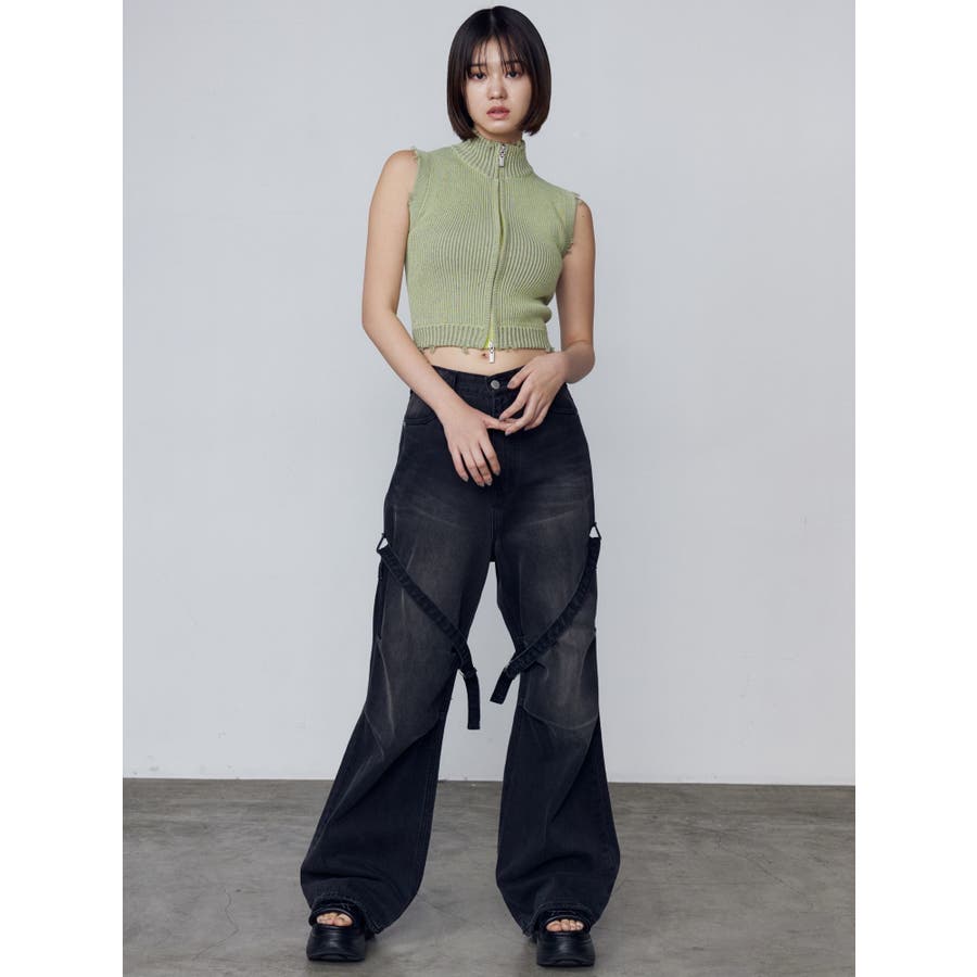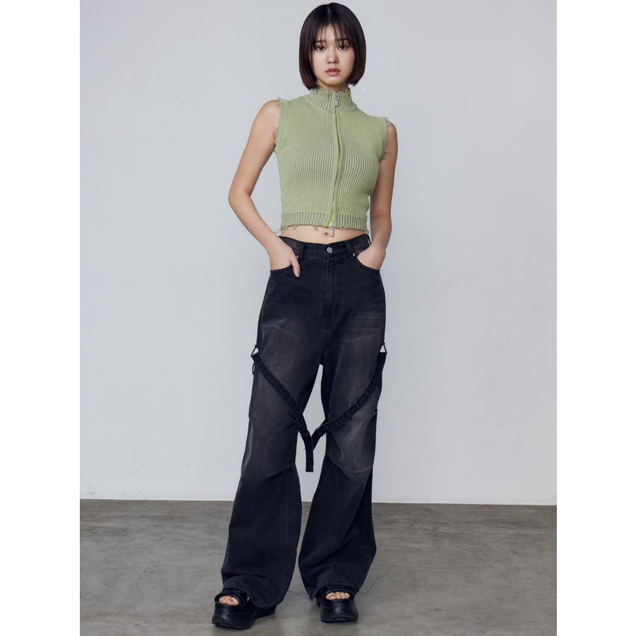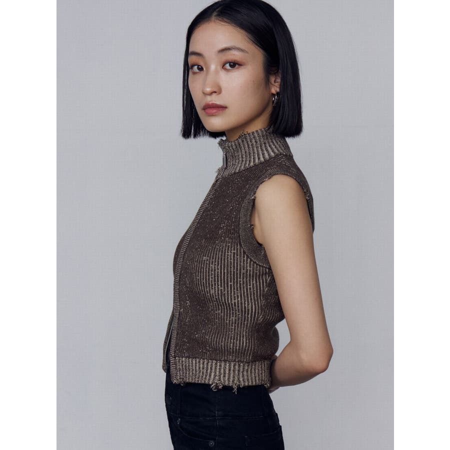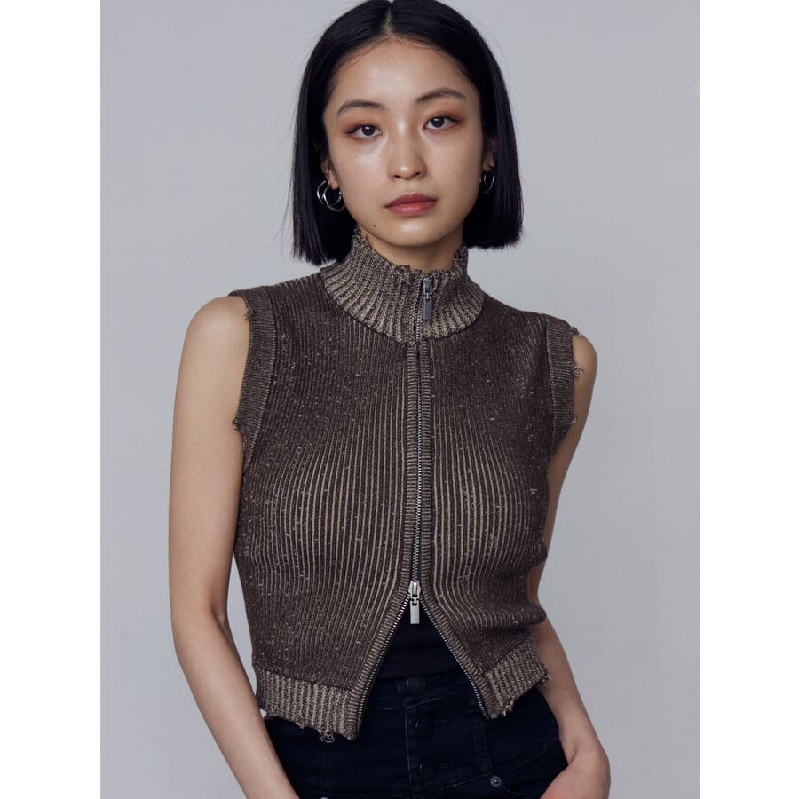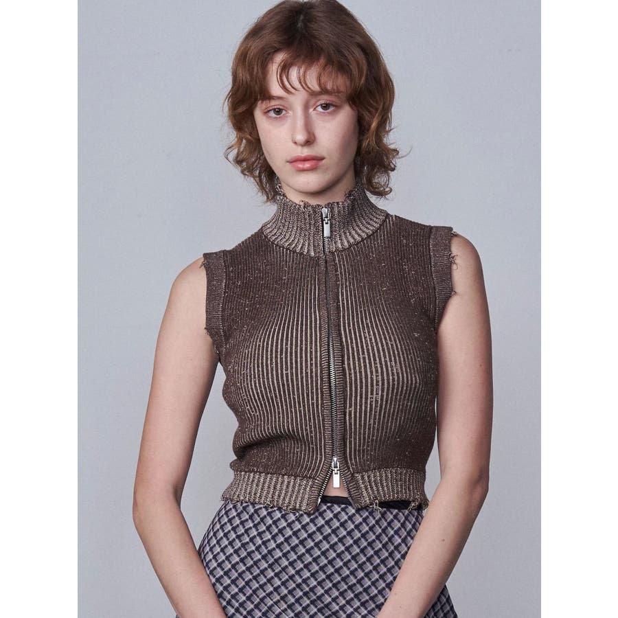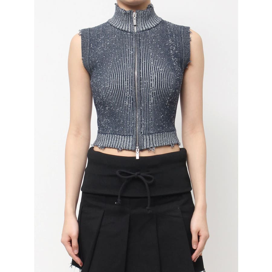 プレーティングクラッシュリブニットタンクトップ