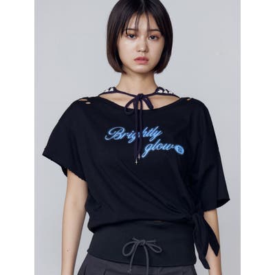 ゆったりとしたシルエットとデザインが特徴のプリントTシャツ■デザイン落ち感のある生地を使い、オーバーサイズですがどこか女性らしさを感じる1枚。広めのネックは、右肩を落としてワンショルダーで着用するのがおすすめ。裾は片脇に長めのスリットを入れ結ぶデザインなので、ボトムに合わせて着丈を調整可能です。フロントロゴは筆記体でトレンド感のあるデザイン。ネックや袖口には加工を入れヴィンテージライクな雰囲気をプラス。細部のディテールにまでこだわったアイテムです。■スタイリング女性らしくリブワイドプリーツスカートを合わせたスタイリングから、サイドラインスリットパンツを合わせたカジュアルなスタイリングまで、幅広いスタイリングに合わせることが可能です。※着用画像はフラッシュの加減で実際の製品と色味等が異なる場合がございますので、生地のズームアップ画像をご確認ください。※ご利用の端末画面の設定により実際の商品と色味が異なる場合がございます。【商品特徴】透け感:なし伸縮性:なし生地の厚さ:普通サイズ感:ゆったり裏地:なしポケット:なし