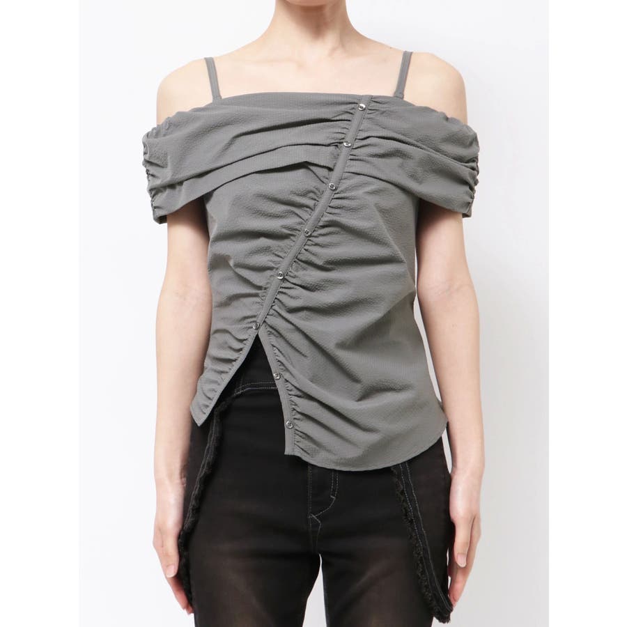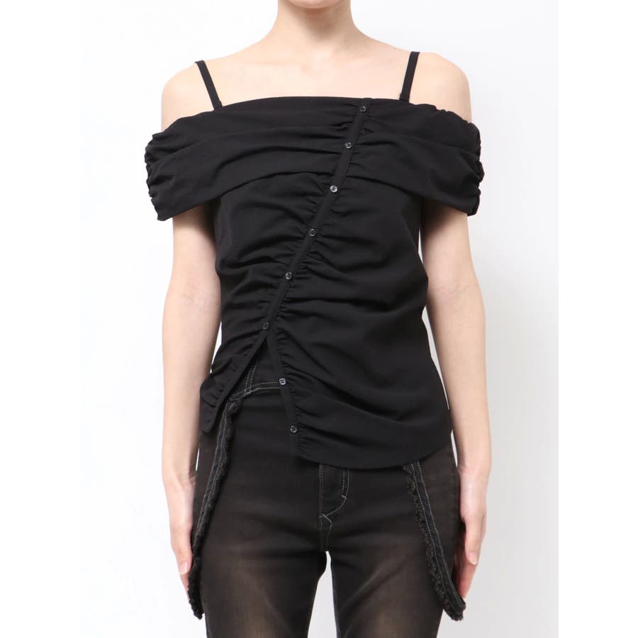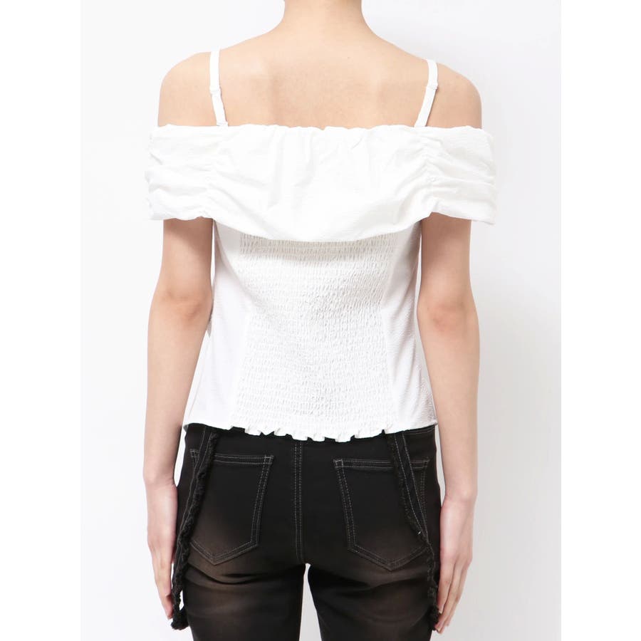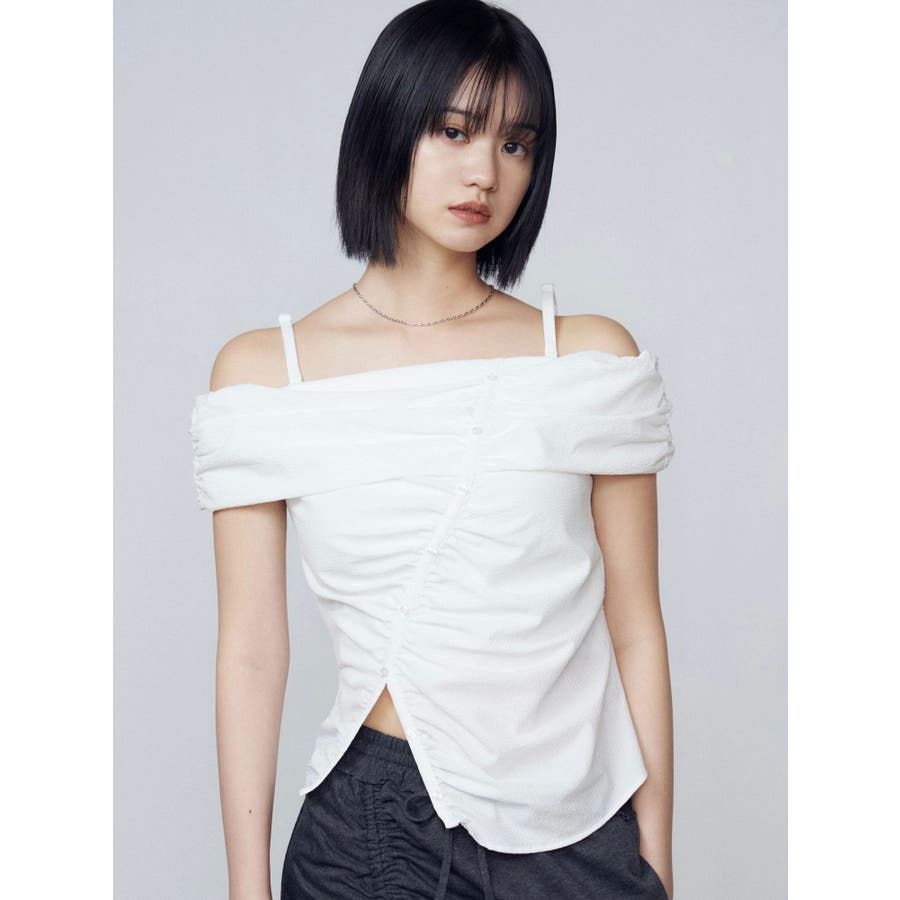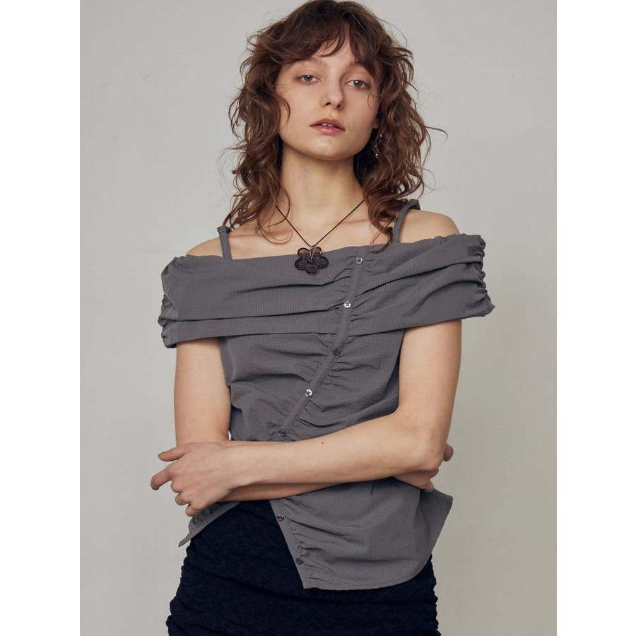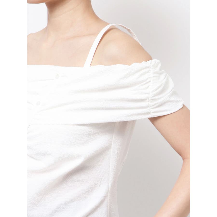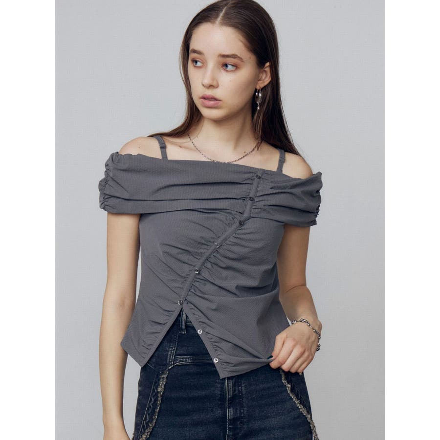 オフショルダーボタントップ