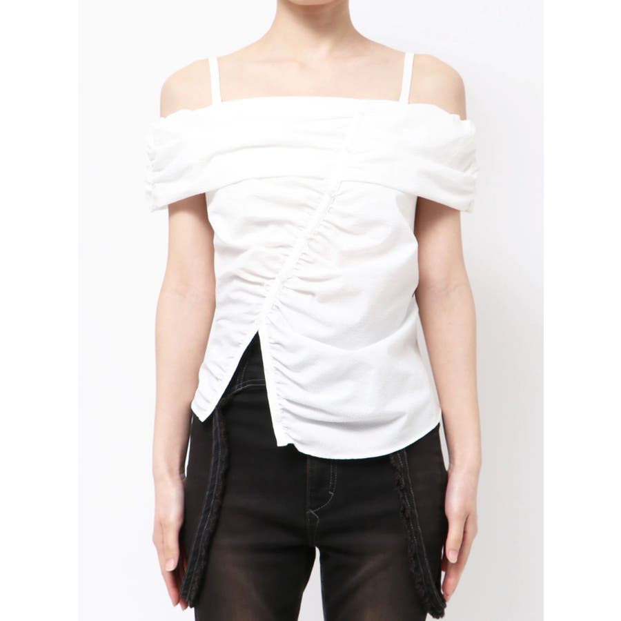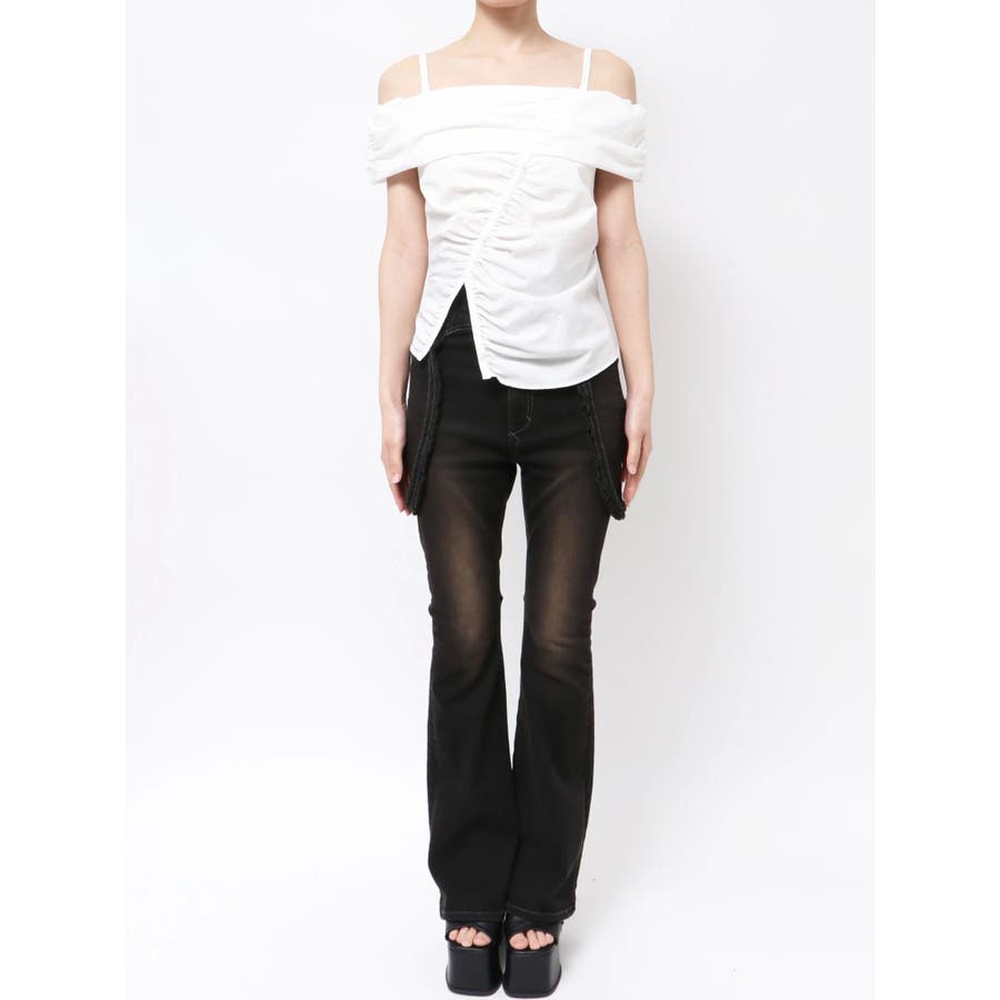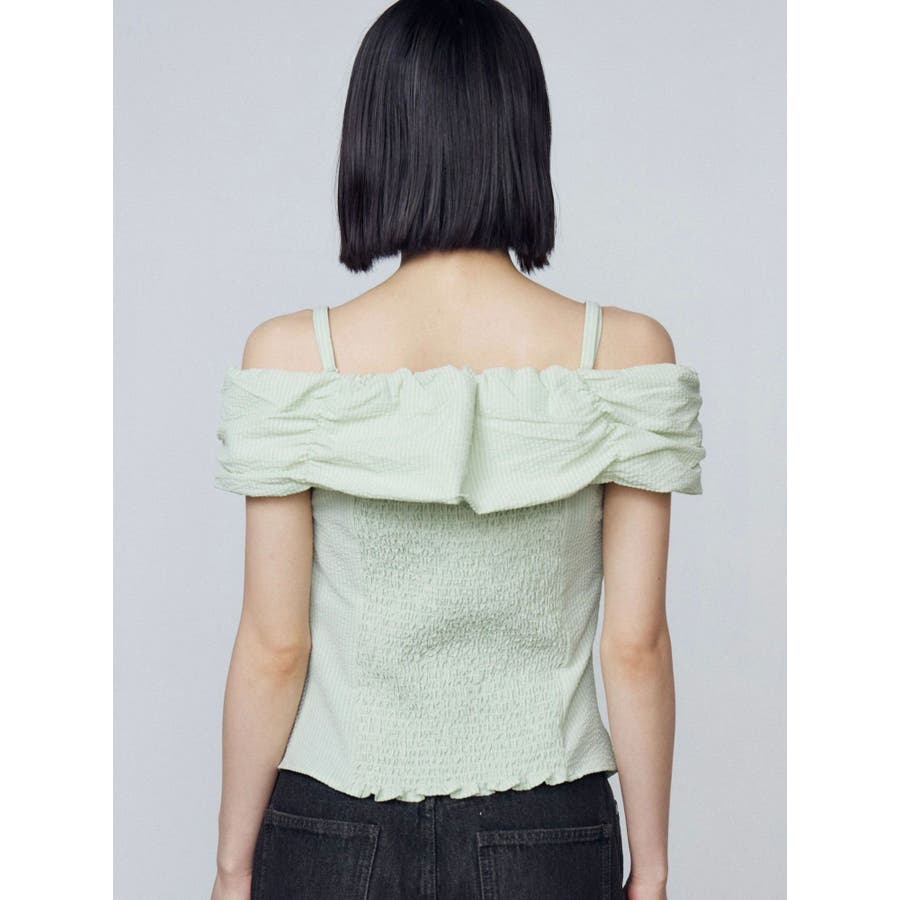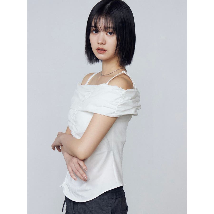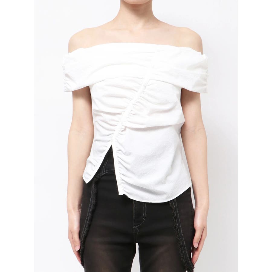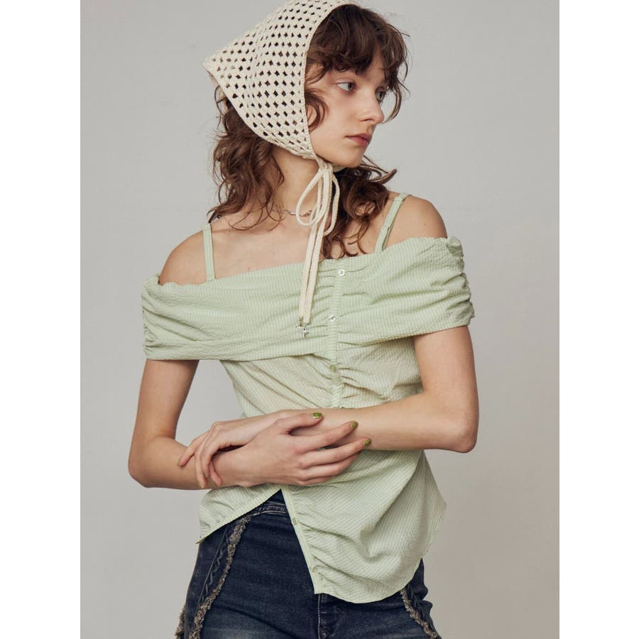 オフショルダーボタントップ