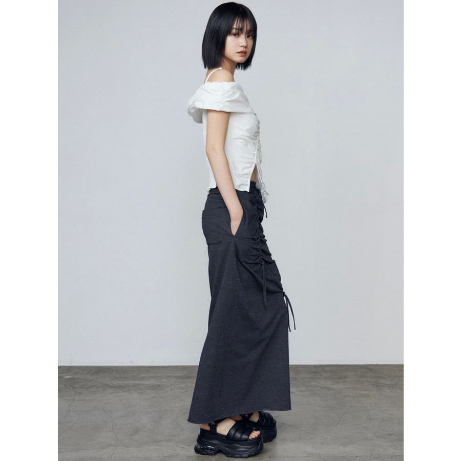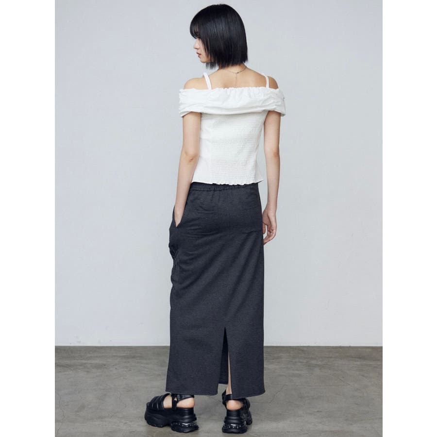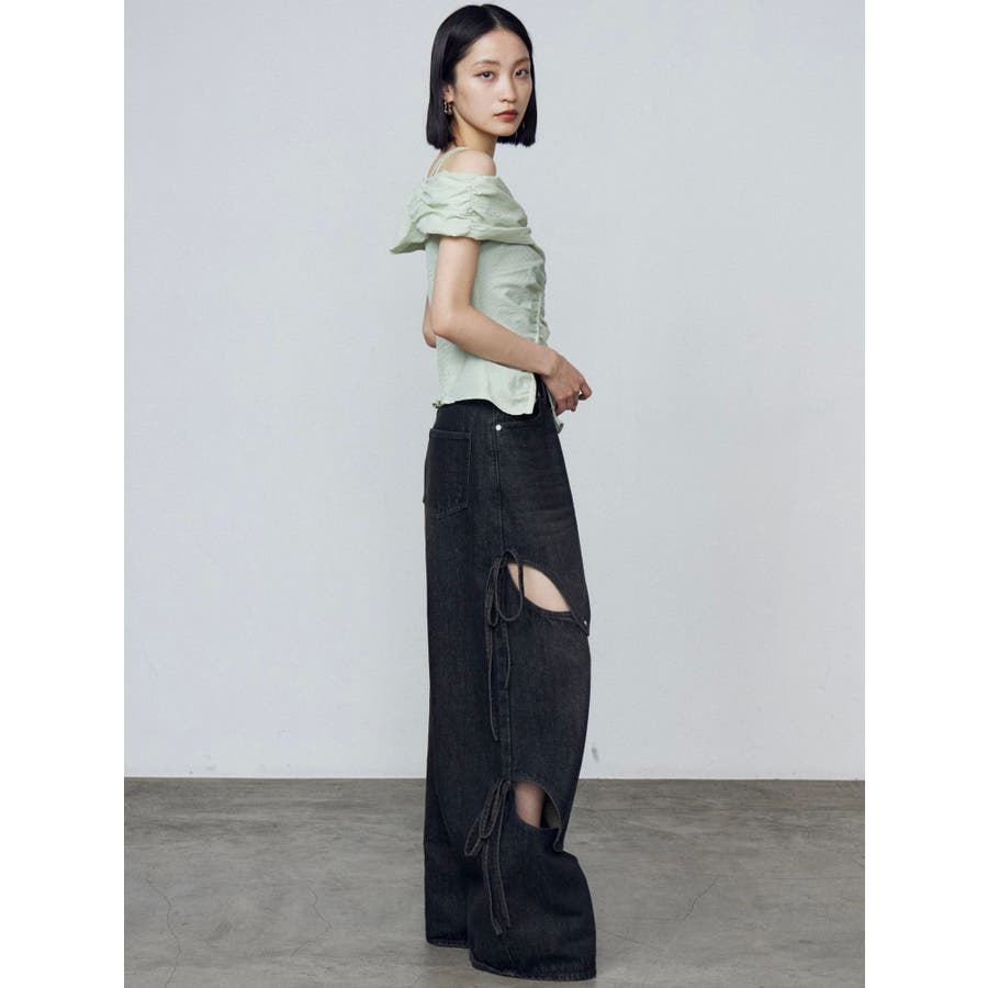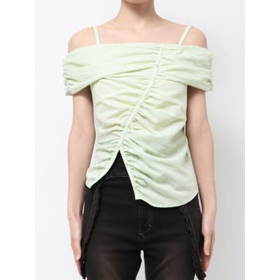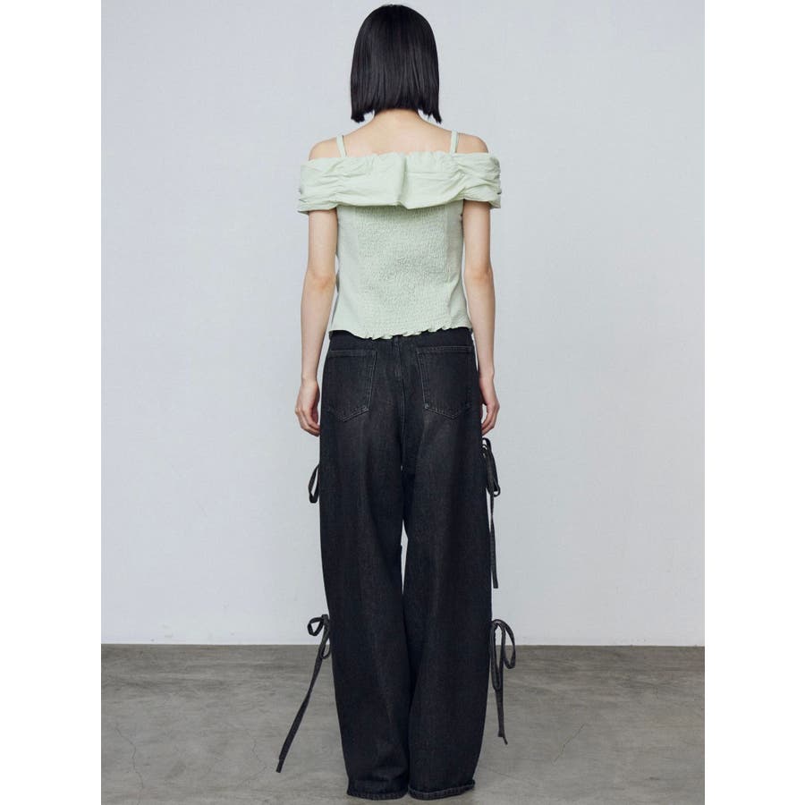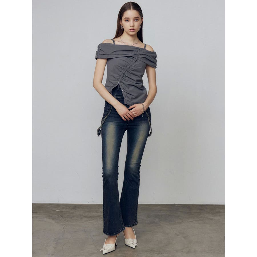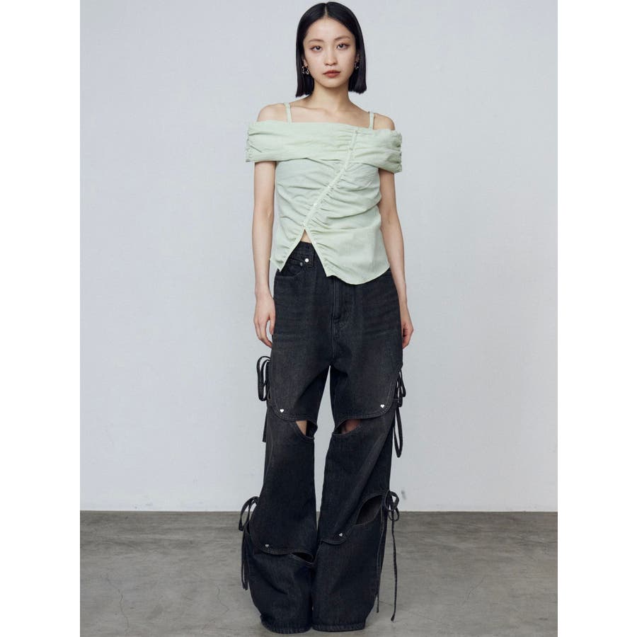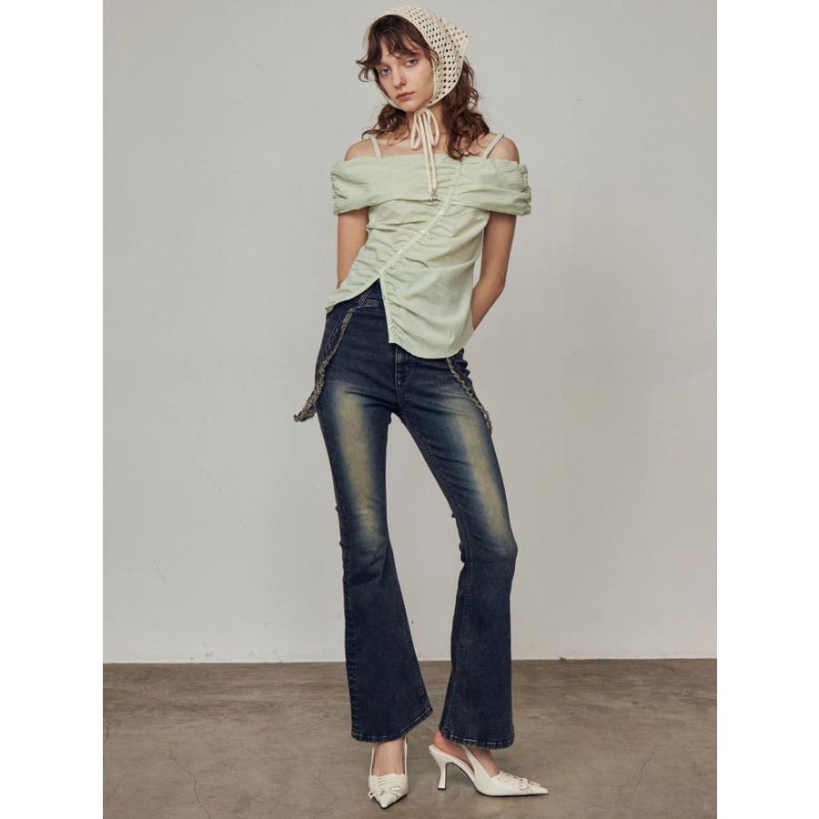 オフショルダーボタントップ