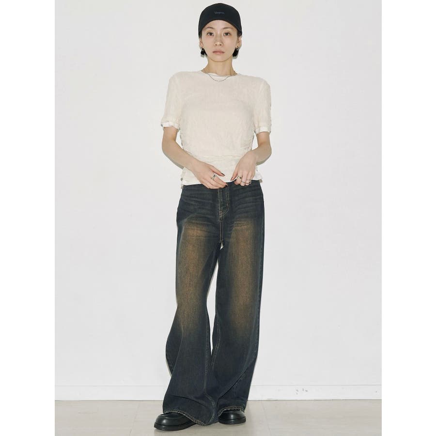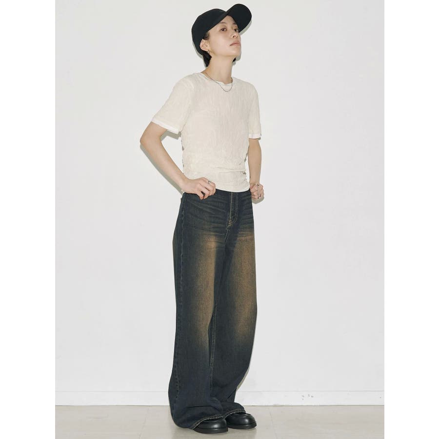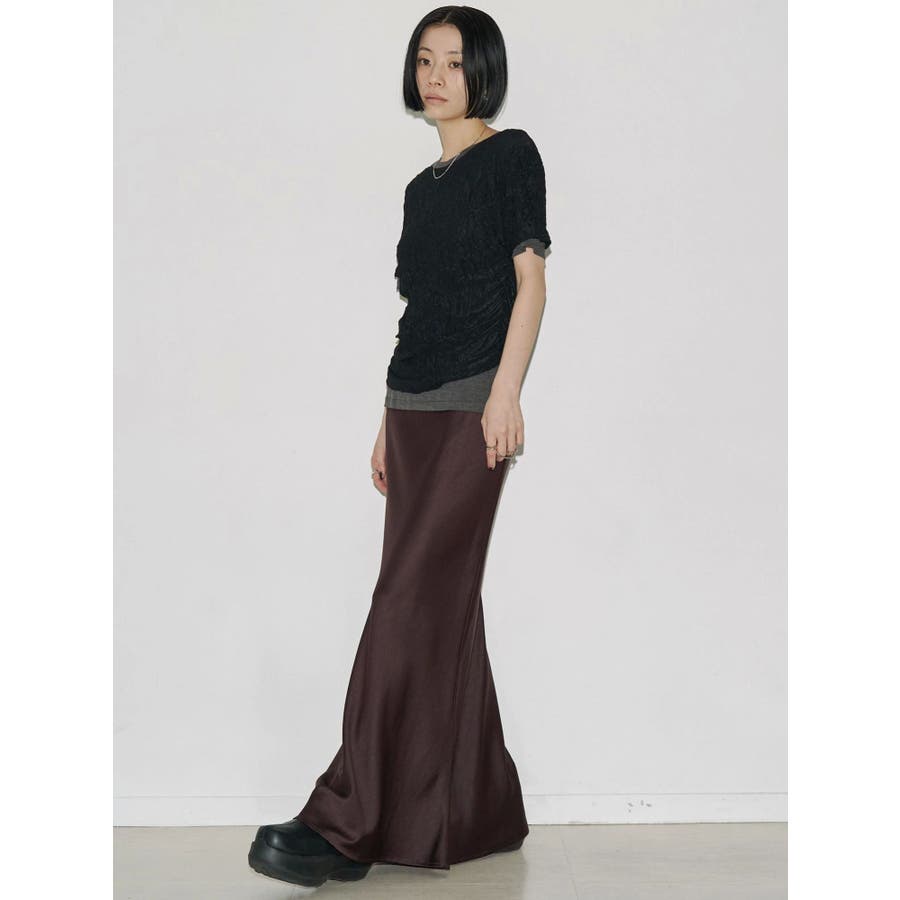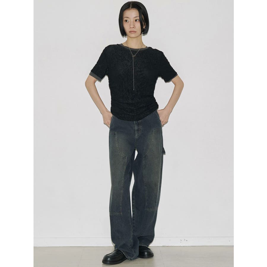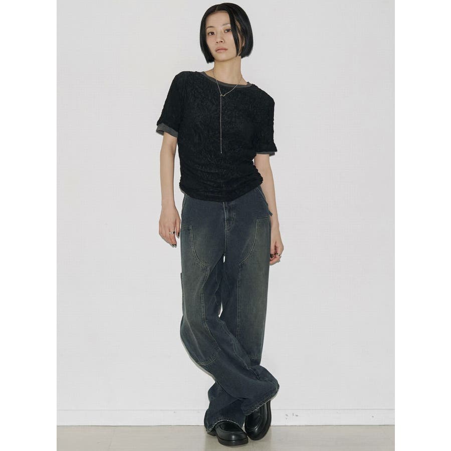 カットソー生地を二枚仕立てにしたレイヤード感のあるトップス■デザイン下の生地は薄手のソフト天竺を使用し、上の生地はシワ加工を入れたエスパンディ生地を使用しています。透け感のある柔らかな風合いが特徴です。サイドにギャザーを寄せているので自然なドレープ感が出ます。それぞれ配色も違い、雰囲気も変わるので様々な合わせで楽しんで頂けます。■スタイリングレイヤードデザインのトップスなので、ボトムはRIM WIDE JEANSのようなベーシックなデニムと合わせていただくのがおすすめです。※着用画像はフラッシュの加減で実際の製品と色味等が異なる場合がございますので、生地のズームアップ画像をご確認ください。※ご利用の端末画面の設定により実際の商品と色味が異なる場合がございます。【商品特徴】透け感:ややあり伸縮性:なし生地の厚さ:普通サイズ感:普通裏地:なしポケット:なし
