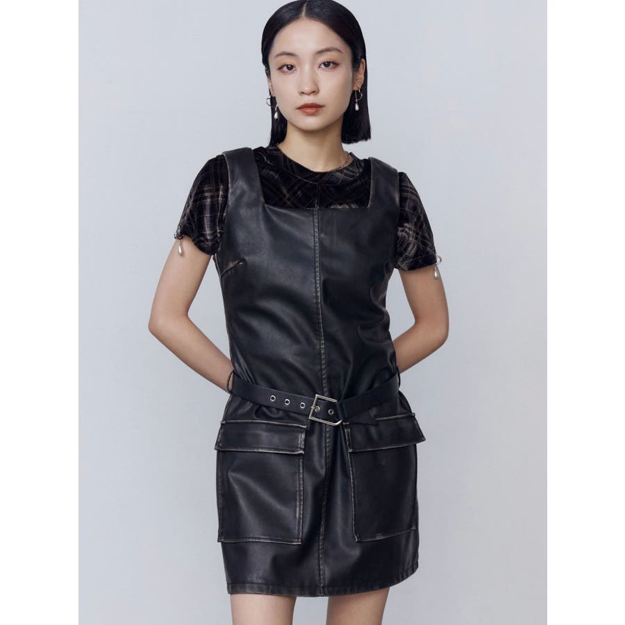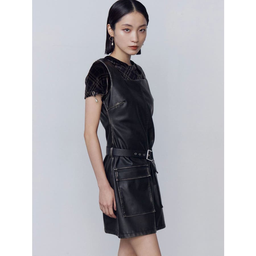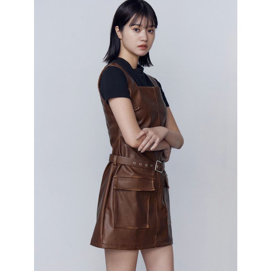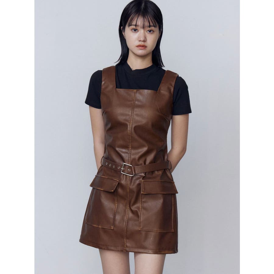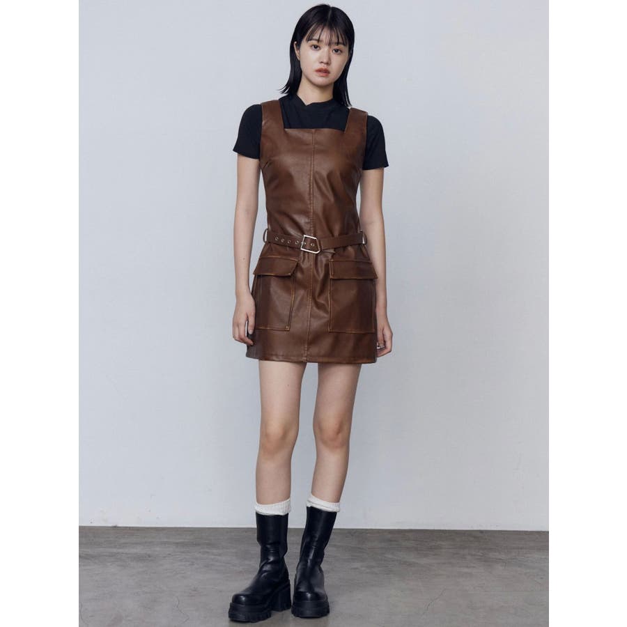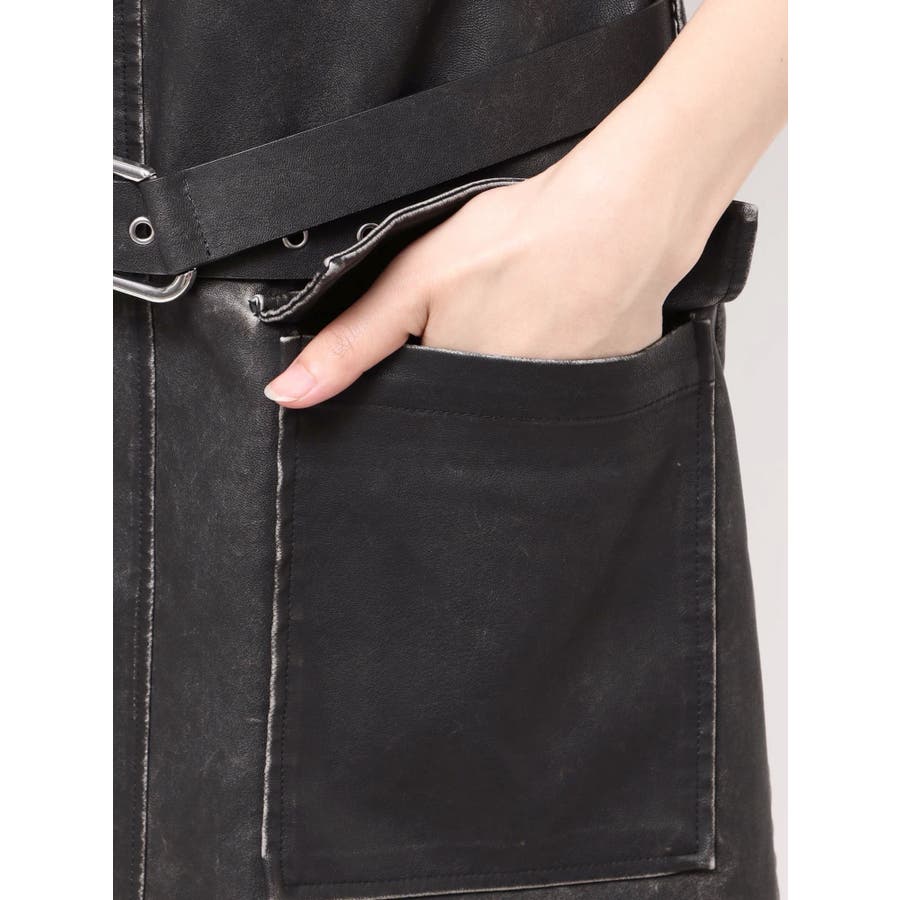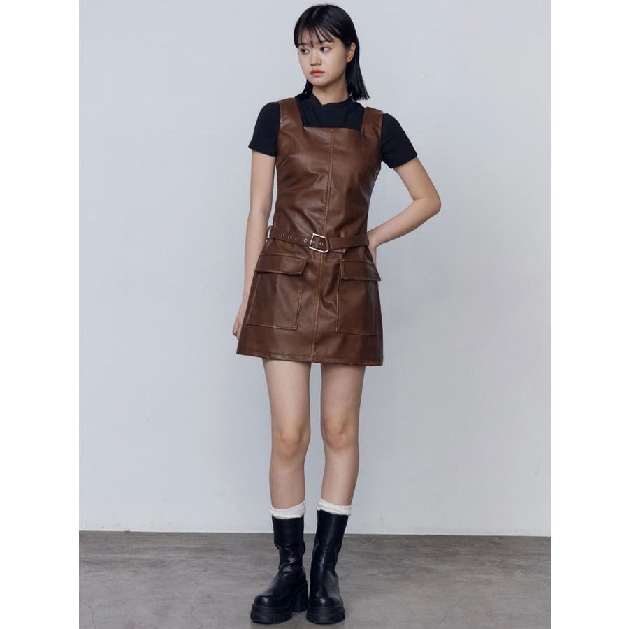 アウトポケットフェイクレザーワンピース