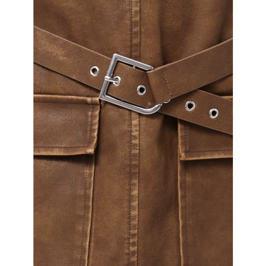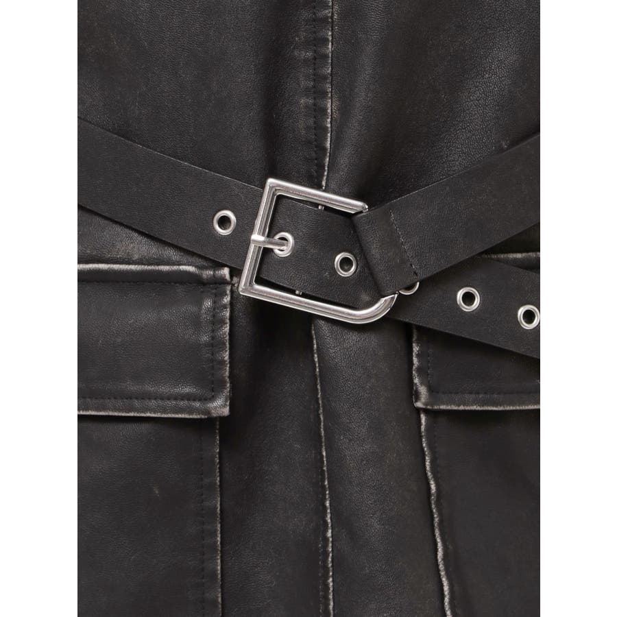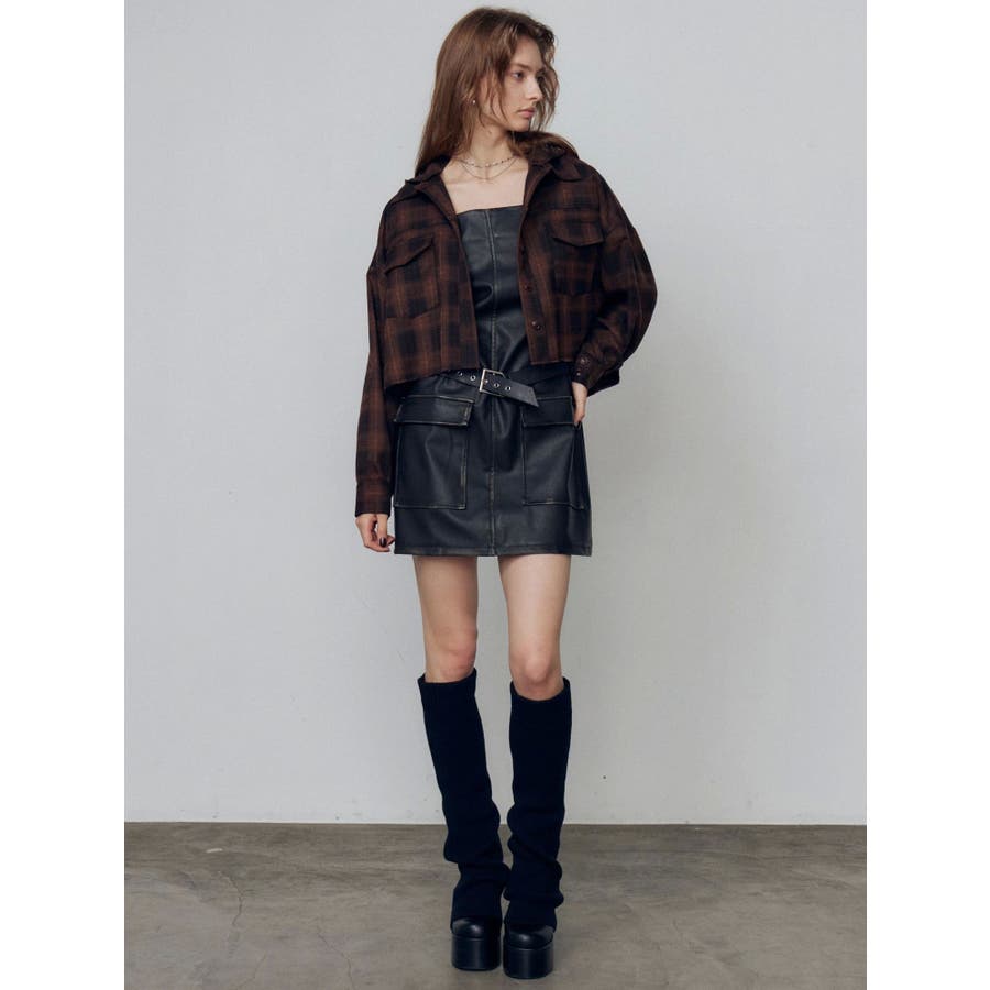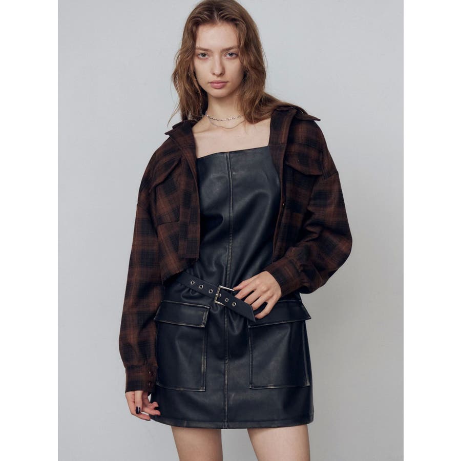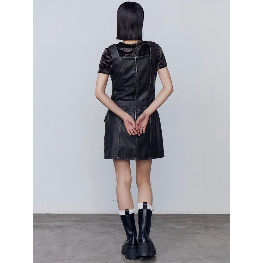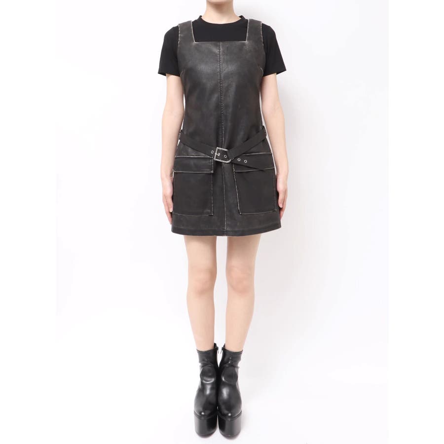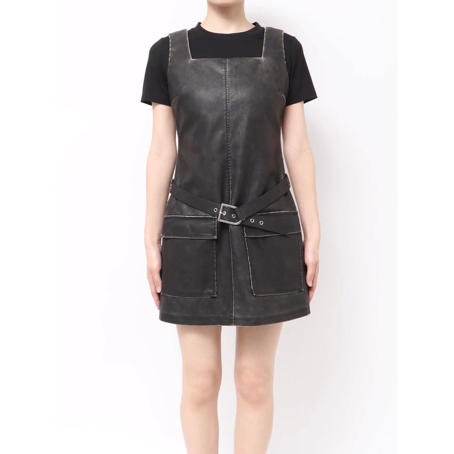アウトポケットフェイクレザーワンピース