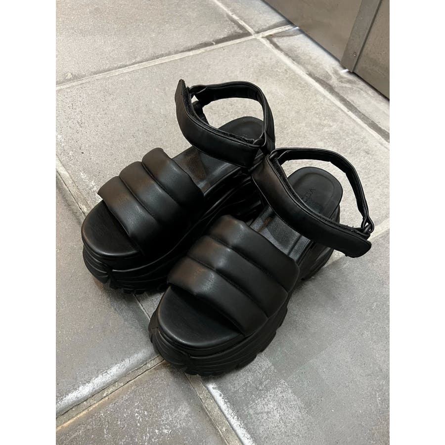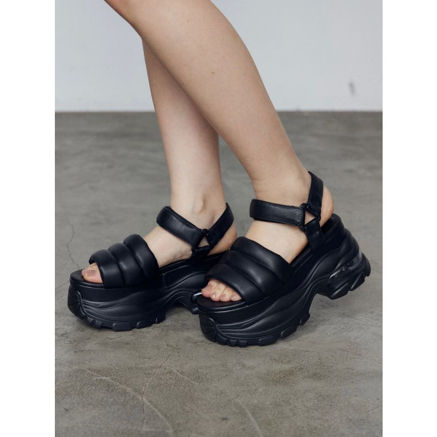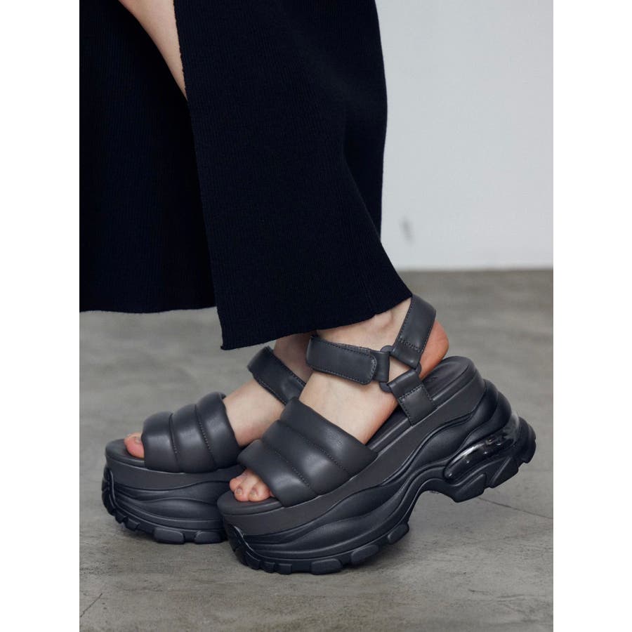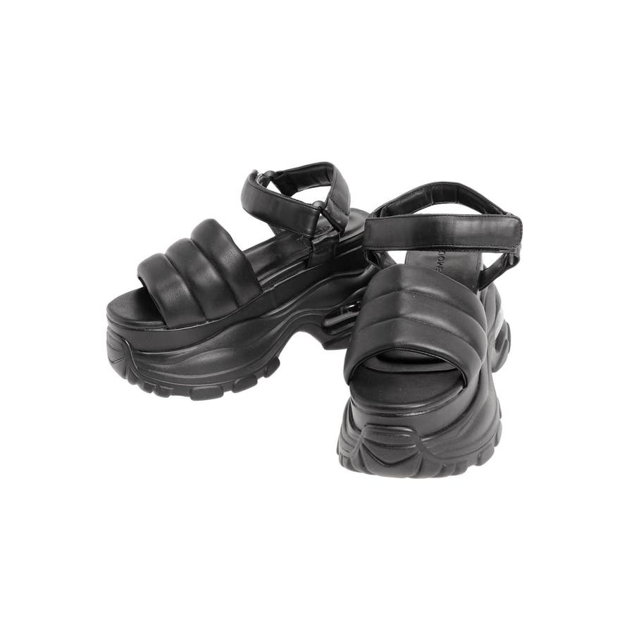 ぽってりとしたパッファーデザインのスポーツサンダル■デザインアッパーはパデッドデザインで存在感抜群な一足。クッション材が入っているので足を柔らかく包む、履き心地にこだわったデザイン。オリジナルで作成したソールを使用しておりトレンド感のあるサンダルです。マジックテープになっているので着脱もラクにして頂けます。■スタリングミニボトムを合わせサンダルをポイントにしたスタイリングから、フルレングスのボトムを合わせ、ソールをアクセントにしたスタイルまで、スタイリングに取り入れるだけでトレンド感のあるスポーティな雰囲気をプラスします。ボトムにかカジュアルなトラックパンツや、デニムを合わせたスタイリングがおすすめです。※着用画像はフラッシュの加減で実際の製品と色味等が異なる場合がございますので、生地のズームアップ画像をご確認ください。※ご利用の端末画面の設定により実際の商品と色味が異なる場合がございます。【スタッフ着用レビュー】 スタッフB(普段のサイズ: 24.5cm/足の幅: 9.8cm/甲の高さ: 5.6cm/ふくらはぎ周り:34cm) Lサイズ着用で丁度よかったです。足幅は少しゆとりがあり、クッション性があるので履き心地が良いです。