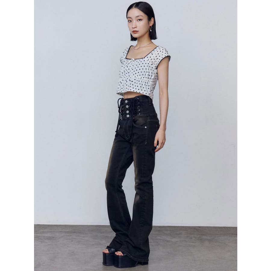 胸の空き具合がとても可愛いくて、ショート丈のトップスを探していたのでとても気に入りました!色違いも購入しました!