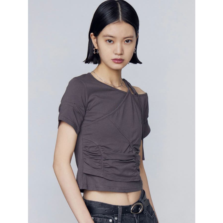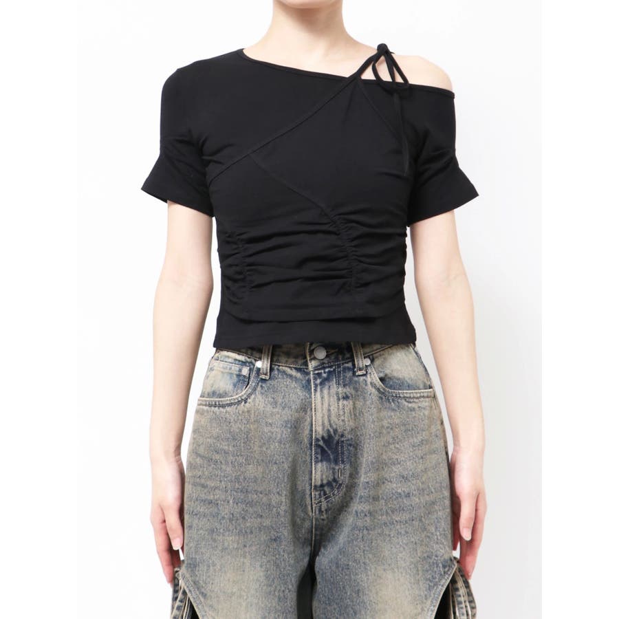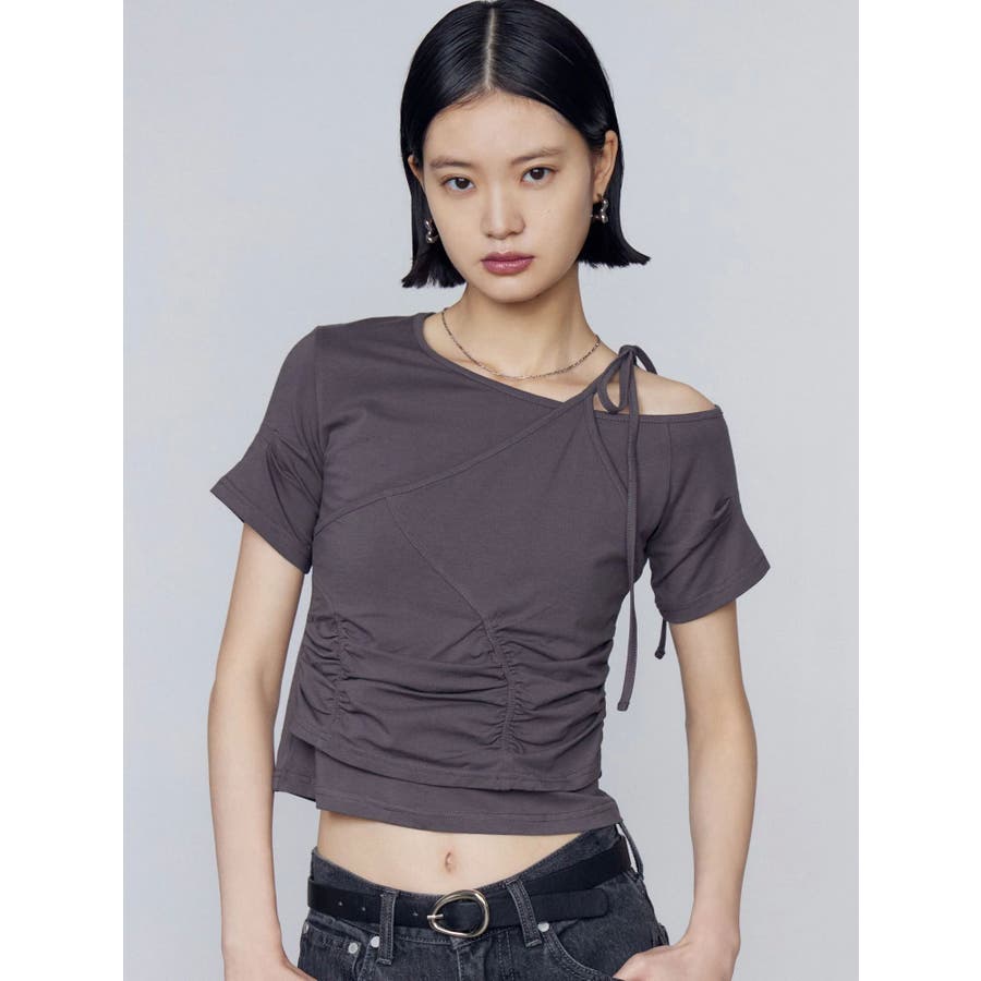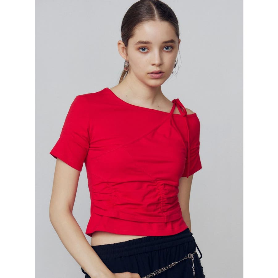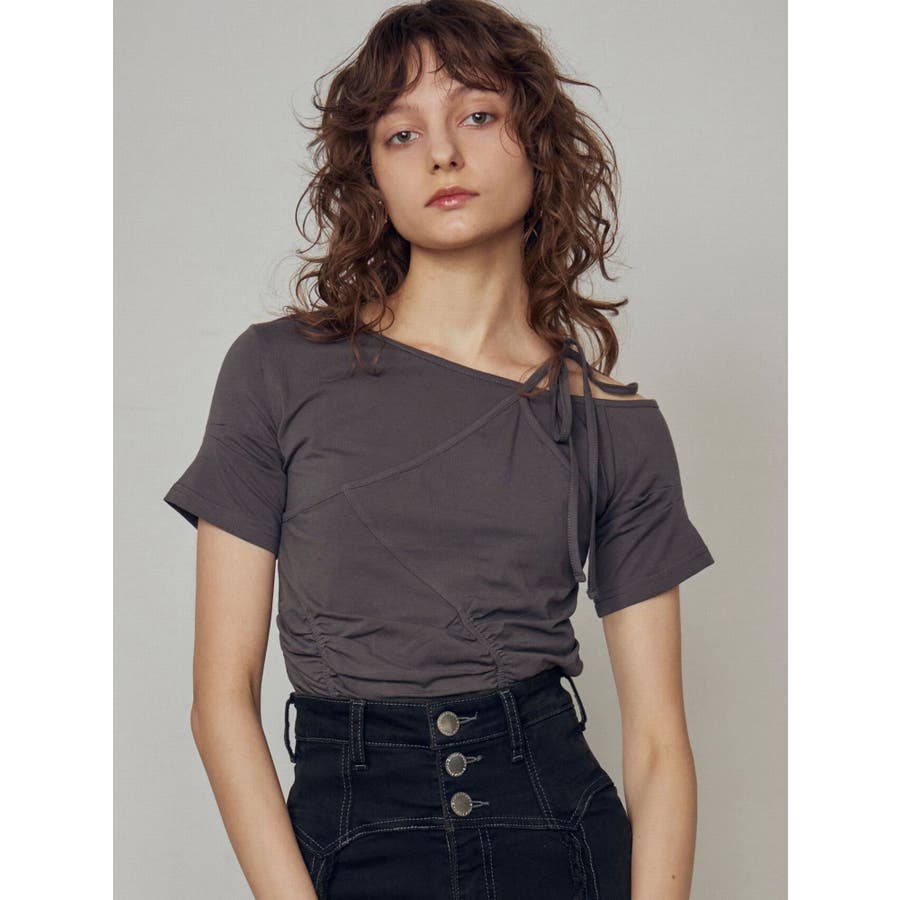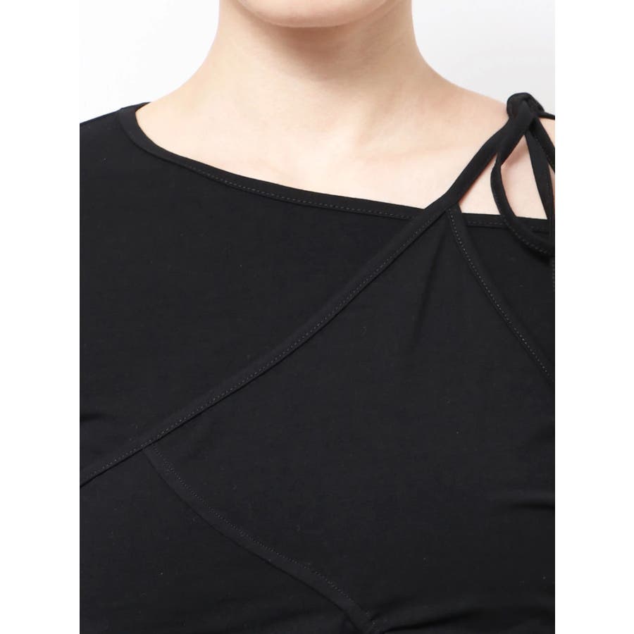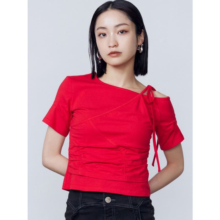 Tシャツにワンショルダーをレイヤードしたようなデザイントップス■デザインアシンメトリーのギャザーディテールや肩のリボンは、トレンド感を楽しめるデザインになっています。着心地のよい伸縮性のあるカットソーで、シルエットを綺麗に見せてくれます。■スタイリングデザインの入ったワイドジーンズや、トレンドのラッフルディテールの入ったスカートなどの合わせがおすすめです。※着用画像はフラッシュの加減で実際の製品と色味等が異なる場合がございますので、生地のズームアップ画像をご確認ください。※ご利用の端末画面の設定により実際の商品と色味が異なる場合がございます。【商品特徴】透け感:なし伸縮性:なし生地の厚さ:普通サイズ感:普通裏地:ありポケット:なし