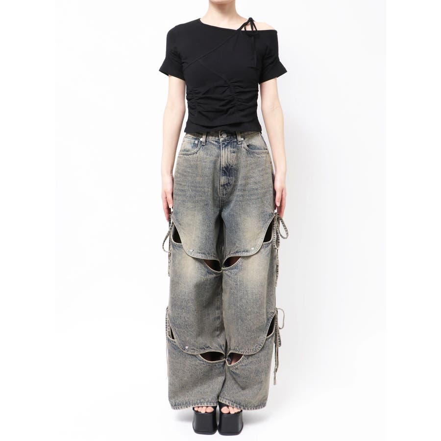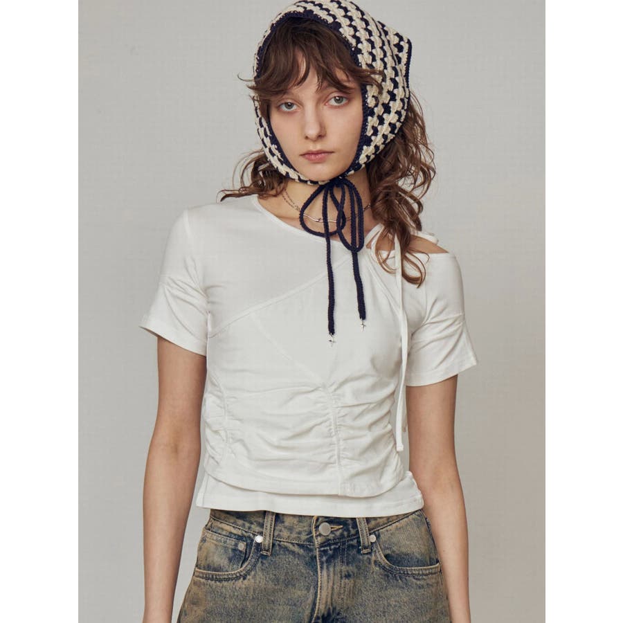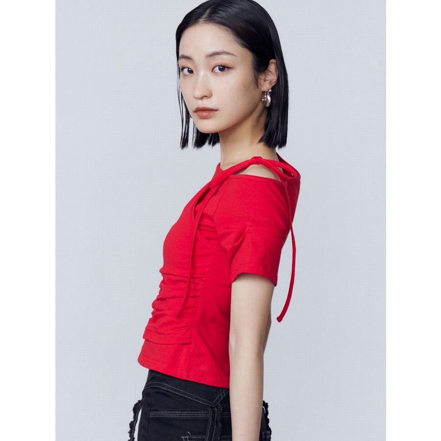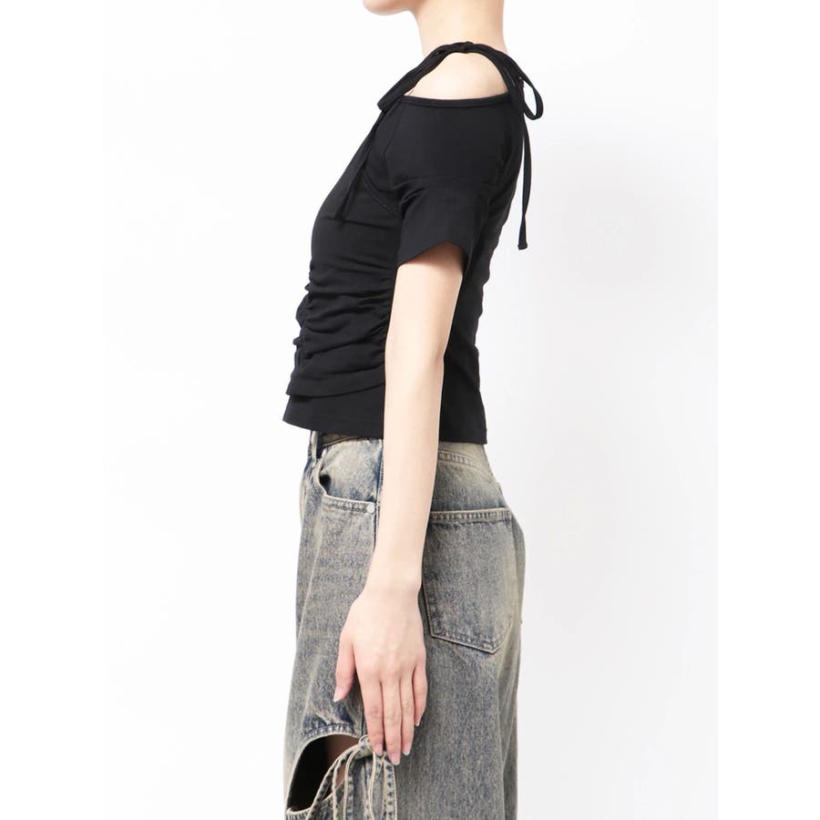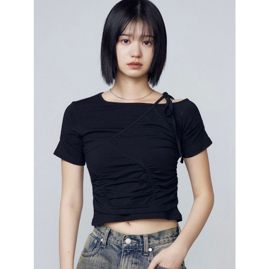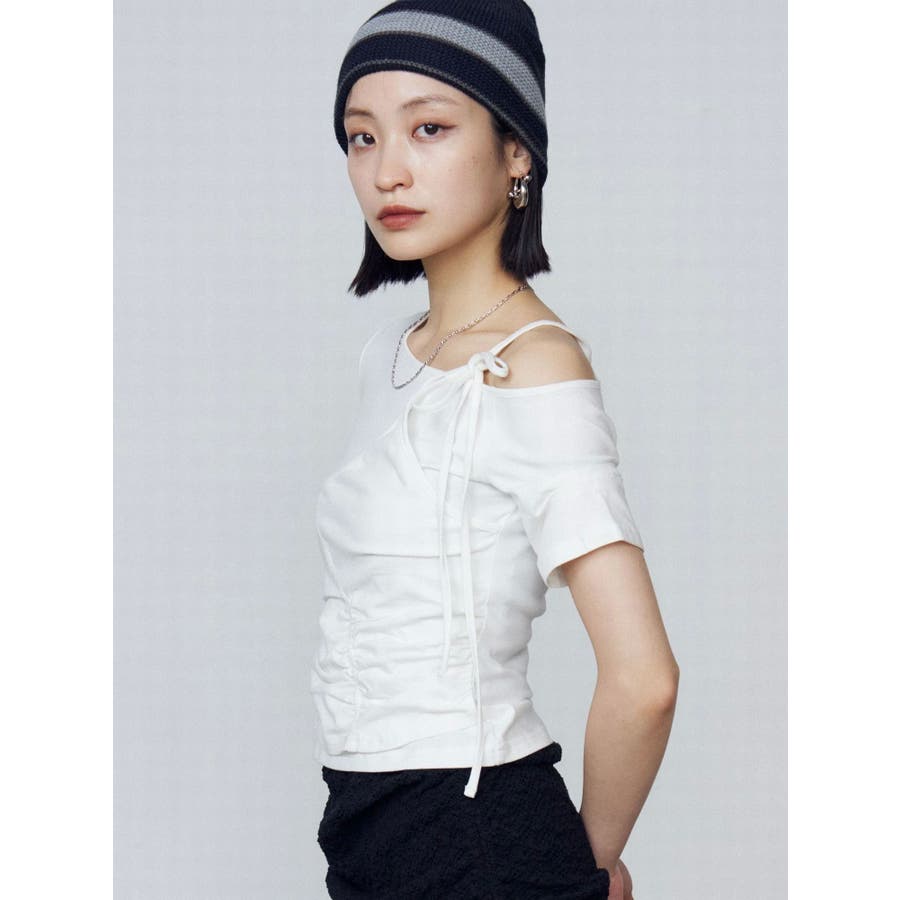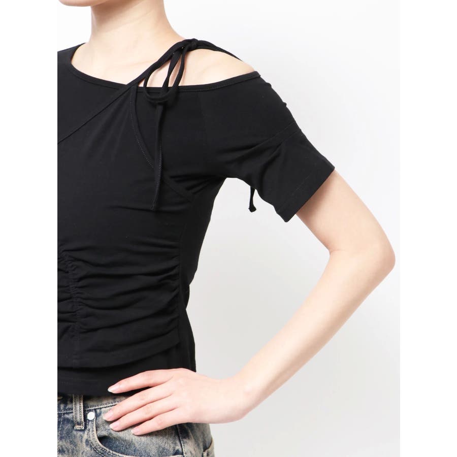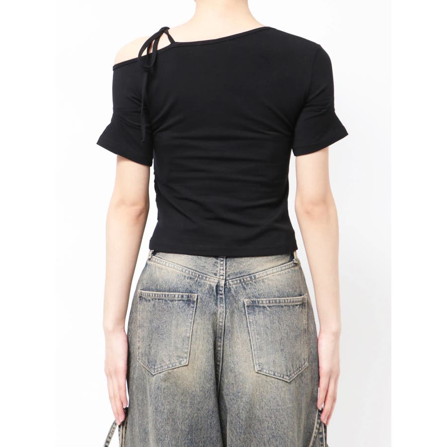 Tシャツにワンショルダーをレイヤードしたようなデザイントップス■デザインアシンメトリーのギャザーディテールや肩のリボンは、トレンド感を楽しめるデザインになっています。着心地のよい伸縮性のあるカットソーで、シルエットを綺麗に見せてくれます。■スタイリングデザインの入ったワイドジーンズや、トレンドのラッフルディテールの入ったスカートなどの合わせがおすすめです。※着用画像はフラッシュの加減で実際の製品と色味等が異なる場合がございますので、生地のズームアップ画像をご確認ください。※ご利用の端末画面の設定により実際の商品と色味が異なる場合がございます。【商品特徴】透け感:なし伸縮性:なし生地の厚さ:普通サイズ感:普通裏地:ありポケット:なし