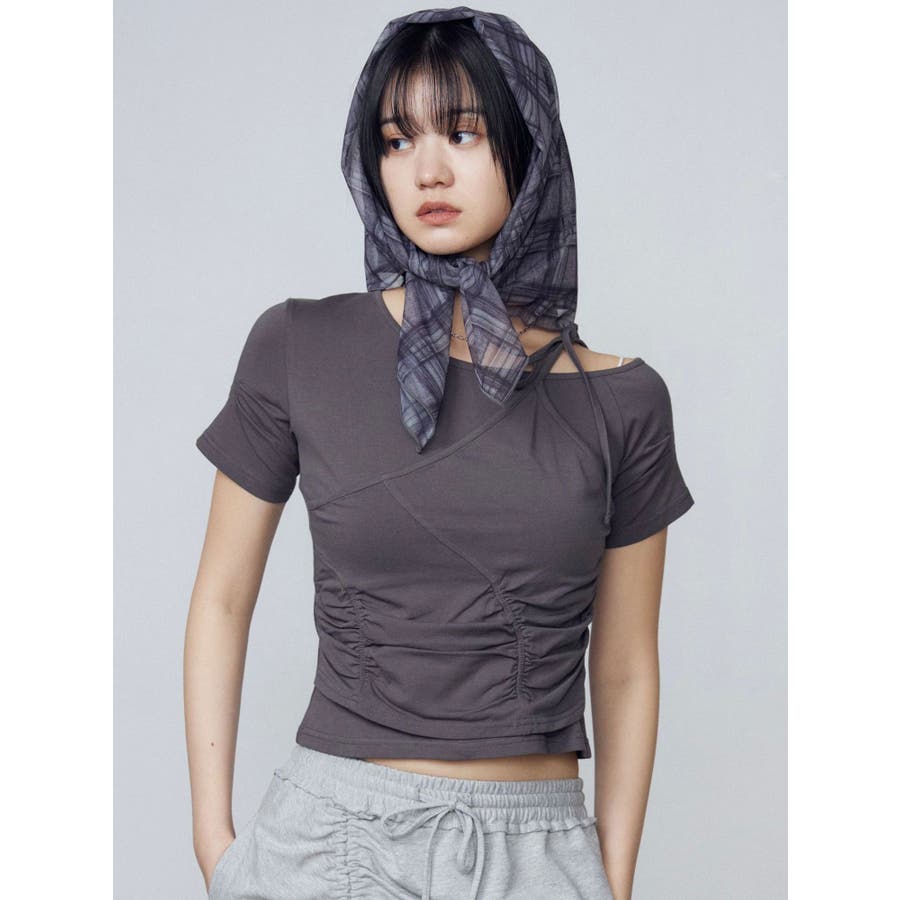 アシンメトリーギャザーレイヤートップ